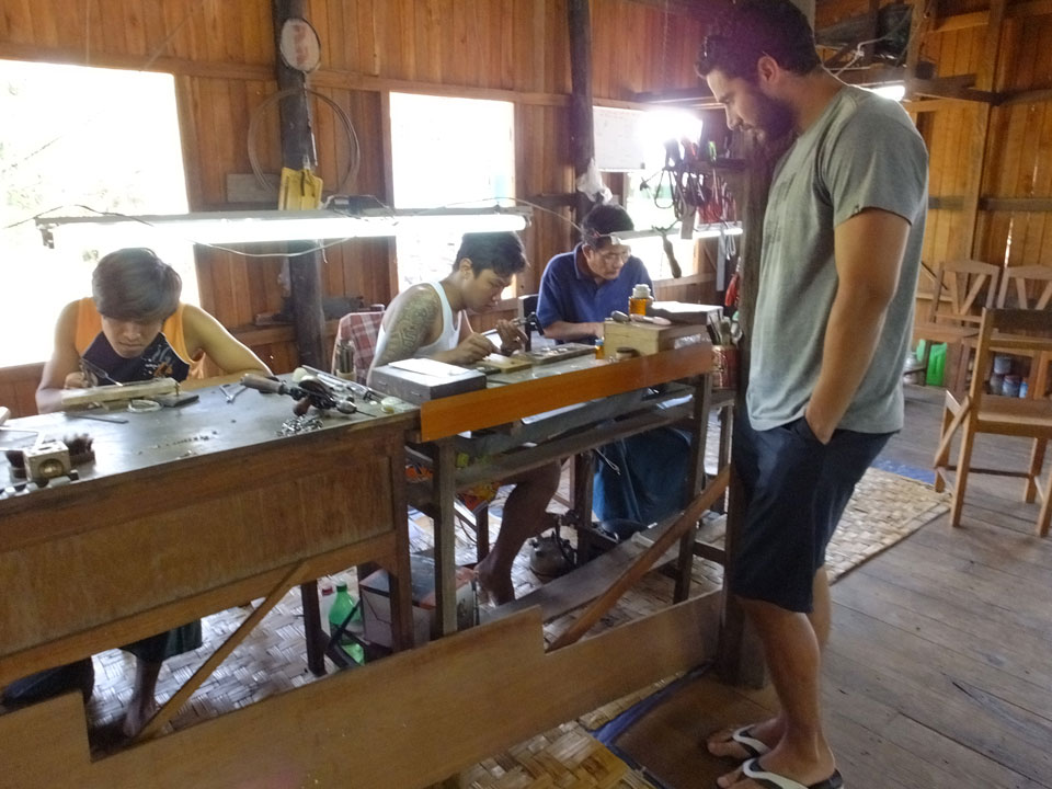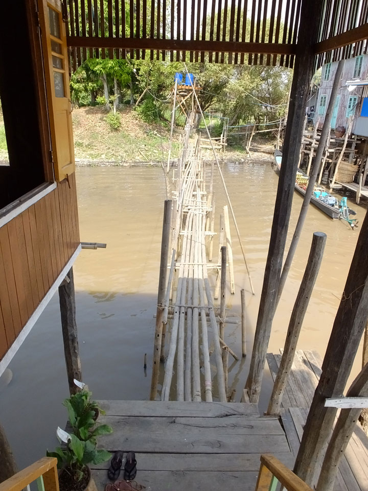 Noch ein Tempel und noch ein Laden (die Papierschirme) und ich seufzte etwas, was den jungen Bootsführer zum Lachen brachte. Ja, ich muss halt die Shops besuchen – sonst gibt’s ja wenig hier. Er überraschte mich dann, hatte er doch während meiner Abwesenheit mit einem Draht meinen Flipflop gefixt. Ich was überrascht von den Skills und hatte nun wieder Fußwerk. Super Service! Die Leute versuchen echt stets den Touristen zu helfen. Man wird beobachtet und wenn man irgendein Problem hat, wird nach Möglichkeit geholfen.