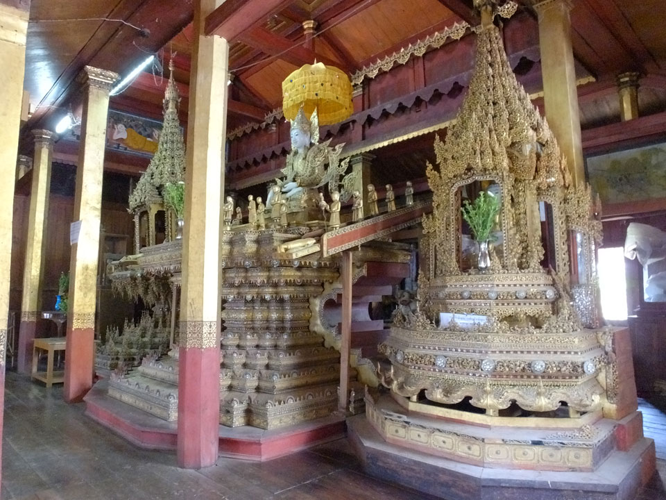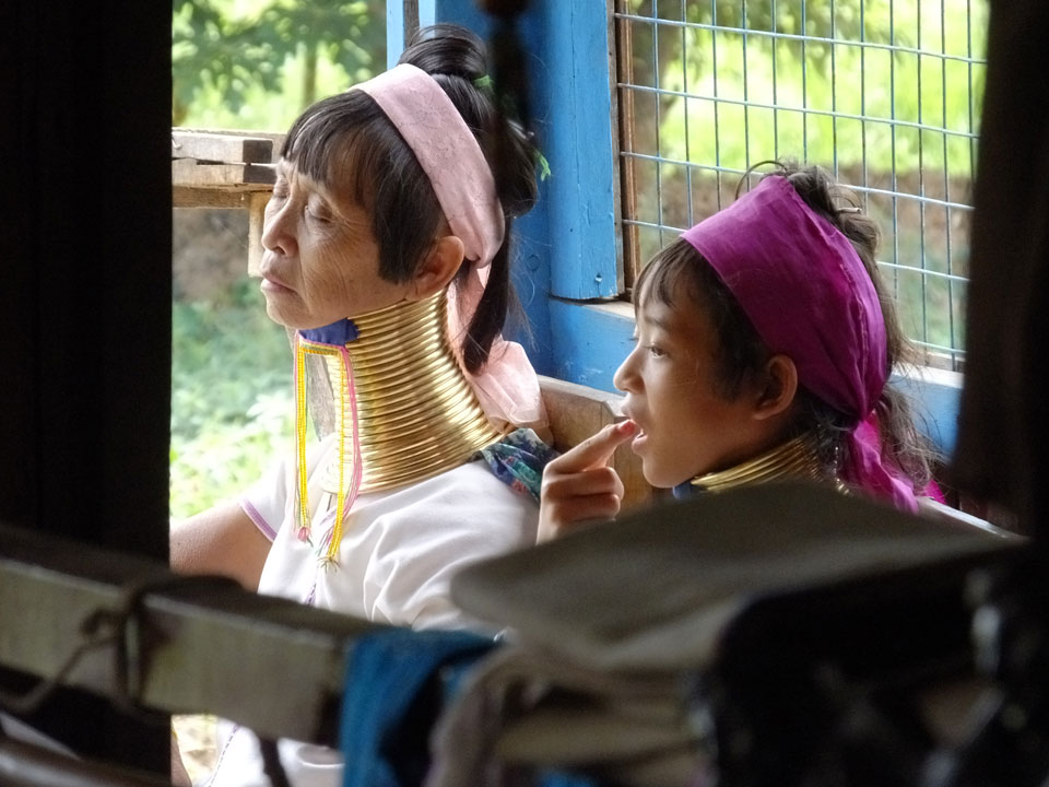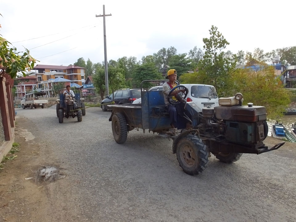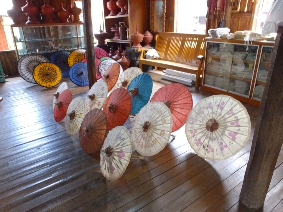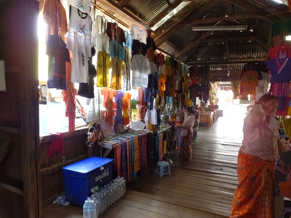 Es ging in der Gegend heru. Ich musste natürlich auch die Touristengeschäfte besuchen. Von Seide über Gold- und Silberschmuck bis zu Schirmen. Es gab alles, mehr oder weniger sinnvoll, wenn man am See wohnt. Es war ganz nett, die ganzen Ortschaften zu besuchen. Der Tourismus hält Einzug. Ein paar Frauen mit gestreckten Hälsen sah ich auch mal. Die waren zum Seideweben angestellt. Irre.