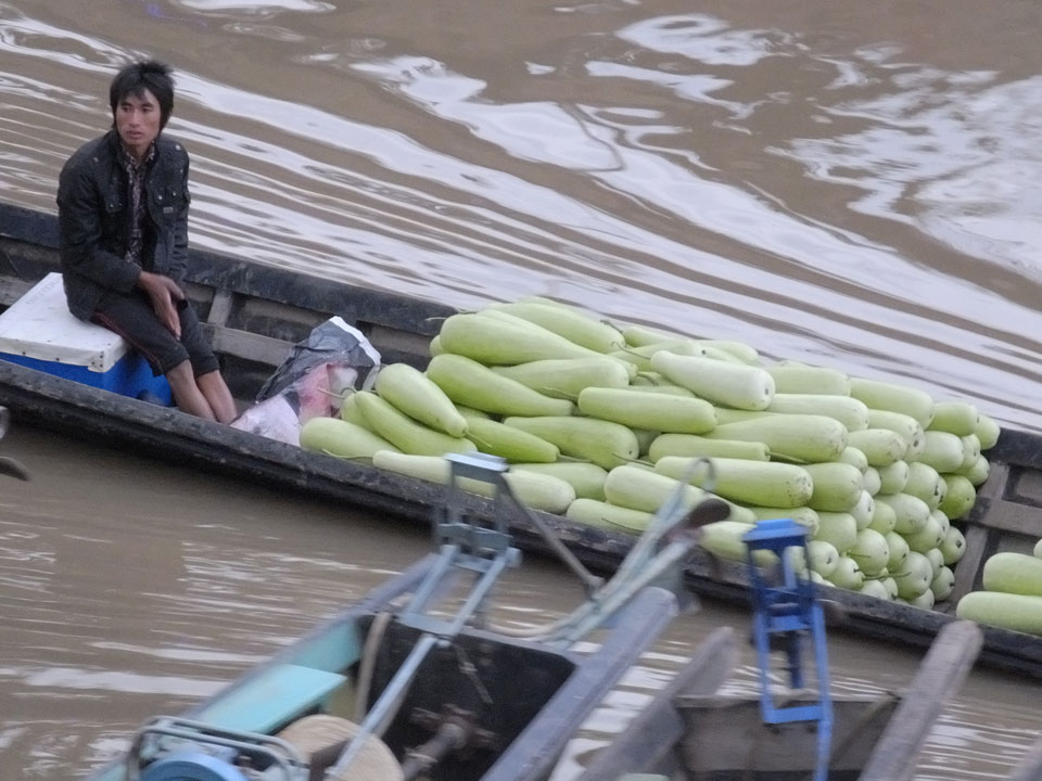 Allein im Boot war das aber auch OK. Wir fuhren erst mal den Kanal runter zum See. Nett mit den ganzen Booten am Morgen. Touristen überall, viele Waren werden jedoch auch in den Longboats verschifft. Die Fahrt ging schnell. Gut, dass ich meinen Hoodie dabei hatte.