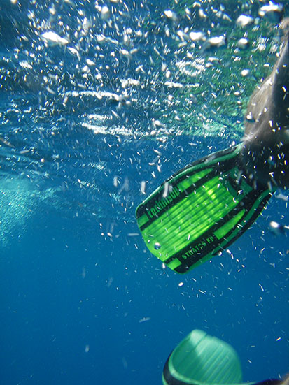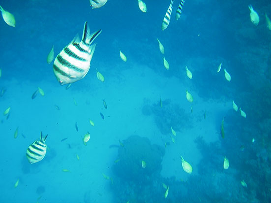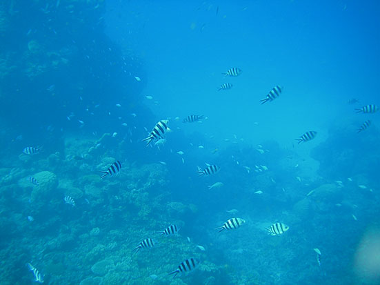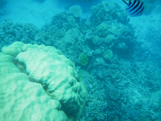 Nachmittags konnten wir Schnorcheln gehen. Meine Camera band ich an den Reißverschluss. Knipsen konnte ich nur schwer und die Fische waren schreckhaft. Ein paar Bilder wurden. Ist sehr cool.