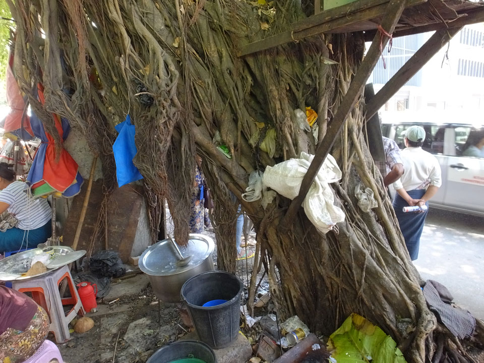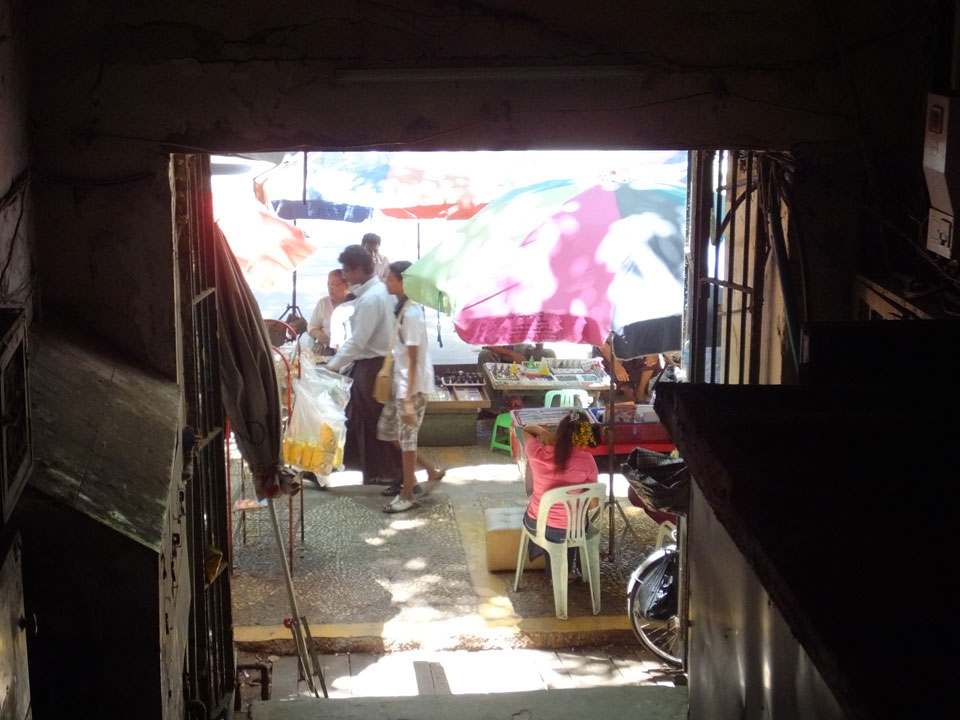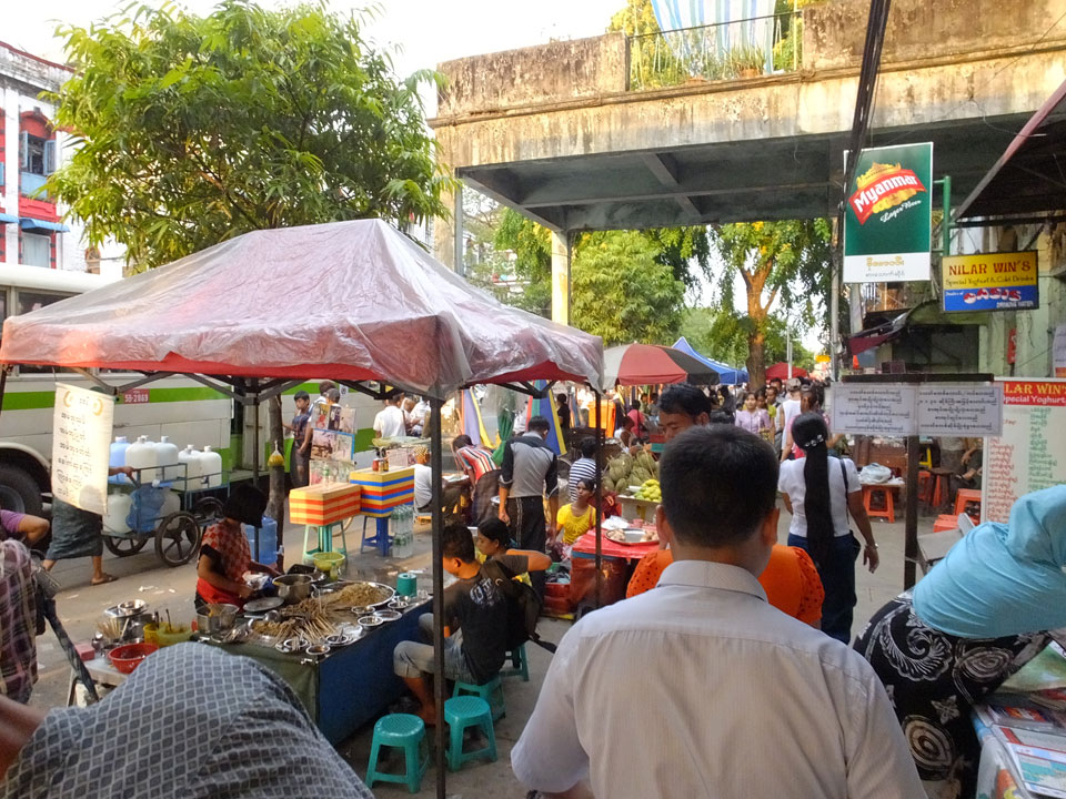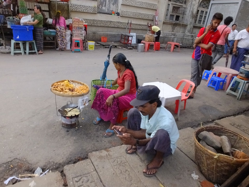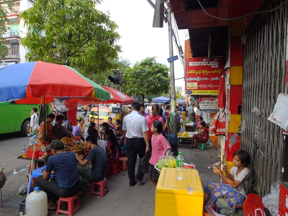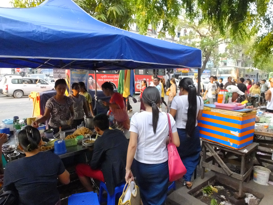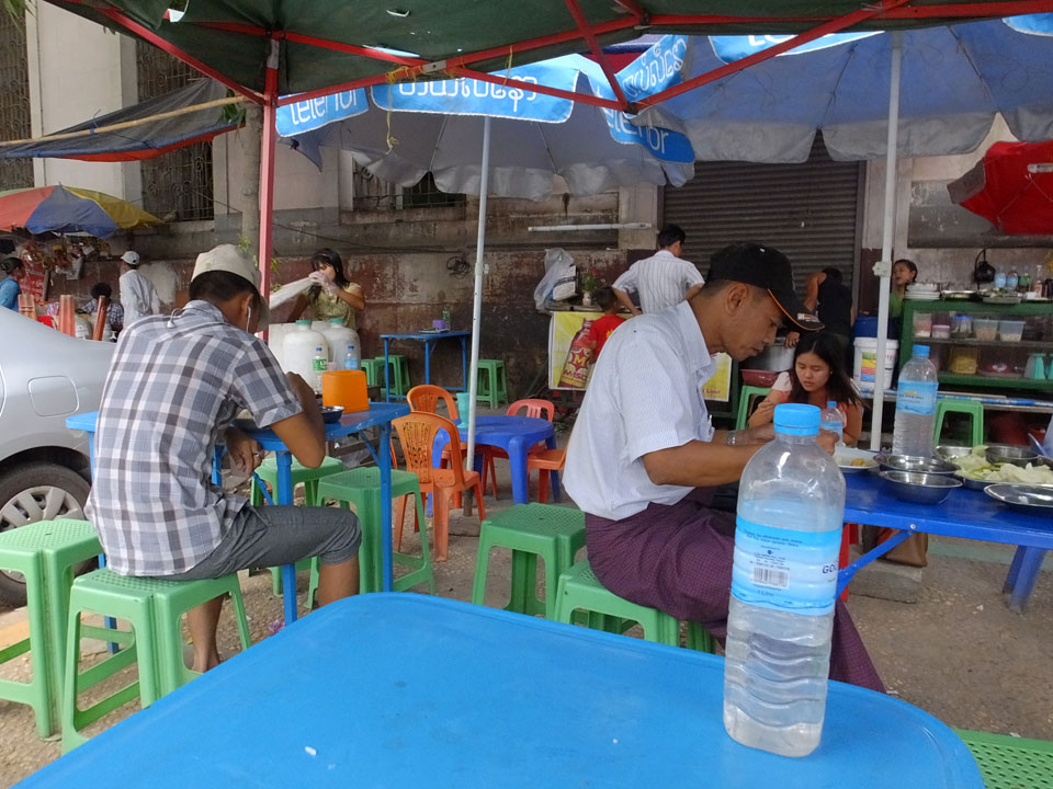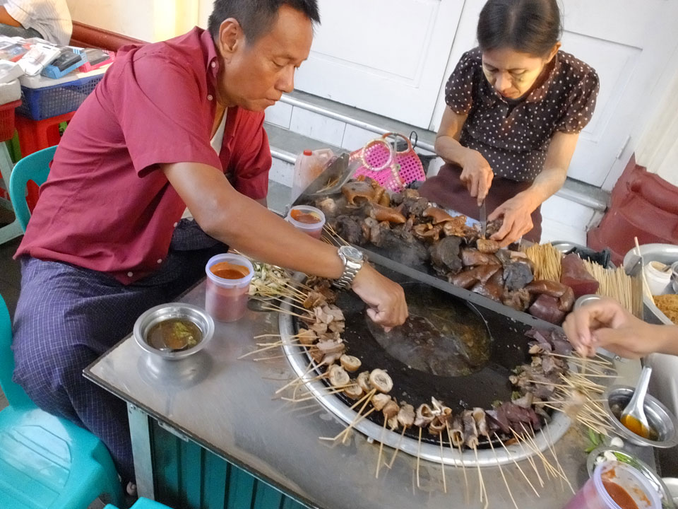 Im Trubel fand ich in einer Nebenstraße ein restarant, was gerade Hühnchen und Schwein zerschnitt. Das große Essen wurde vorbereitet und die Leute nahmen langsam Platz. Ich hatte dann das Schwein, was vorzüglich schmeckte. Nur 700 Kyat. Etwas ging ich noch umher und dann kam nach dem Magen der Kopf dran. Nach einigen Wochen ohne Friseubesuch nahm ich den „Ba Ba“ gleich neben dem Hosteleingang.