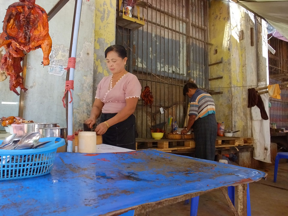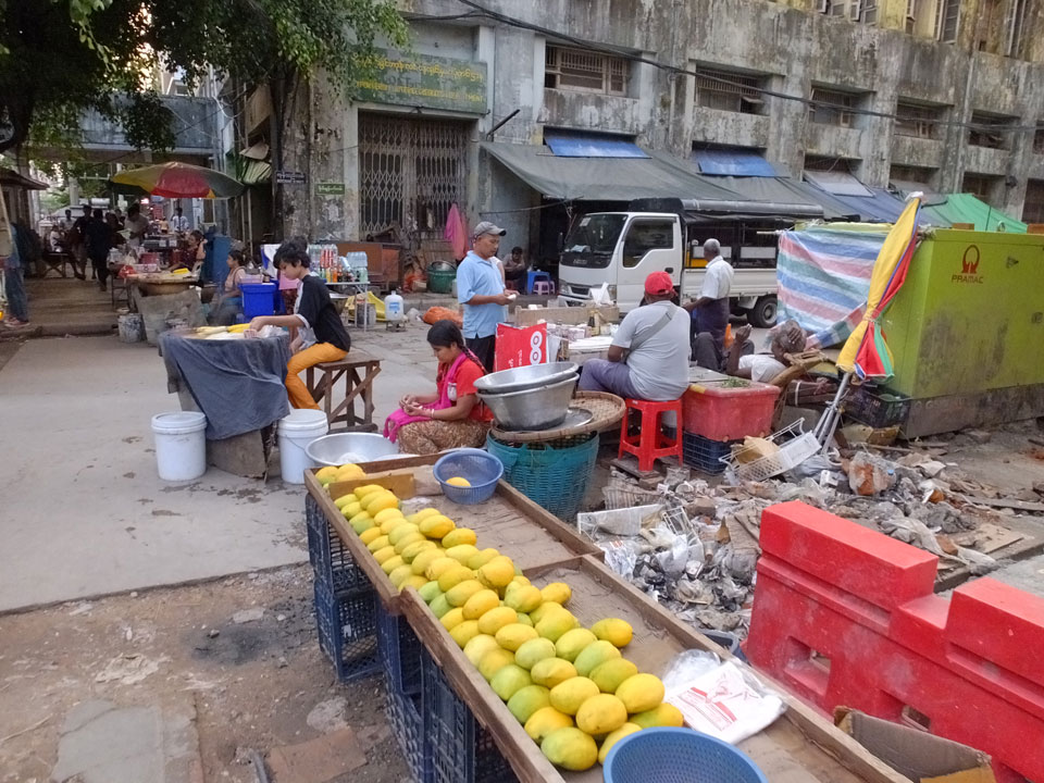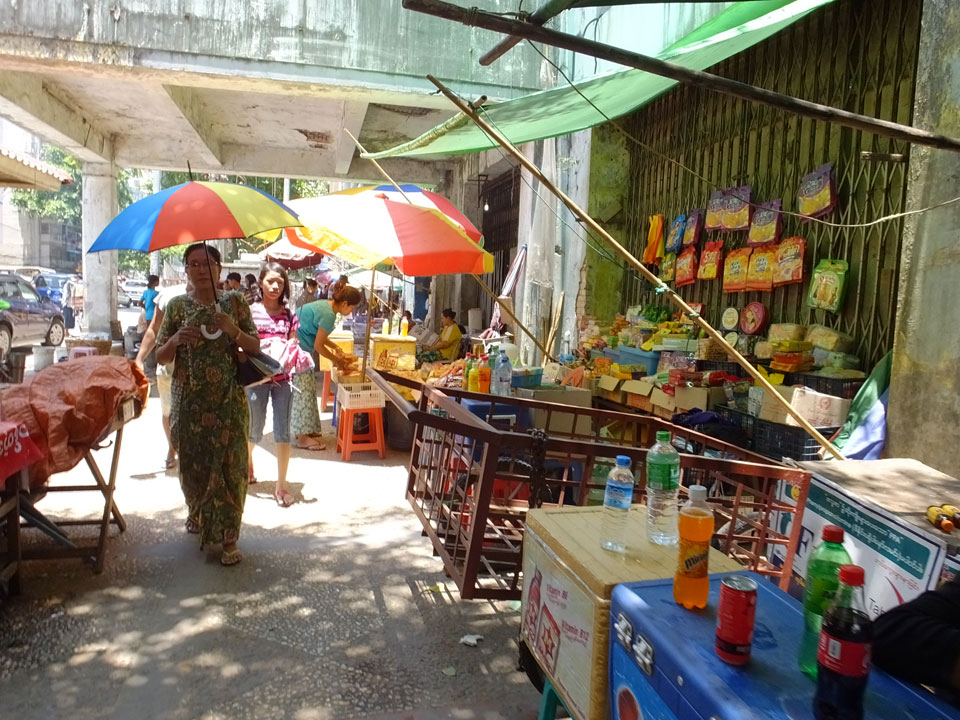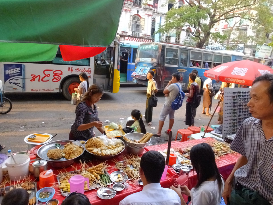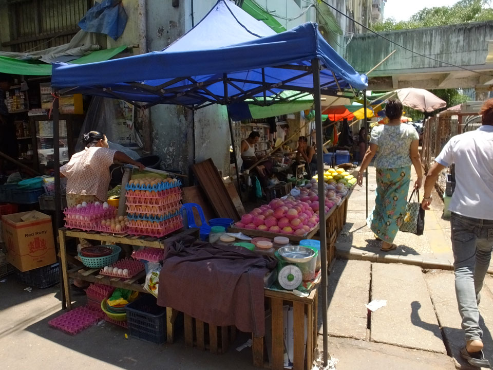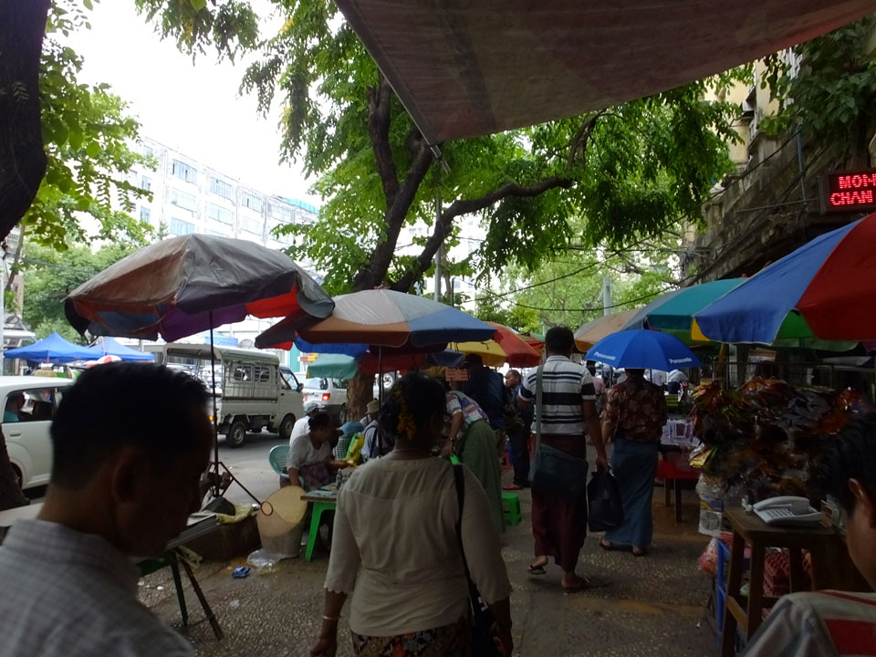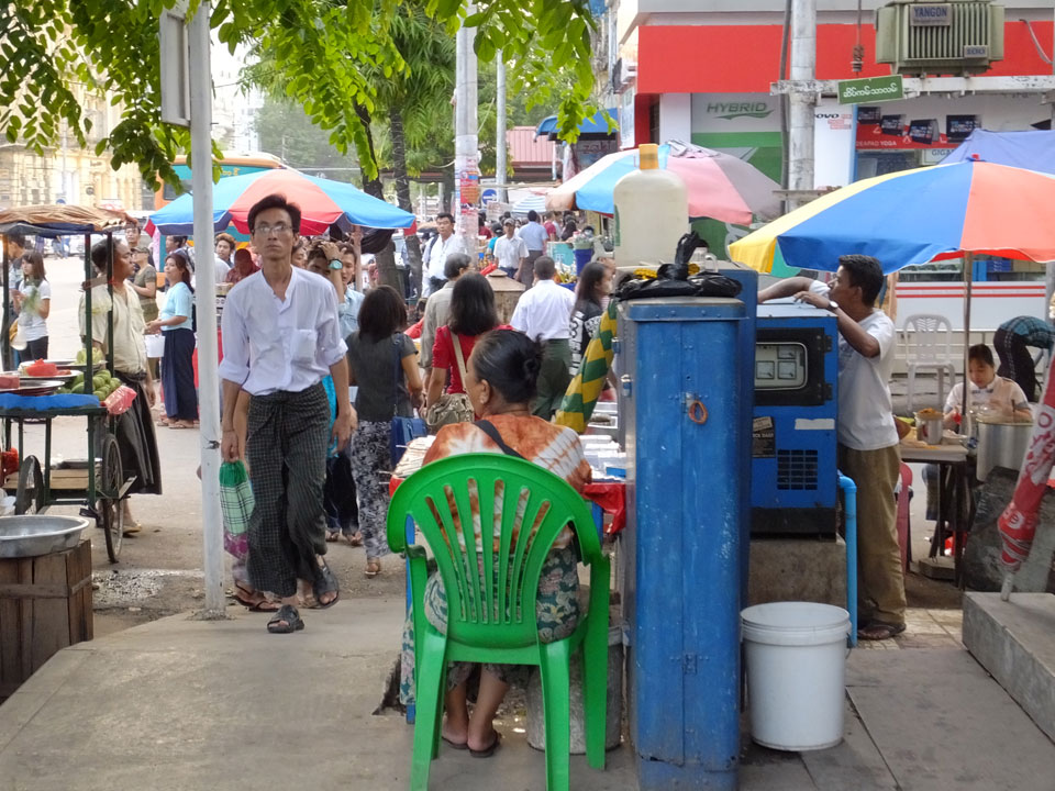 Im Trubel fand ich in einer Nebenstraße ein restarant, was gerade Hühnchen und Schwein zerschnitt. Das große Essen wurde vorbereitet und die Leute nahmen langsam Platz. Ich hatte dann das Schwein, was vorzüglich schmeckte. Nur 700 Kyat. Etwas ging ich noch umher und dann kam nach dem Magen der Kopf dran. Nach einigen Wochen ohne Friseubesuch nahm ich den „Ba Ba“ gleich neben dem Hosteleingang.