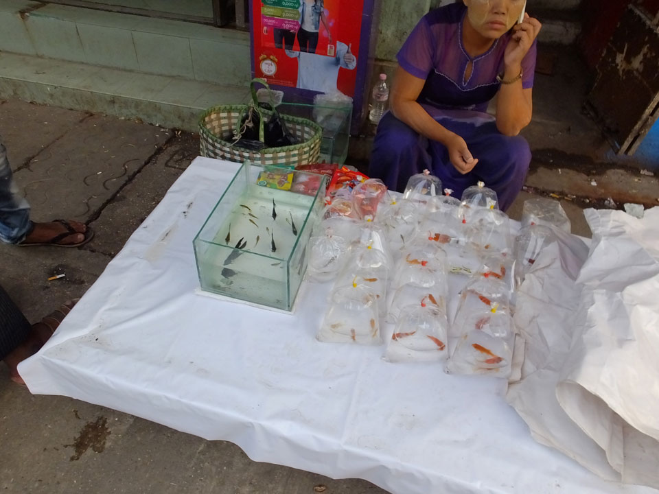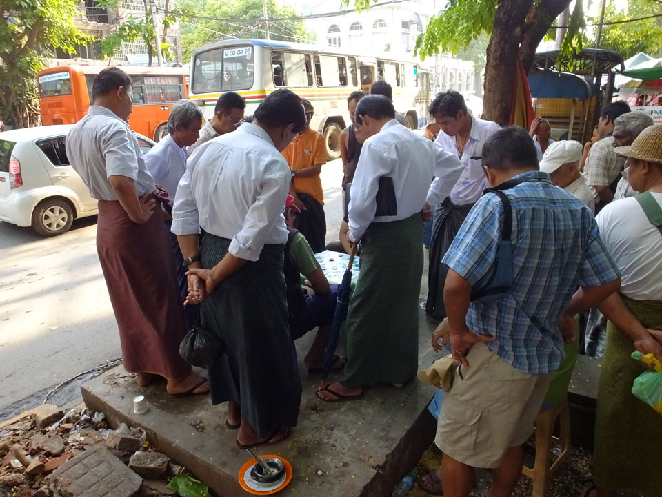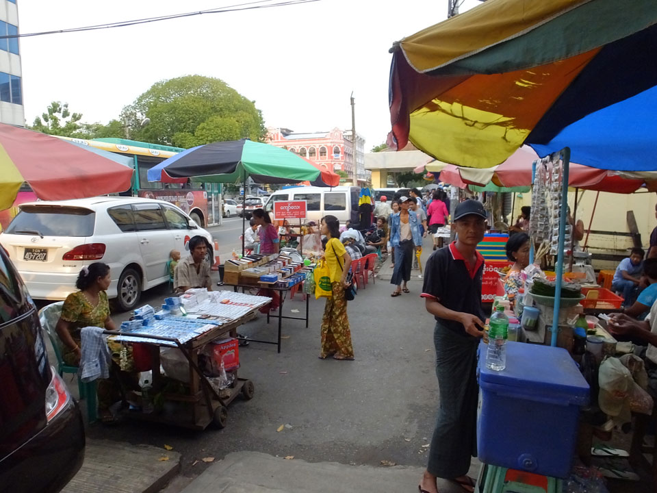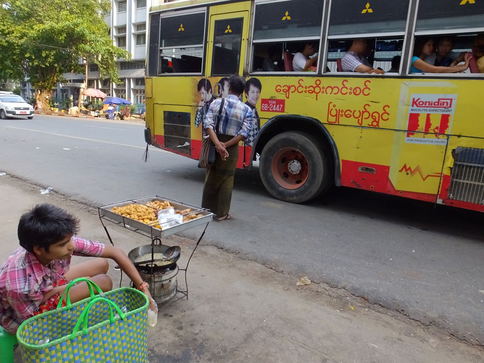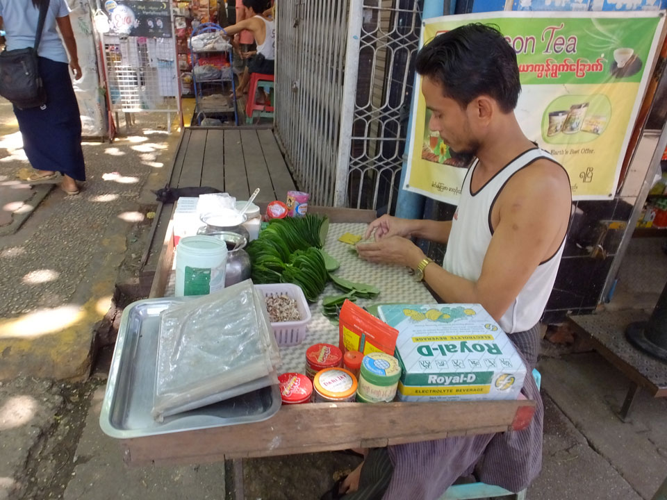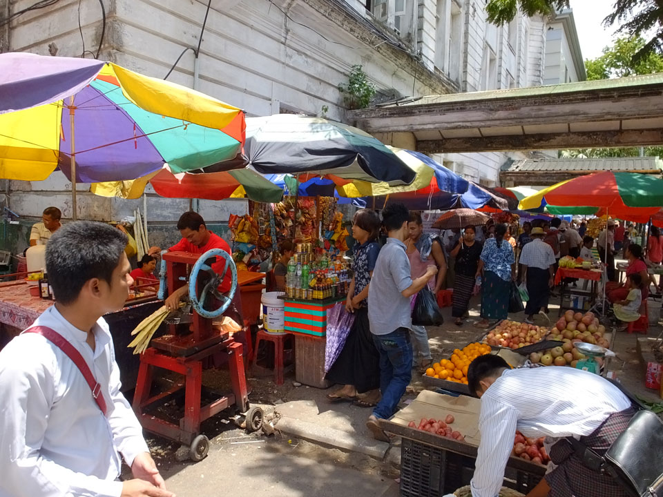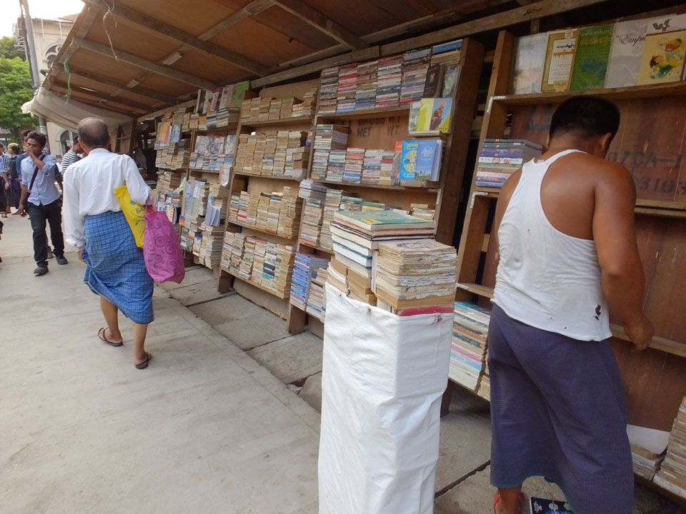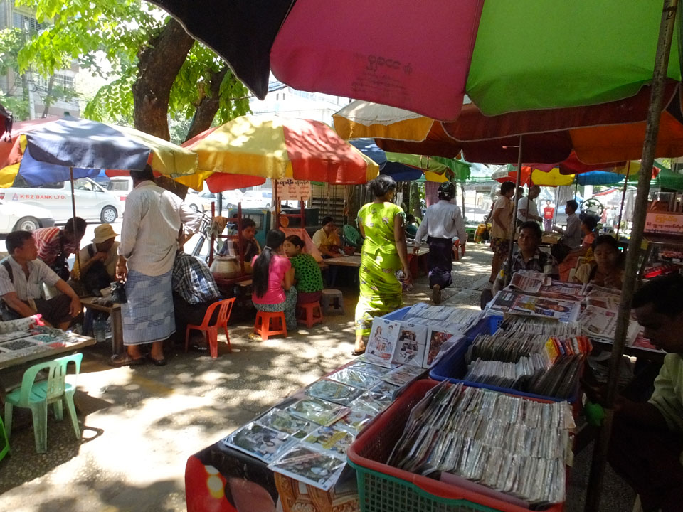 Im Trubel fand ich in einer Nebenstraße ein restarant, was gerade Hühnchen und Schwein zerschnitt. Das große Essen wurde vorbereitet und die Leute nahmen langsam Platz. Ich hatte dann das Schwein, was vorzüglich schmeckte. Nur 700 Kyat. Etwas ging ich noch umher und dann kam nach dem Magen der Kopf dran. Nach einigen Wochen ohne Friseubesuch nahm ich den „Ba Ba“ gleich neben dem Hosteleingang.