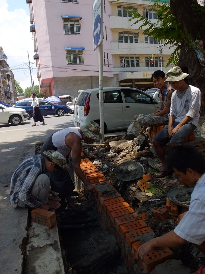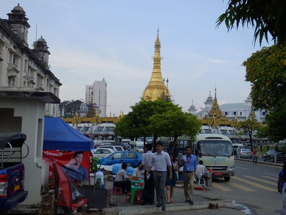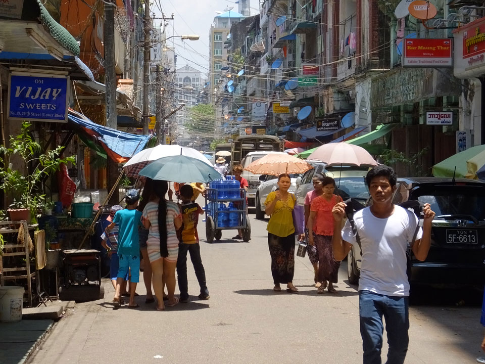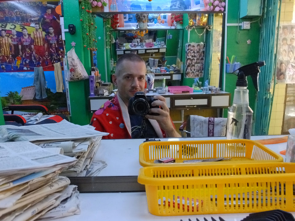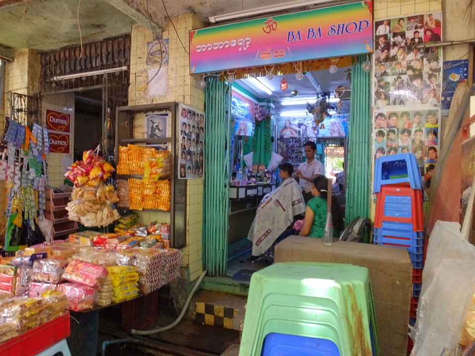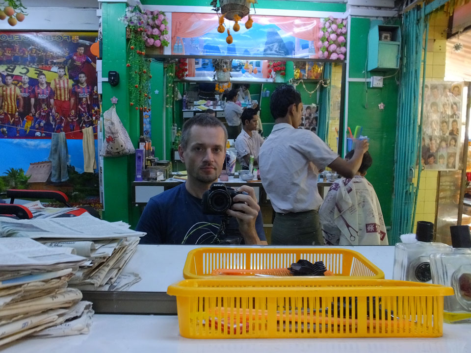 Der indische Friseur legte los und machte dann alles sehr genau und fein. Rasur, Haar waschen mit extremer Massage, Gesichtspolitur, Nase. Dann ging’s noch weiter mit Massage der Stirn, Schulter, Rücken. Mein Hals wurde auch noch geknaxt. Die ganze Prozedur war also um einiges mehr als nur mal mit der Maschine die Haar zu kürzen. Er wollte heftige 6000 Kyat und ich gab 7000. Eigentlich zu viel aber ich habe genug Kohle und das war wohl die aufwändigste Frisur, die man mit mit ’nem Maschinenschnitt machen kann.