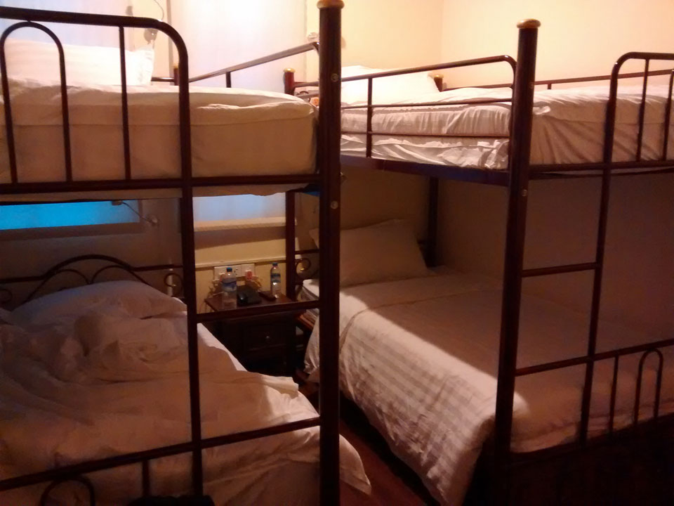 Ein Single room war gerade aus – ich bekam ein Twin aber war ganz und gar nicht zufrieden damit. ICh versuchte zu wechseln aber das einzig verfügbare Zimmer war ganz oben und kleiner. Morgen könne ich wechseln – heute ausgebucht.
