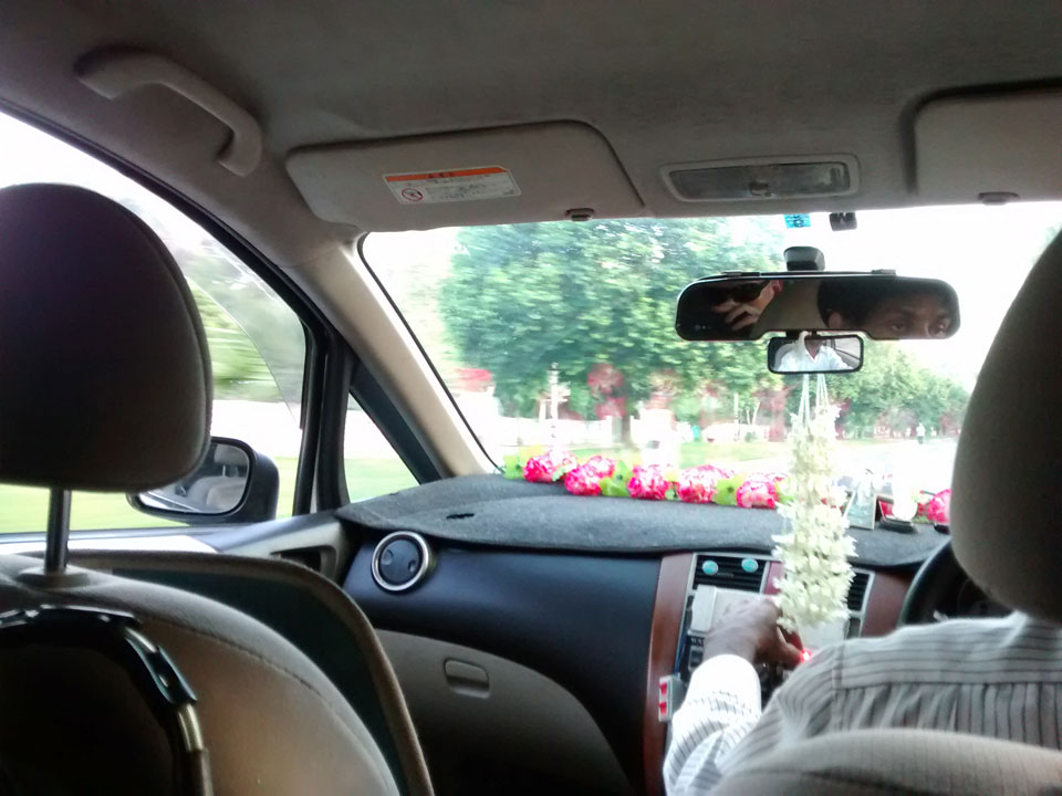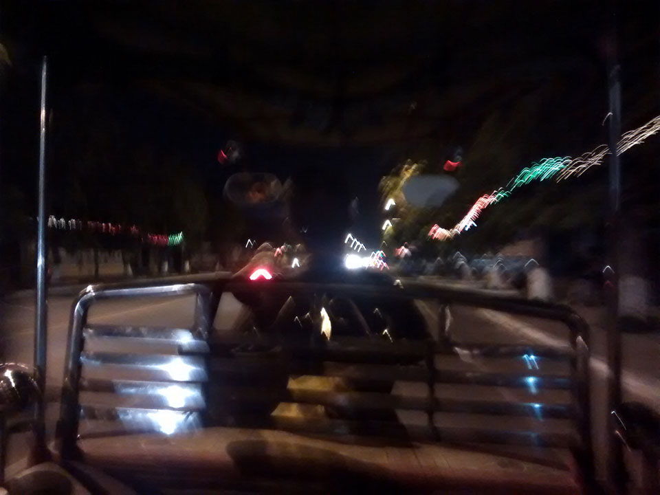 Na gut. Wieder voll bepackt mit mit meinem Rucksack hinten und dem kleinen vorn bei ihm. Die Fahrt dauerte lange – sicher eine halbe Stunde. Dann am Hotel schnell Geld gewechselt für die $5.
