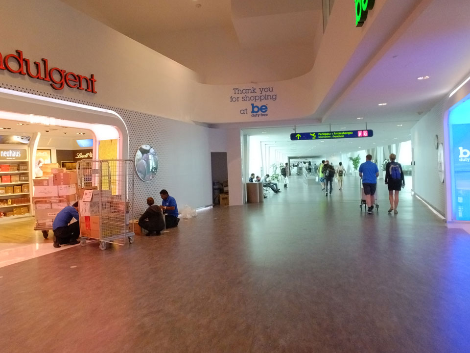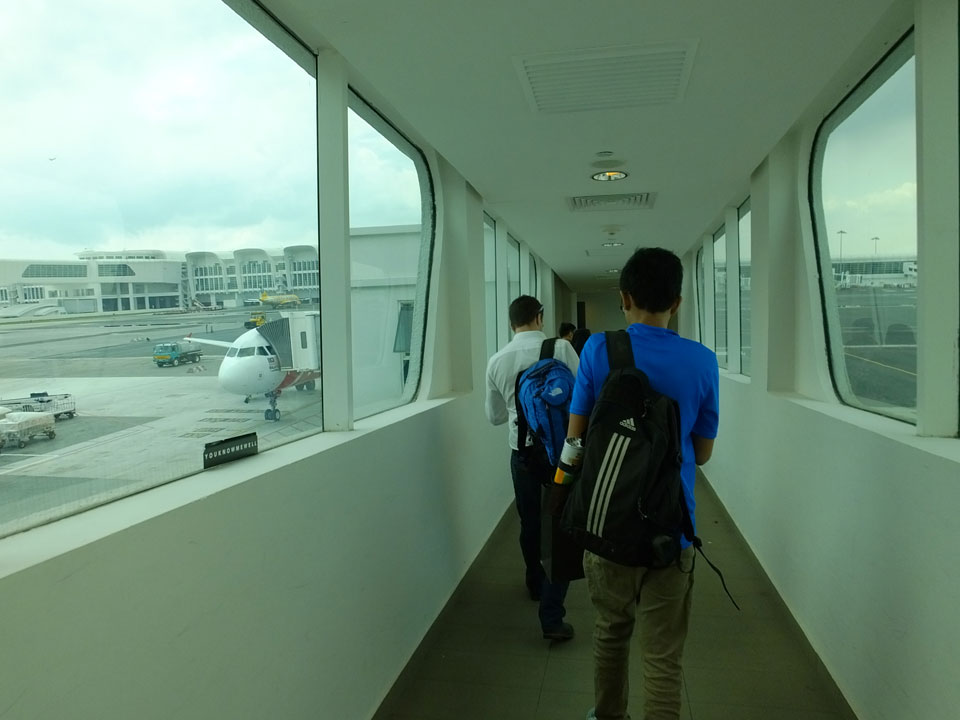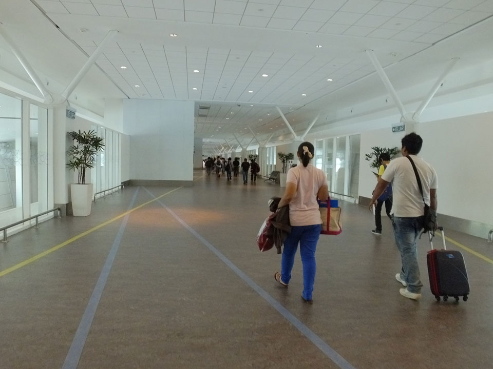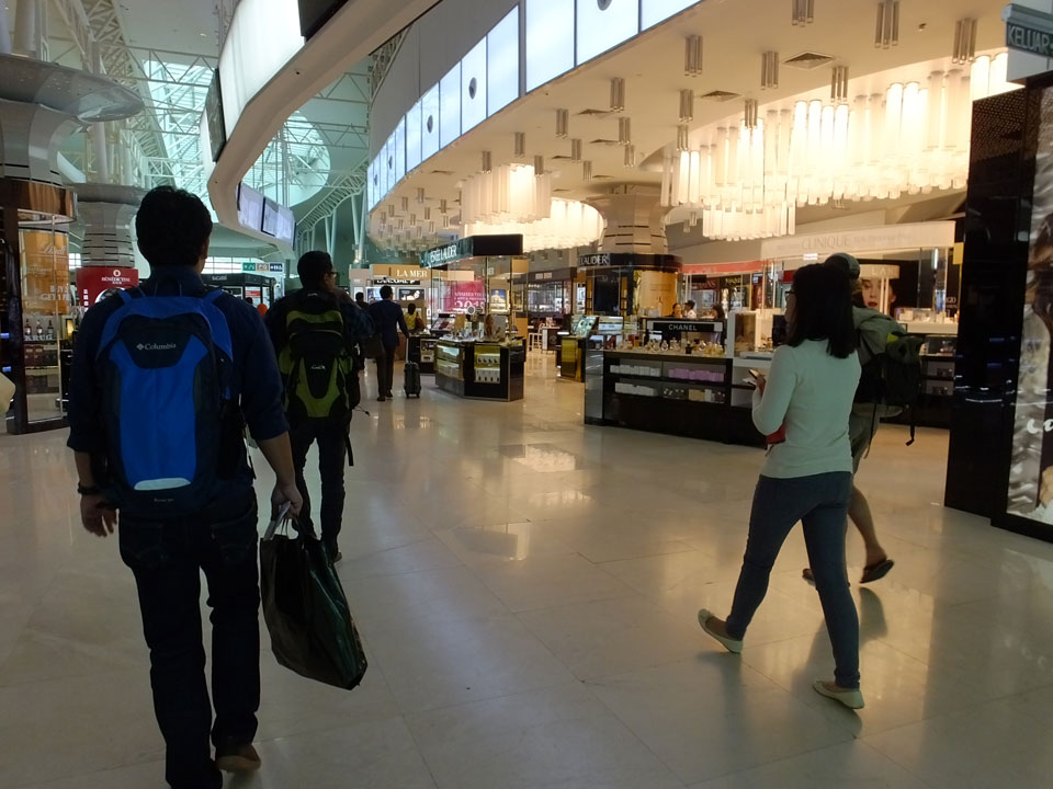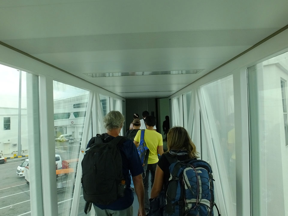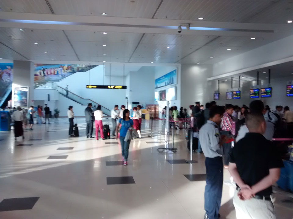 Lage Schlangen überall und viele Leute. Schließlich fand ich einen Mitarbeiter jetzt ca 14:10, der jemanden suchte. Ich konnte meinen Rucksack aufgeben, bekam mein Ticket. Boarding in 10 Minuten. Die Sicherheitskontrollen gingen schnell, ebenso der Ausreisestempel im Pass. Der Flughafen ist riesig aber ich schaffte. Der Flug war gerade zum Einsteigen bereit. Alles bestens! Meine einzige Sorge war, ob es auch mein Gepäck geschafft hatte.