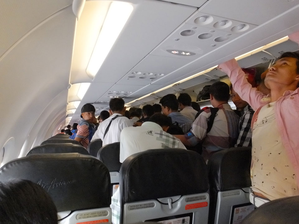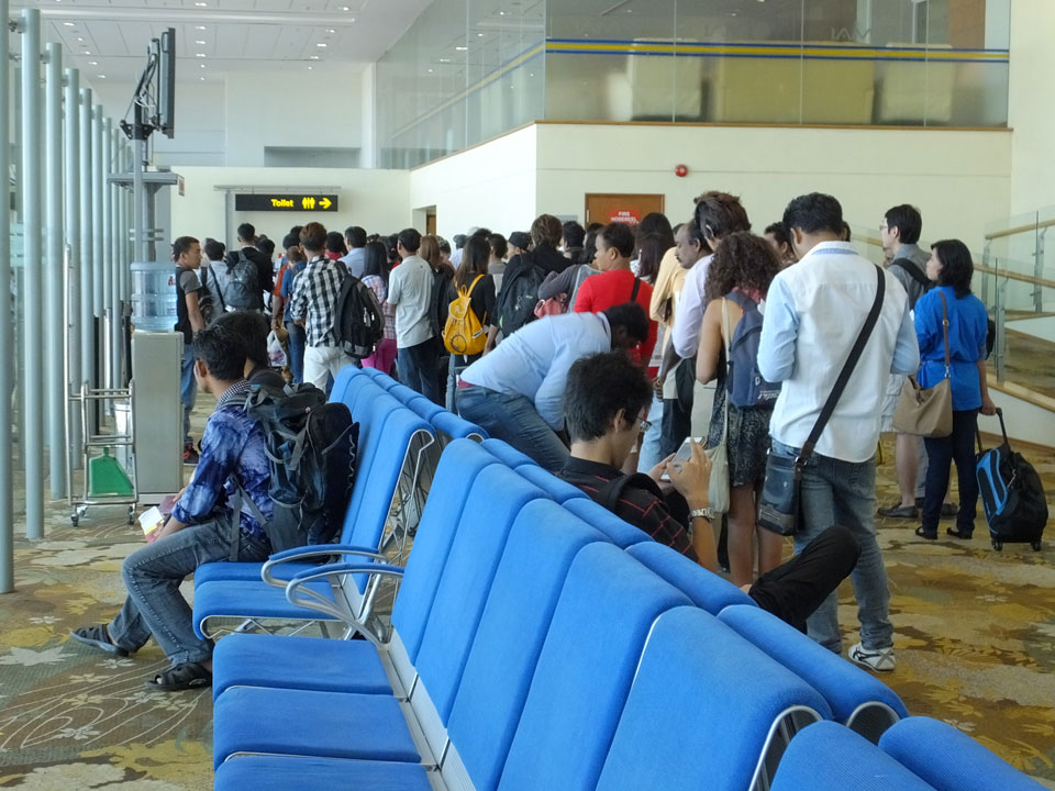 Bei dem vollen Flieger kam so einiges an Gepäck zusammen und es war inzwischen verdächtig nach an 14:00. Bei einem internationalen Flug ein Problem. Ich wartete ewig. Nicht gerade Glück, dass mein Rucksack als eines der letzten Stücke kam. Mein Herz pochte bei dem Stress und jetzt mit den Sachen hastete ich zu den AirAsia Schaltern in der dritten Etage.
