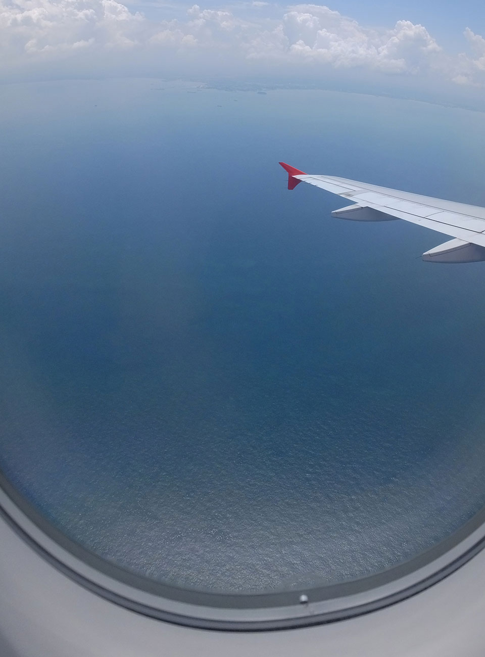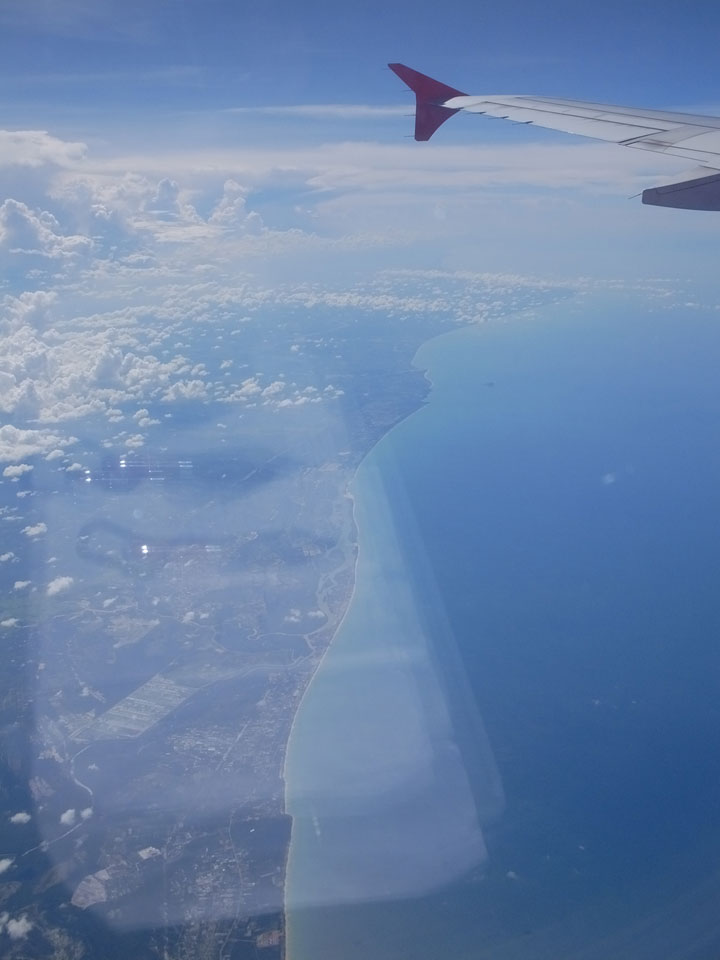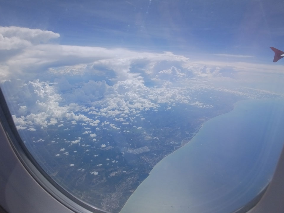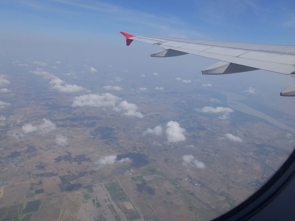 Mit dem Taxi und ohne Frühstück ging’s zum Flughafen. Um die 40 Minuten bei wenig Verkehr am Morgen. Ich checkte ein und bekam mal einen Fensterplatz.