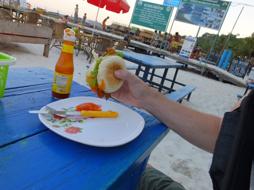 Das letzte Abendessen auf der Insel und ich wollte wieder das gemischte Meeresfrüchte BBQ vom ersten Abend. Baracuda war aus, so nahm ich Schweinerippchen als Ersatz.