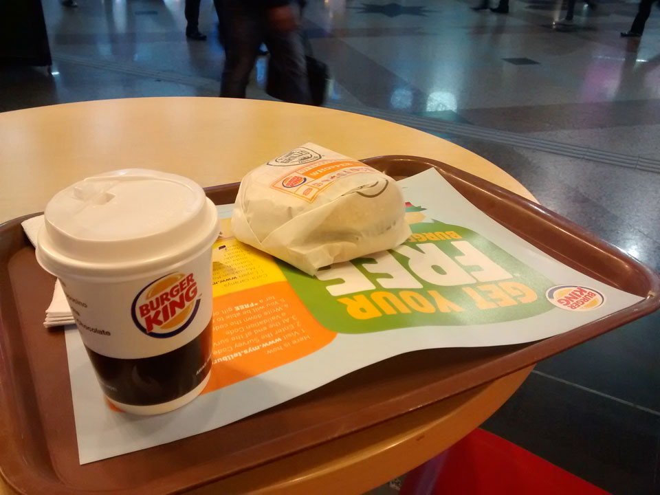 Rechtzeitig zum Sentral Bahnhof, dort dann suchte ich erst ein wenig den Zug. Ich Frühstück bei Murger King bracht einen Burger ein.