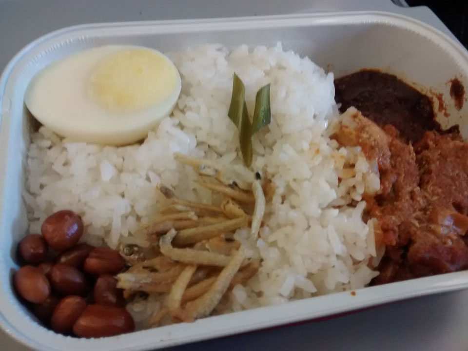 Im Flieger gönnte ich mir ein Nasi Lemak. Das schmeckte einfach super. Ich zahlte etwas mehr in USD und dachte schon, noch eins zu nehmen.