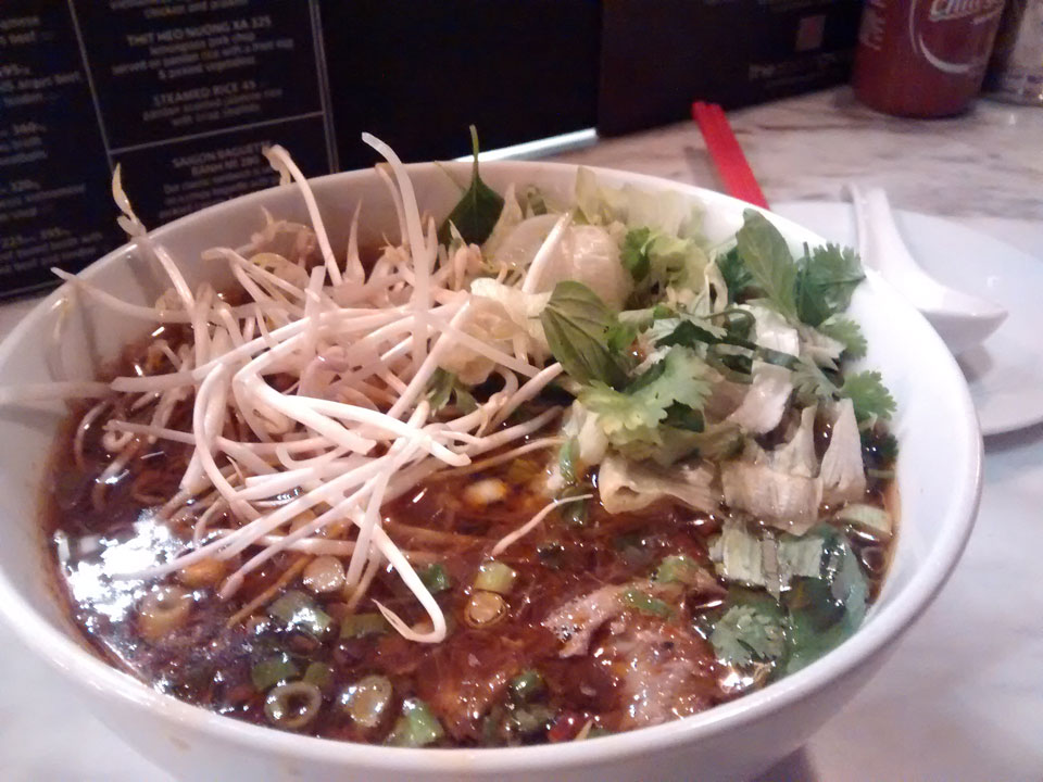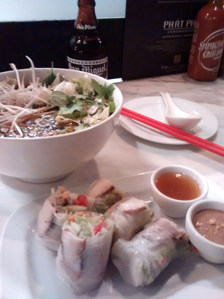 Wir fuhren zu einem Pho Restaurant. Ihr Freund kam hinzu (macht handgefertigte Messer) und noch ein Mädel. So aßen wir Pho, ich eine scharfe. Die Suppe war supper, brachte meine Nase ordentlich zum Laufen. Das ist immer etwas peinlich aber so ist das.