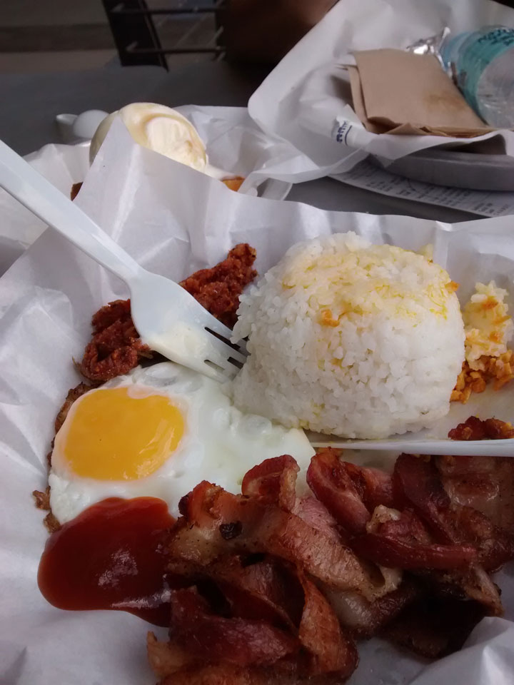 Viel Action gestern und damit ein Frühstück mitd en letzten Pesos in der Ayala Mall. Bein Army & Nay gab’s ein deftiges Frühstück – genau das Richtige.