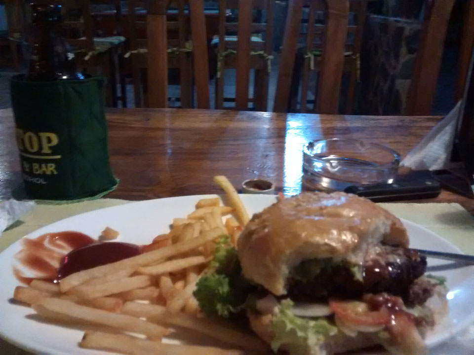 Eine Erkältung startet oder irgendwas. Abends ging ich die Straße runter, hatte ’nne Hamburger mit Pommes und Bier für 300 (€6). Ich kaufte mir Wasser und war erst mal zurfrieden. Viel Fernsehen heute bei wackeligem Handy-Internet und am Ende ein paar Sorgen.