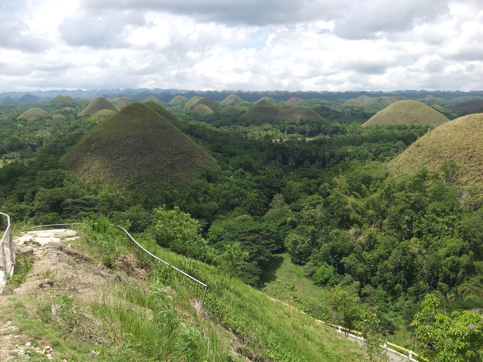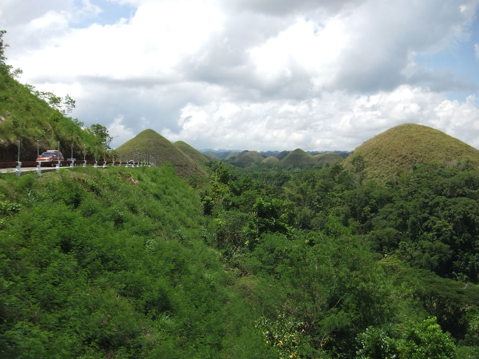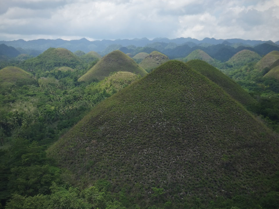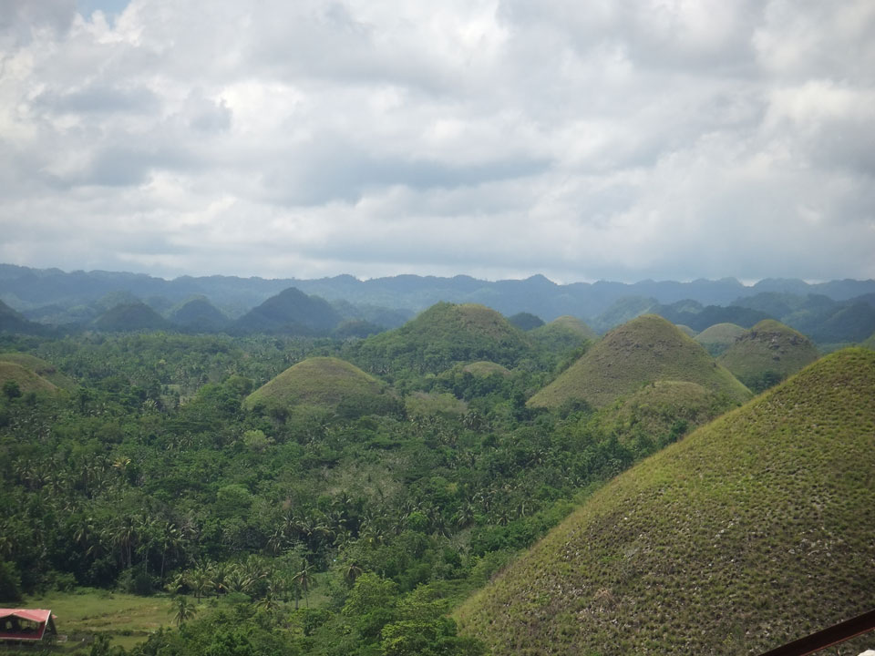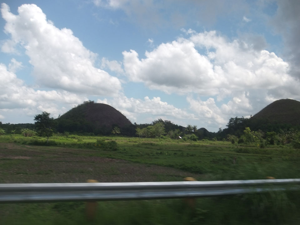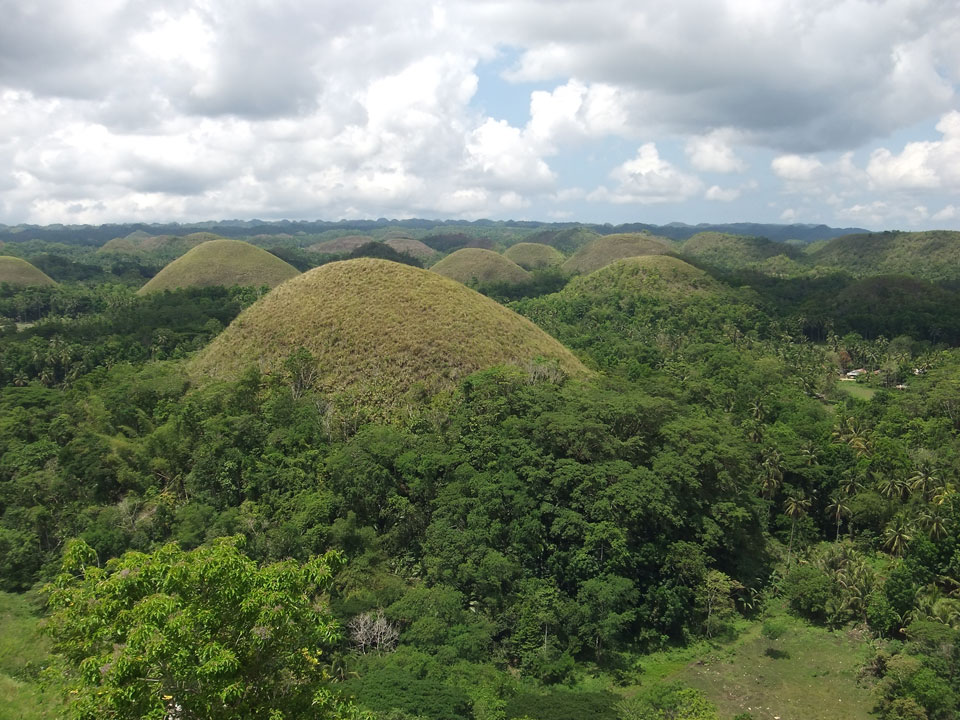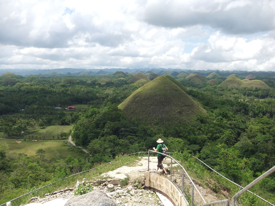 Der erste Stopp waren dann auch die Chocolate Hills von Bohol (50 PHP). Schon bei der Anfahrt sah man die Hügel, die in der ganzen Landschaft verstreut sind. Wenn sie braun statt grün sind, sehen sie aus, wie Schokolade. Von einem Aussichtspunkt oben hatte man eine gute Aussicht. Hier vermisste ich meine Fuji.