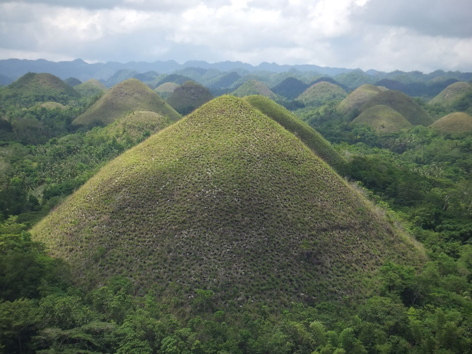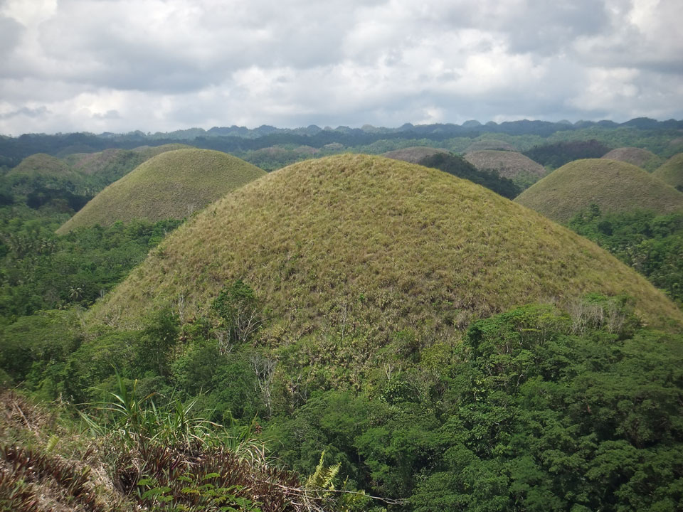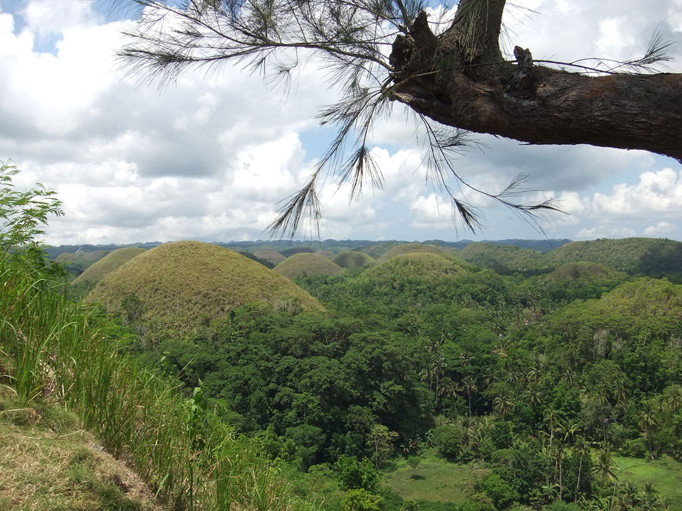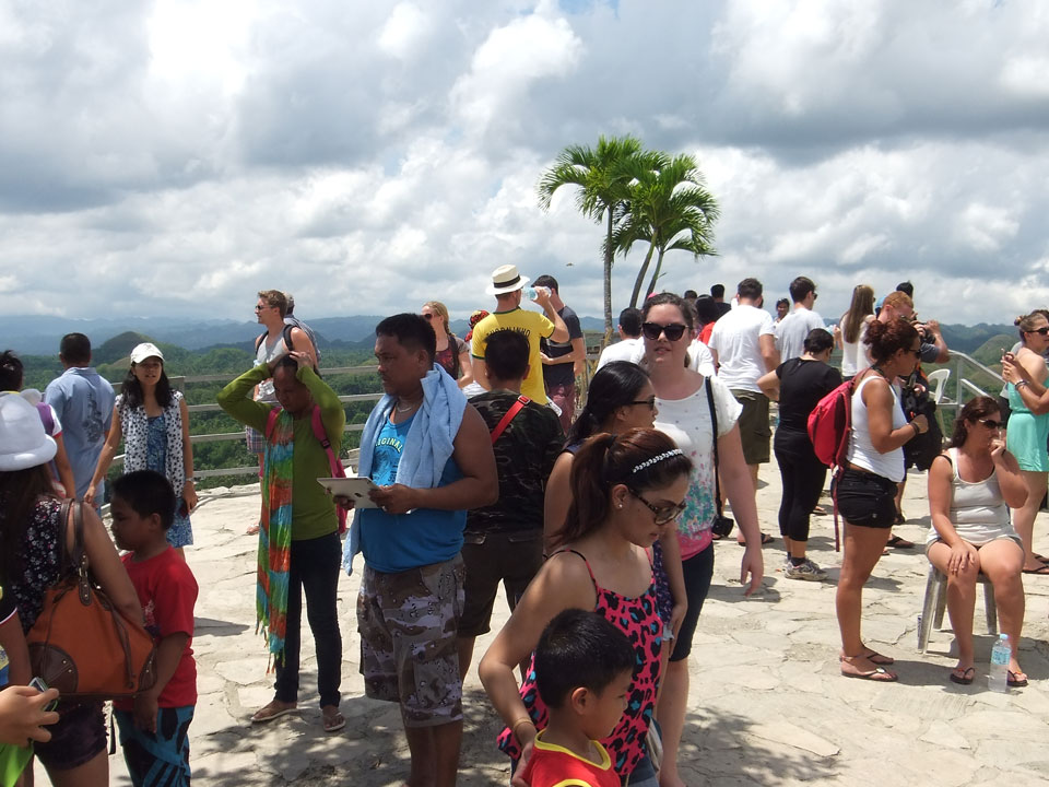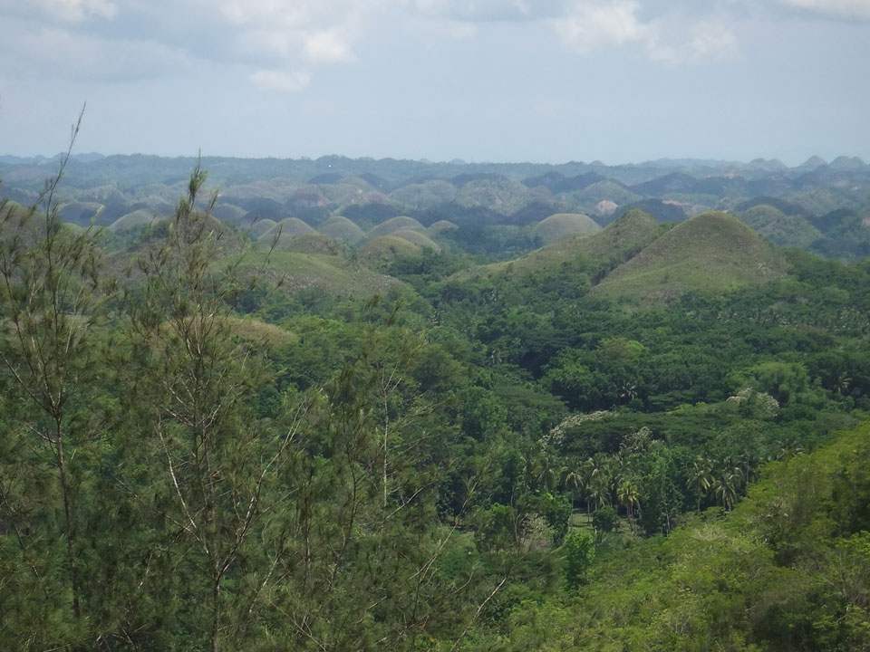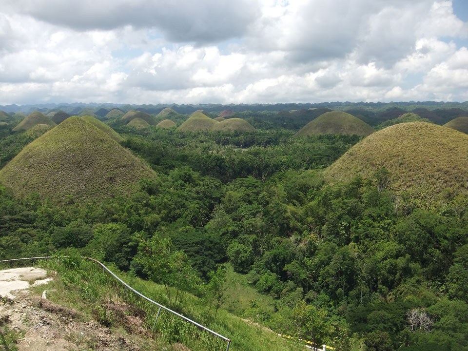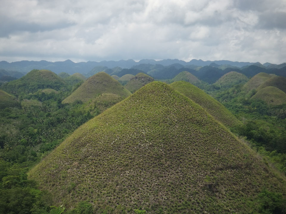 Der erste Stopp waren dann auch die Chocolate Hills von Bohol (50 PHP). Schon bei der Anfahrt sah man die Hügel, die in der ganzen Landschaft verstreut sind. Wenn sie braun statt grün sind, sehen sie aus, wie Schokolade. Von einem Aussichtspunkt oben hatte man eine gute Aussicht. Hier vermisste ich meine Fuji.