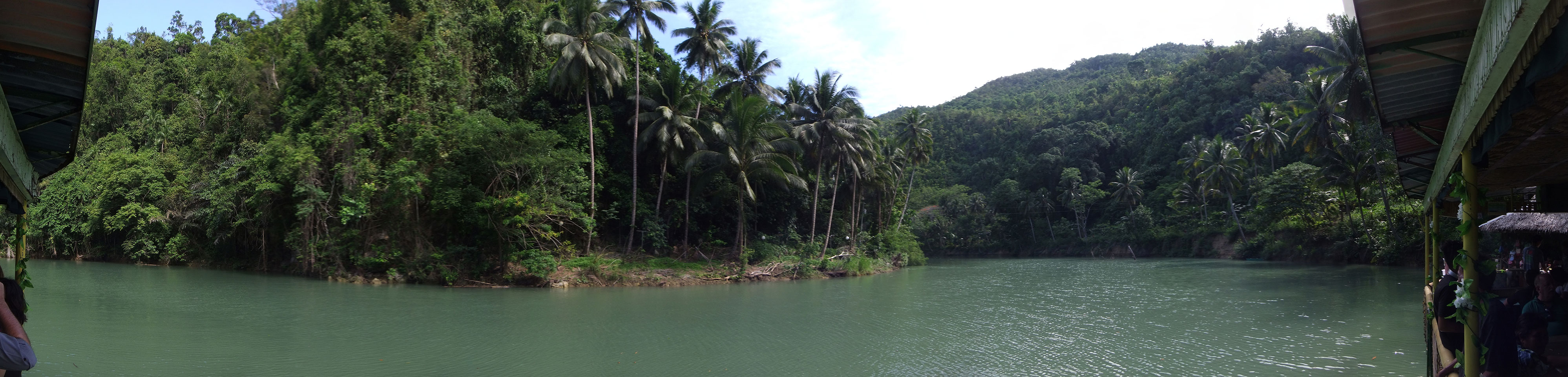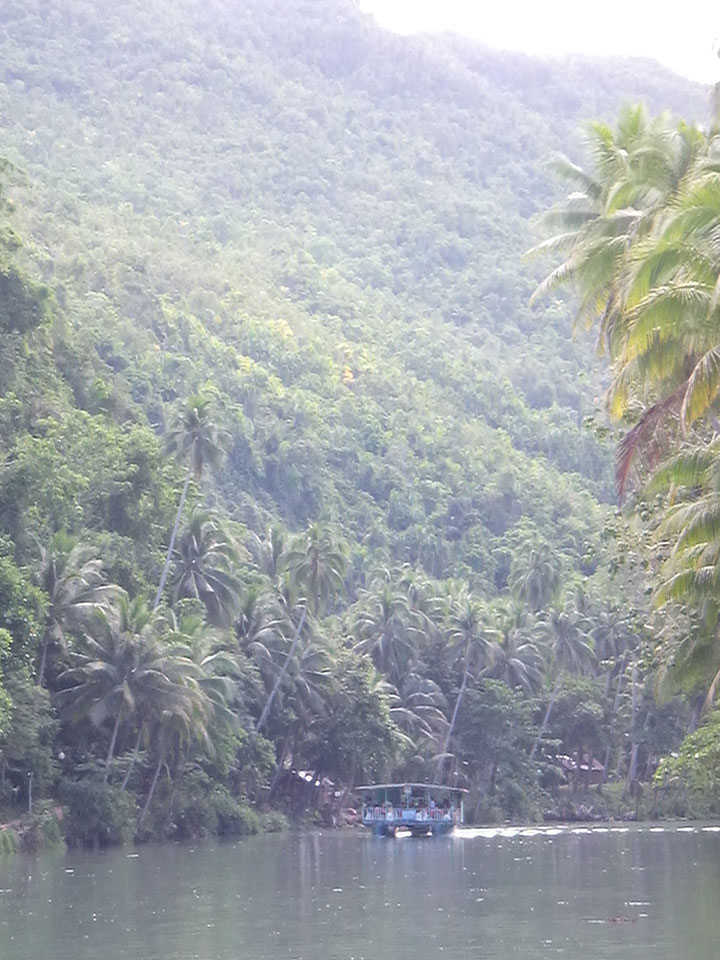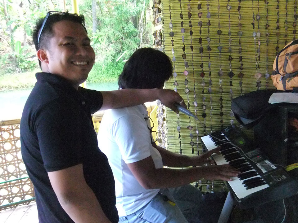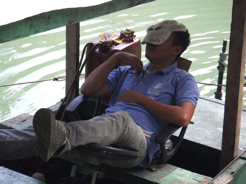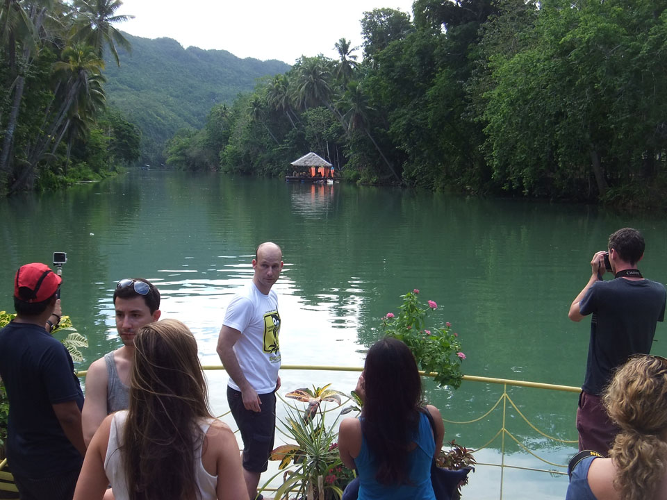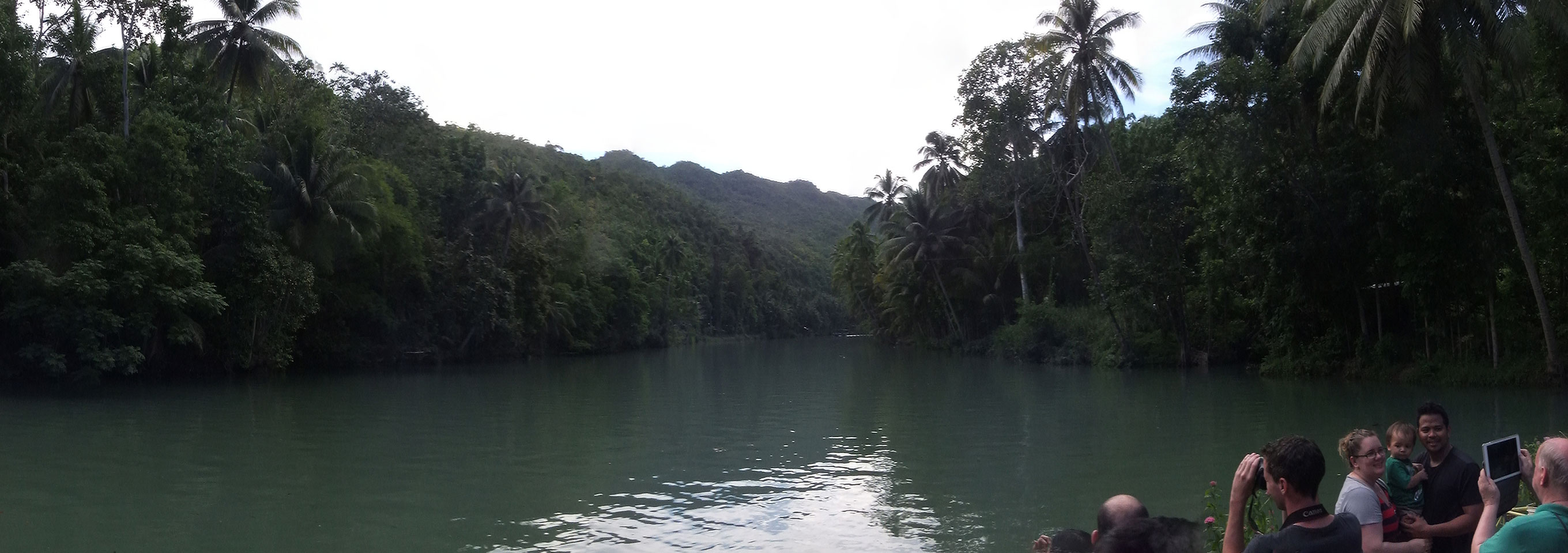 Zum Mittag dann am Loboc Fluss kam die teuerste Aktion – 450 PHP – also fast €10. Dafür eine Bootsrundfahrt und Mittagessen. Das Buffet war leicht kalt aber ich will mal nicht meckern, ich wurde ohne Hunger satt. Die Fahrt war auch ganz nett in der schönen Landschaft. Einer spielte Keyboard und ein anderer sang die beliebten schnulzigen Lieder – Phil Collins usw..