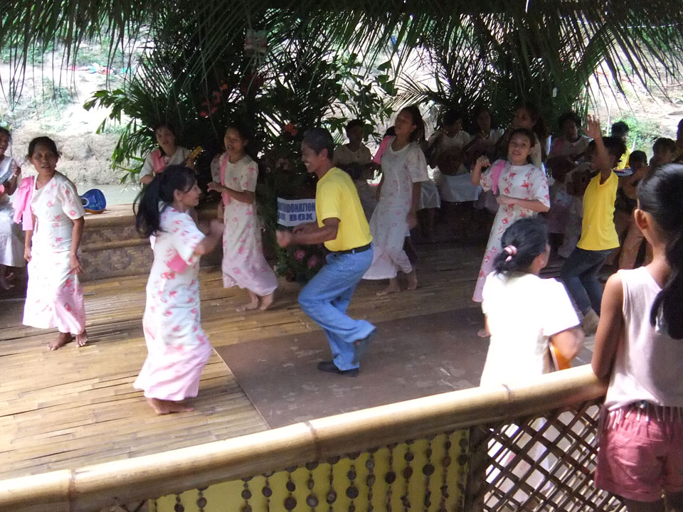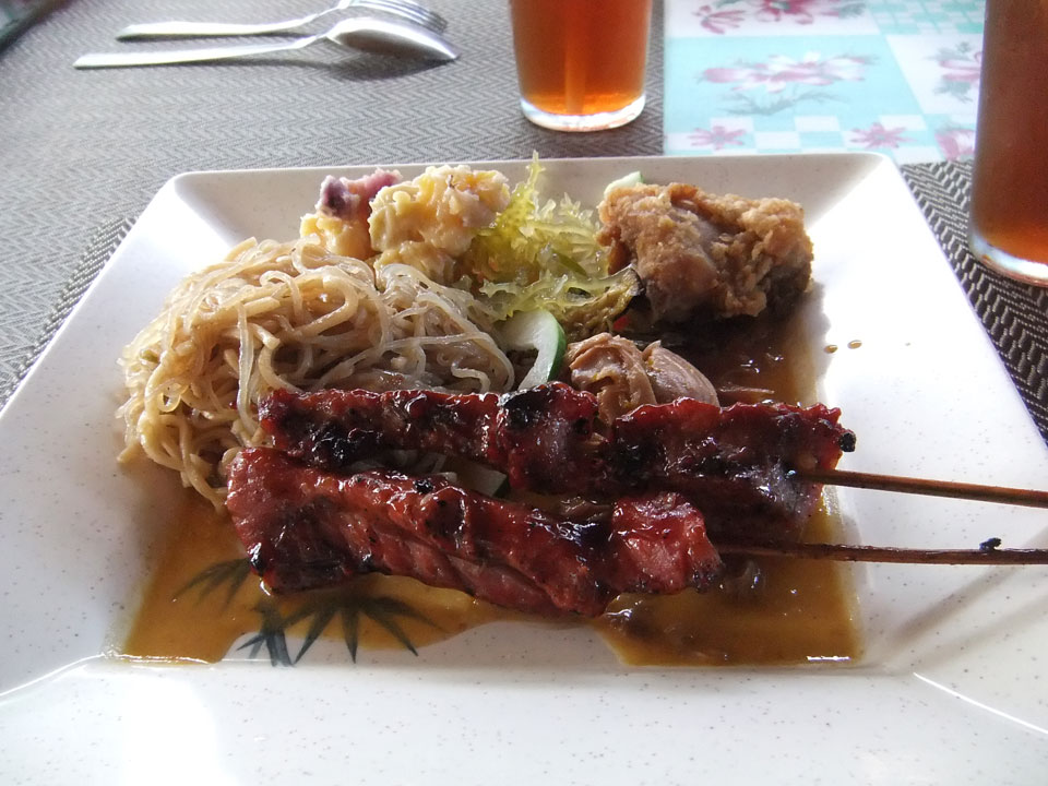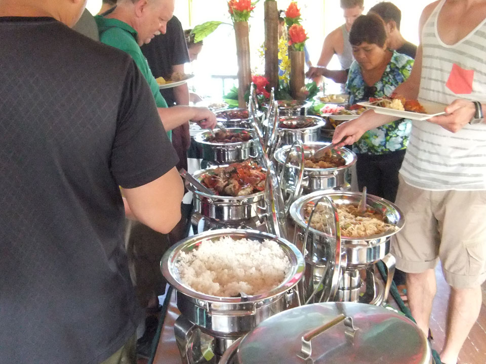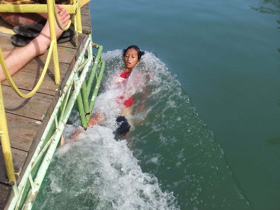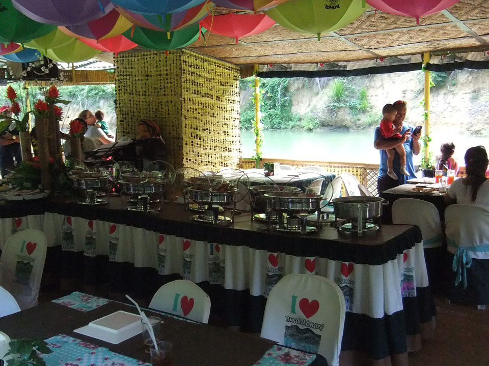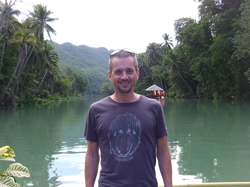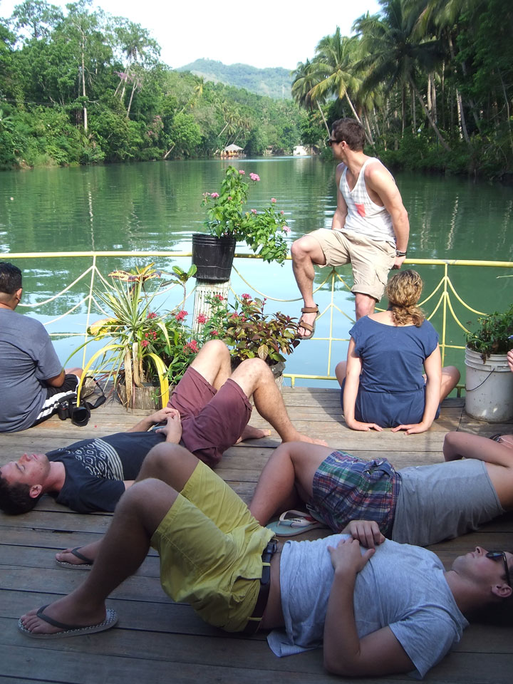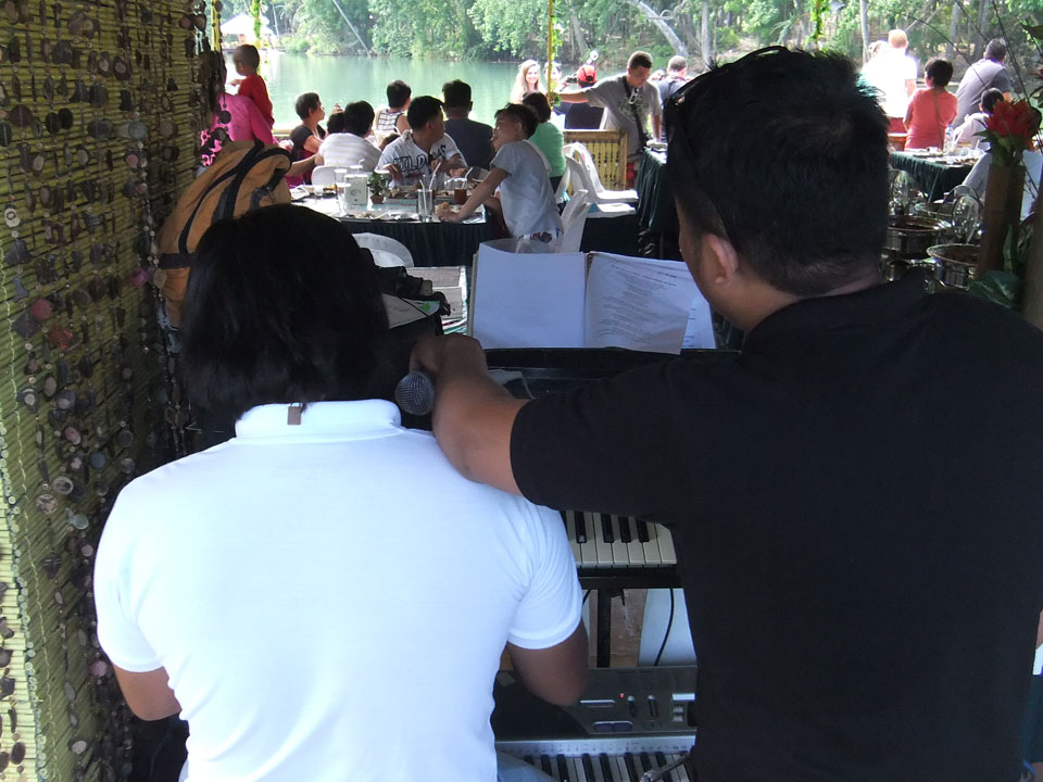 Zum Mittag dann am Loboc Fluss kam die teuerste Aktion – 450 PHP – also fast €10. Dafür eine Bootsrundfahrt und Mittagessen. Das Buffet war leicht kalt aber ich will mal nicht meckern, ich wurde ohne Hunger satt. Die Fahrt war auch ganz nett in der schönen Landschaft. Einer spielte Keyboard und ein anderer sang die beliebten schnulzigen Lieder – Phil Collins usw..