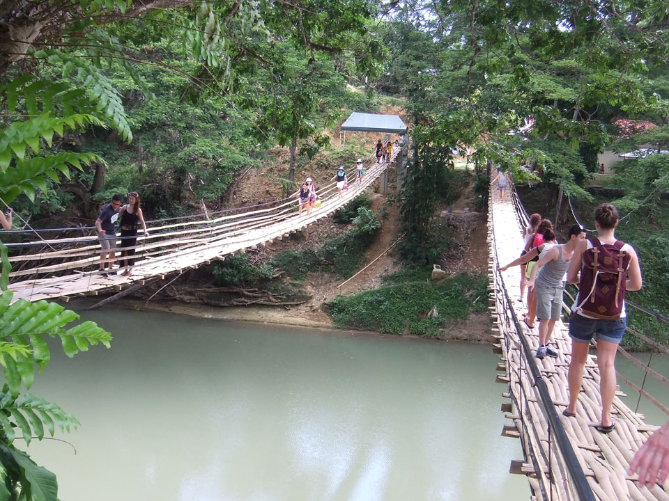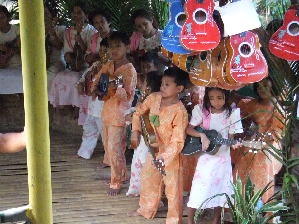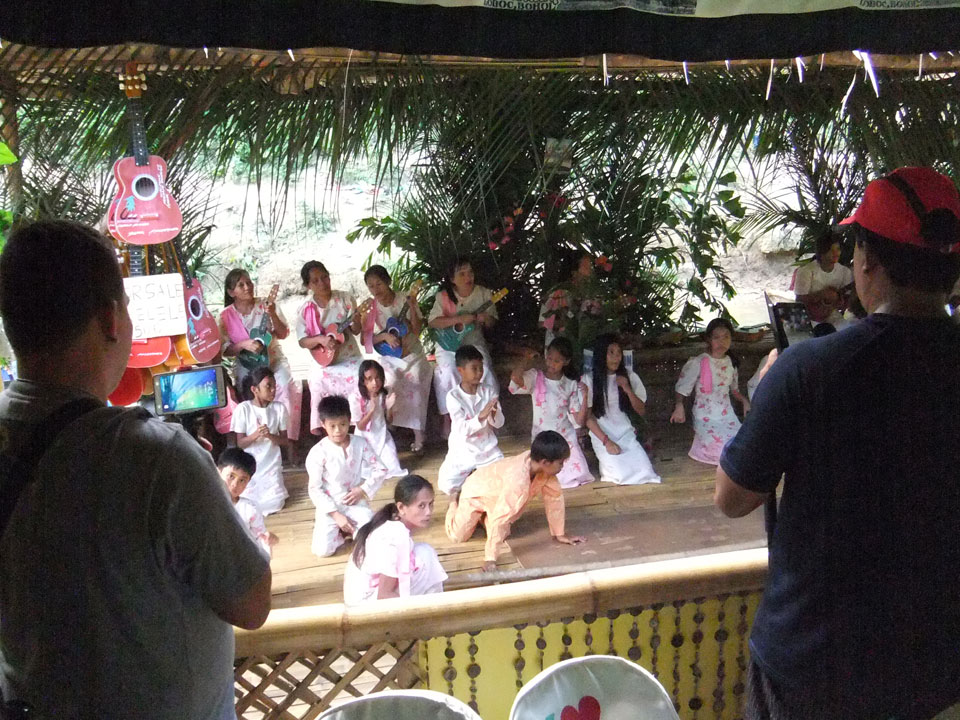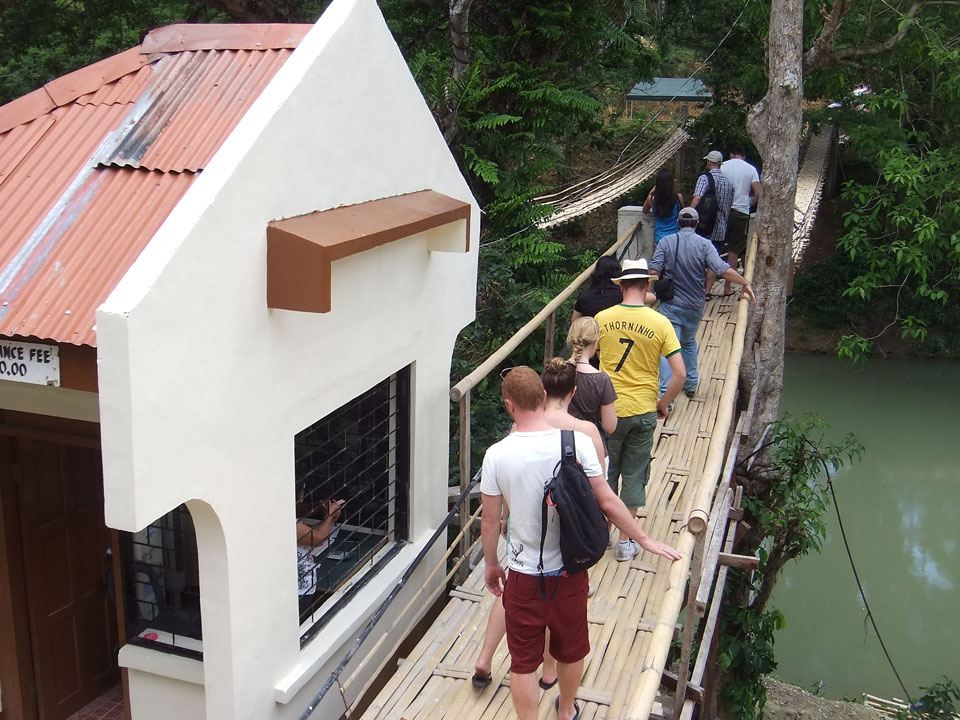 Wir kamen an einen Steg wo eine Gruppe von vielleicht 20 Philippinos mit Ukulele musizierten. Voll touristisch aber ich fand’s super. Es hat schon was, wenn so viele Leute synchron die Saiten zupfen. Es gings chließlich zurück und zum letzten Stopp – Zip Line.