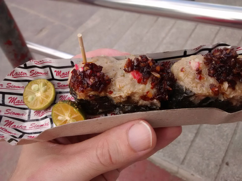 Ich kaufte mir ein Dumpling mit Hühnchen und war fix wieedr am Strand.