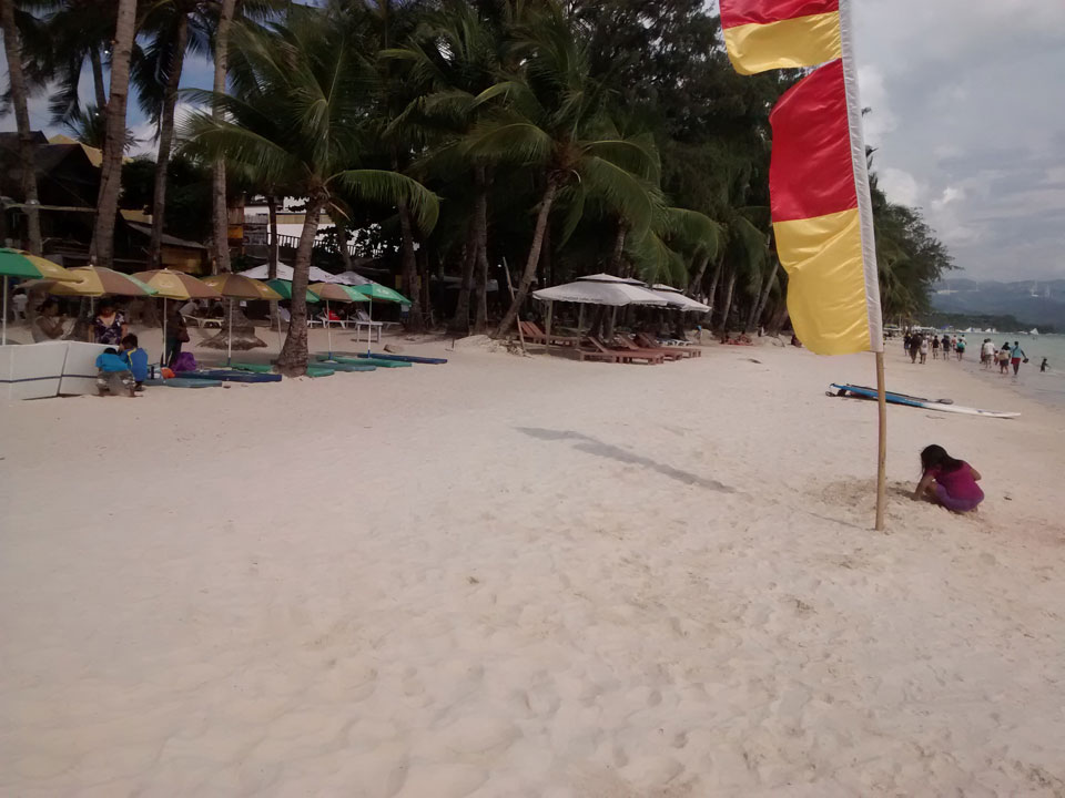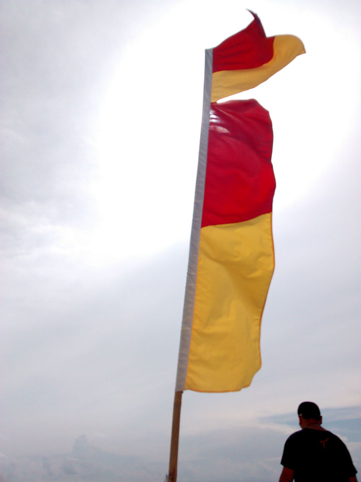 Eine Warnflagge der Rettungsschwimmer spendete mir Schatten. Whatsapp Chats spendete Unterhaltung hier an Station 2.
