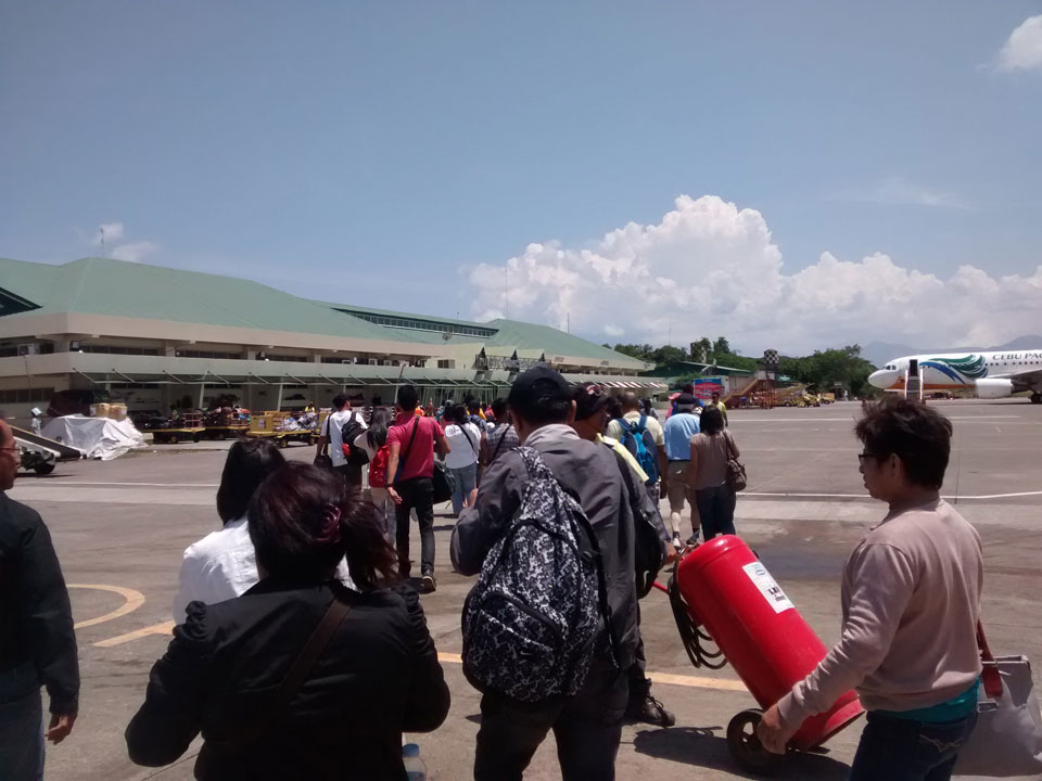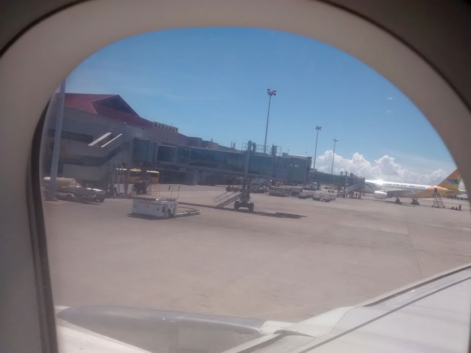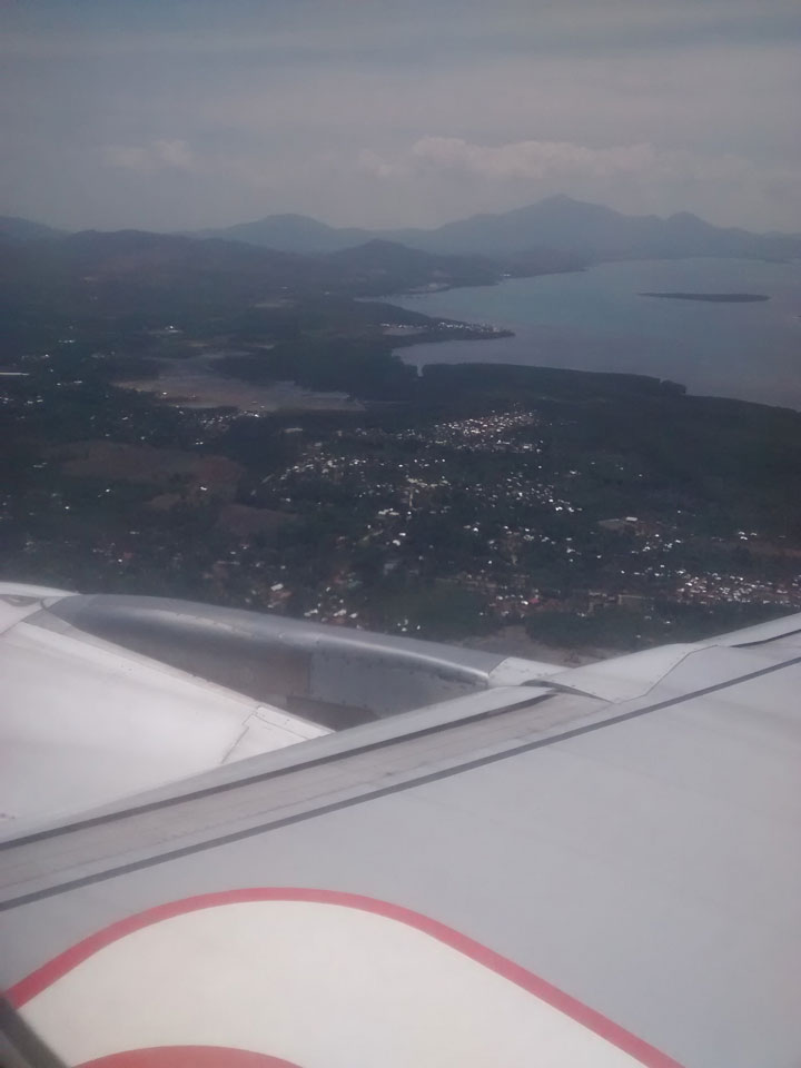 Routine: Auschecken, Frühstück, Taxi. Auf dem Flughafen nahm ich nochmal 10K mit, weil es in El Nido keine ATMs geben soll. Der Flieger war von AirAsia aber eigentlich von Cebu Pacific organisiert. Vielleicht halb voll hatte ich wieder einen Sitz in der Exit-Reihe.