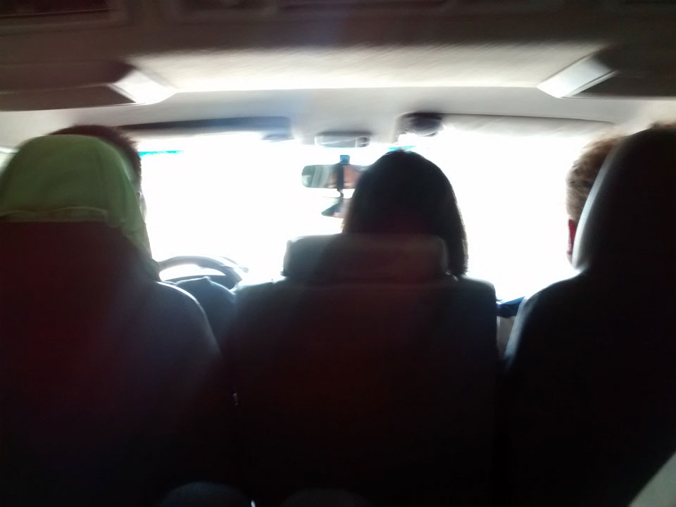 Mit dem Moto habe ich immer viel Internet. Ob das gut ist, wer weiß. Jedenfalls vertreibe ich mir die Zeit. Dann um 14:00 ging’s endlich los. Voller Van, enger Sitzplatz.