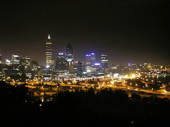 Ich hatte keine Ahnung, dass das internationale Terminal ganz woanders liegt als das Domestic. Es musste also mit dem Taxi weitergehen. Ich fragte den Taxifahrer, wieviel es mit einer zusätzlichen Stadtrundfahrt wäre. Kurze Entscheidung: er sollte mir bissel was von Perth zeigen. So kurvten wir durch die Straßen. Jetzt Dienstagnacht waren sie meist leer. Viele Häuser und auch ganz schön alles — dennoch keine Verlangen, hier viel länger zu bleiben.