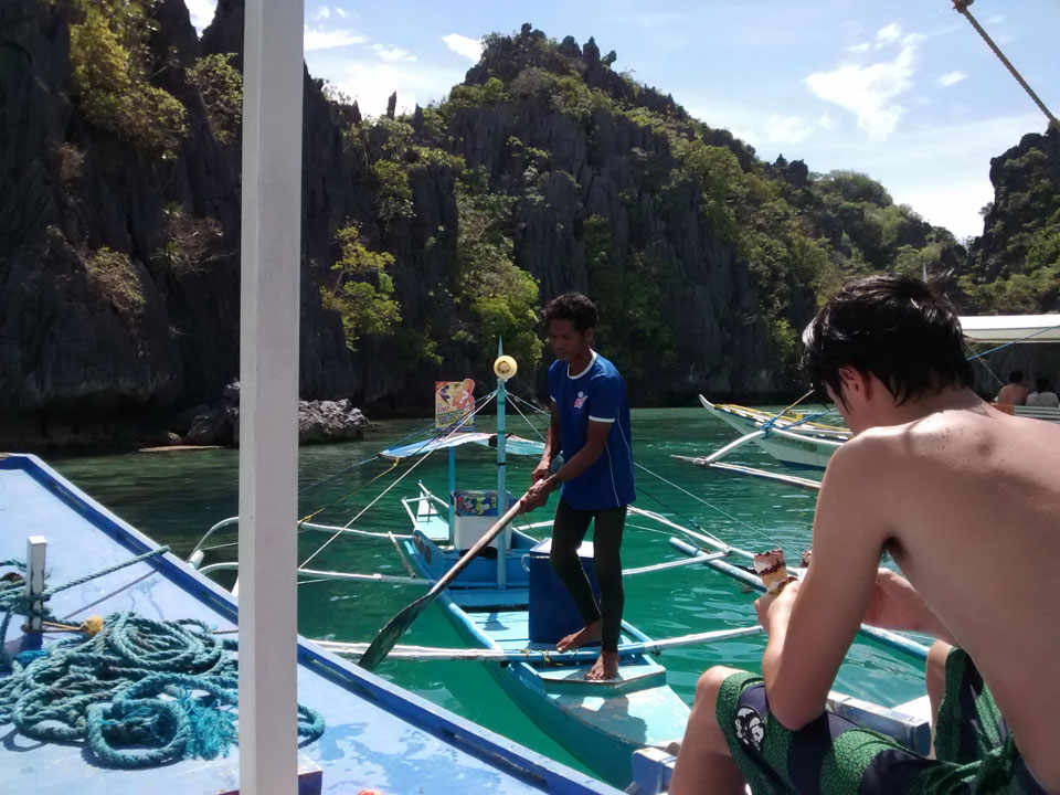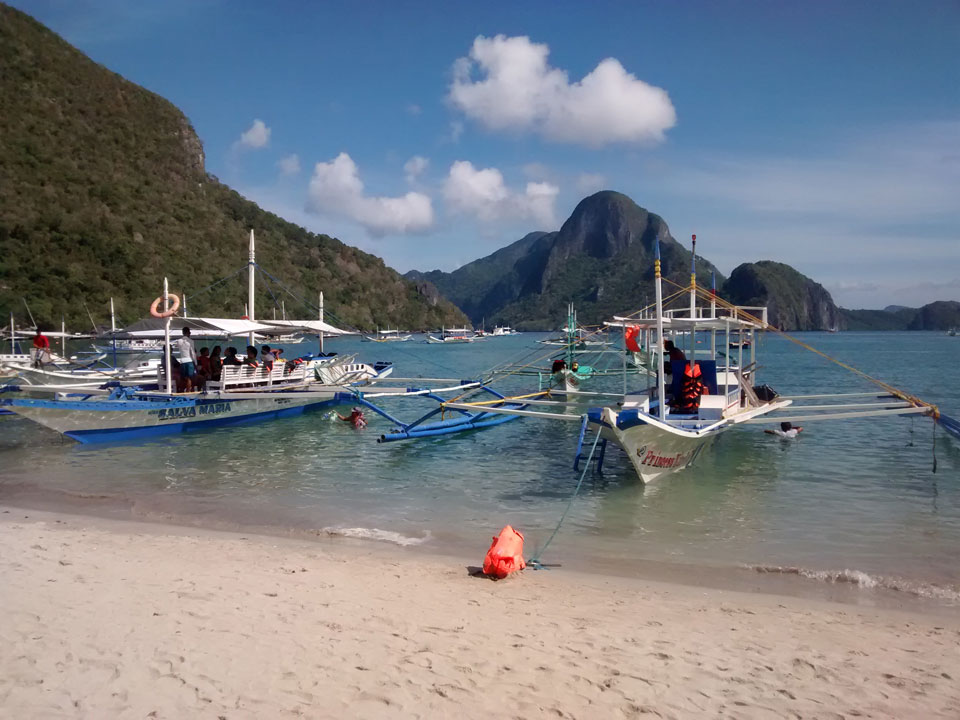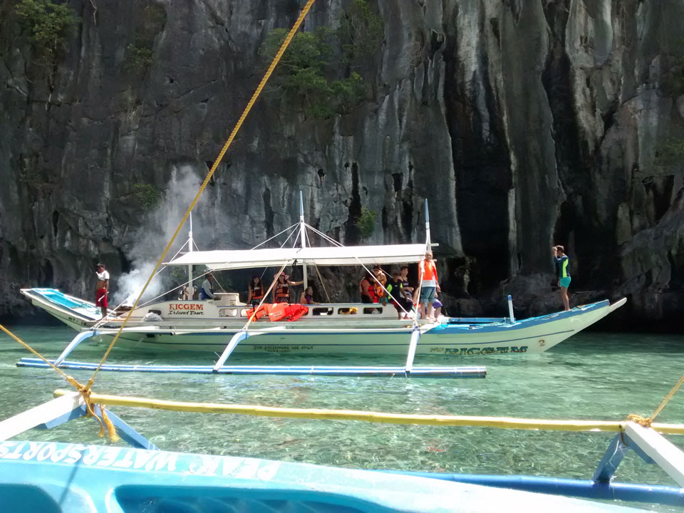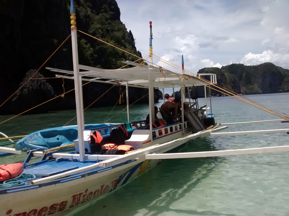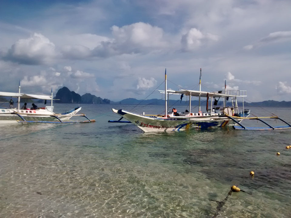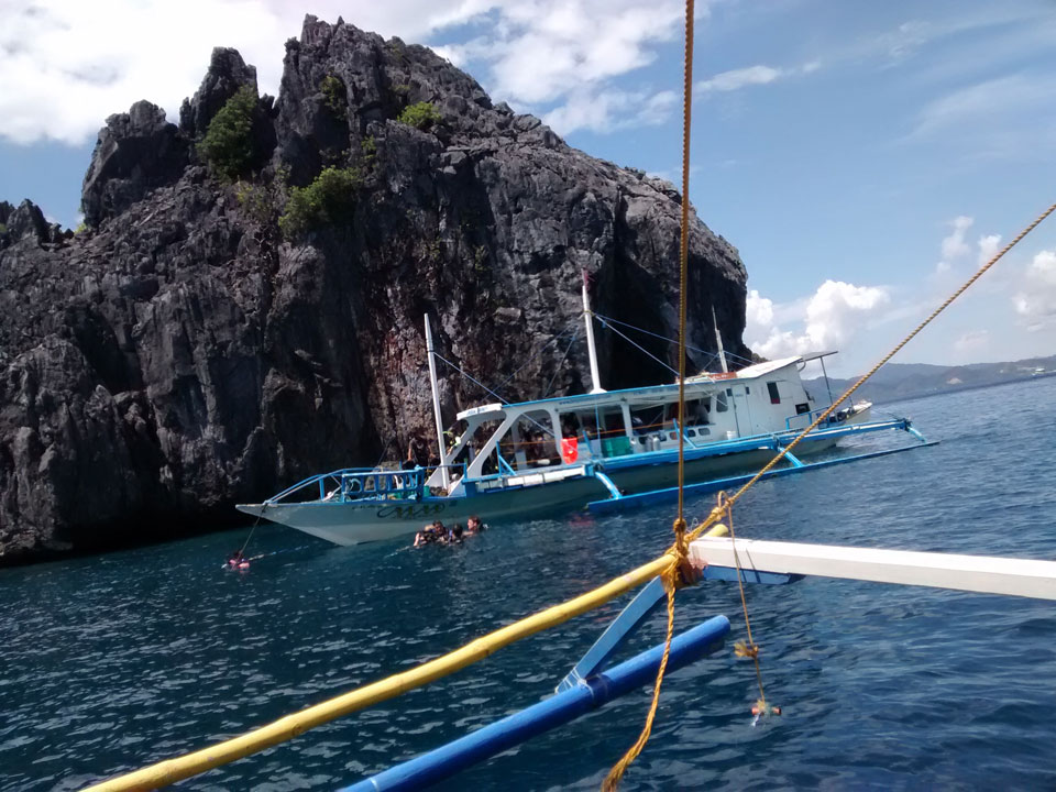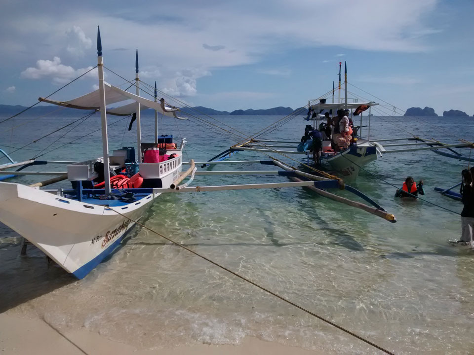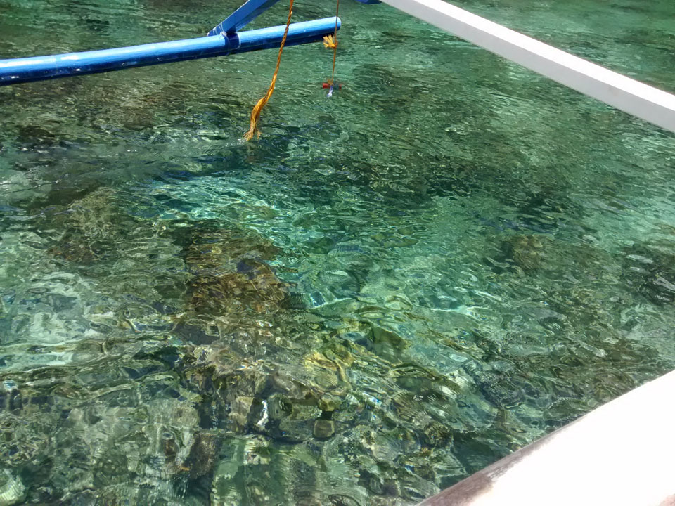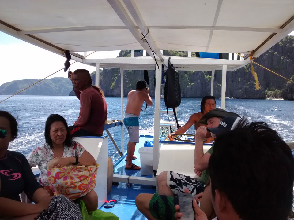 Per Moped ging#s weiter zu einem anderen Strand und dort dann auf die Tour. Einige Leute da, meist Philippinos. Das Boot legte los, ein Amerikaner wollte aber unbedingt Flippers haben. Ohne die kann er nicht schnorcheln. Das nervte doch arg aber wir mussten zurück für seine Schwimmflossen. Die Sind normalerweise nicht im Preis enthalten aber er bekam sie.