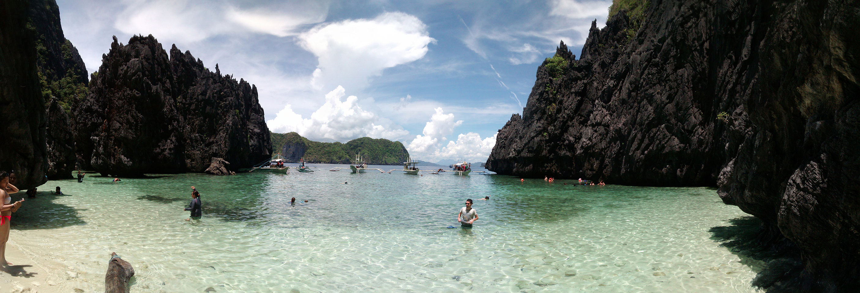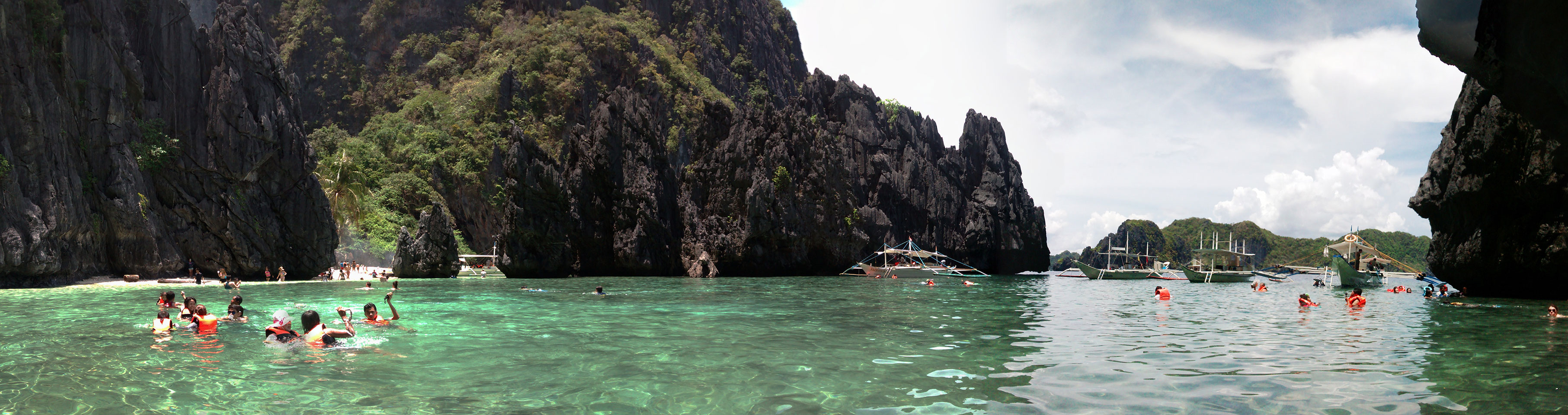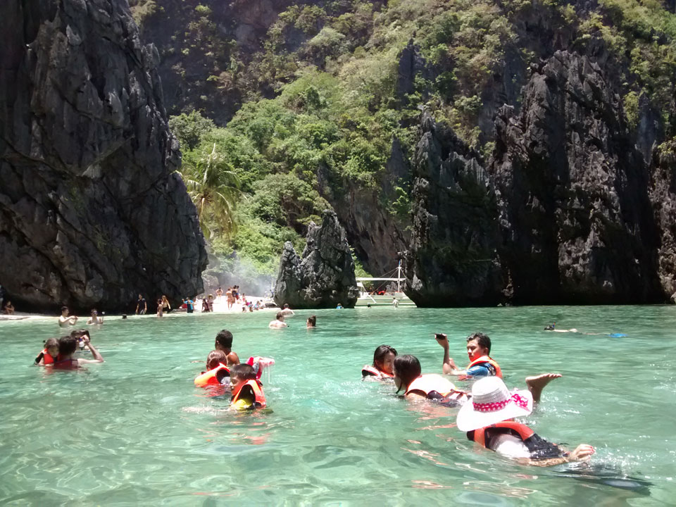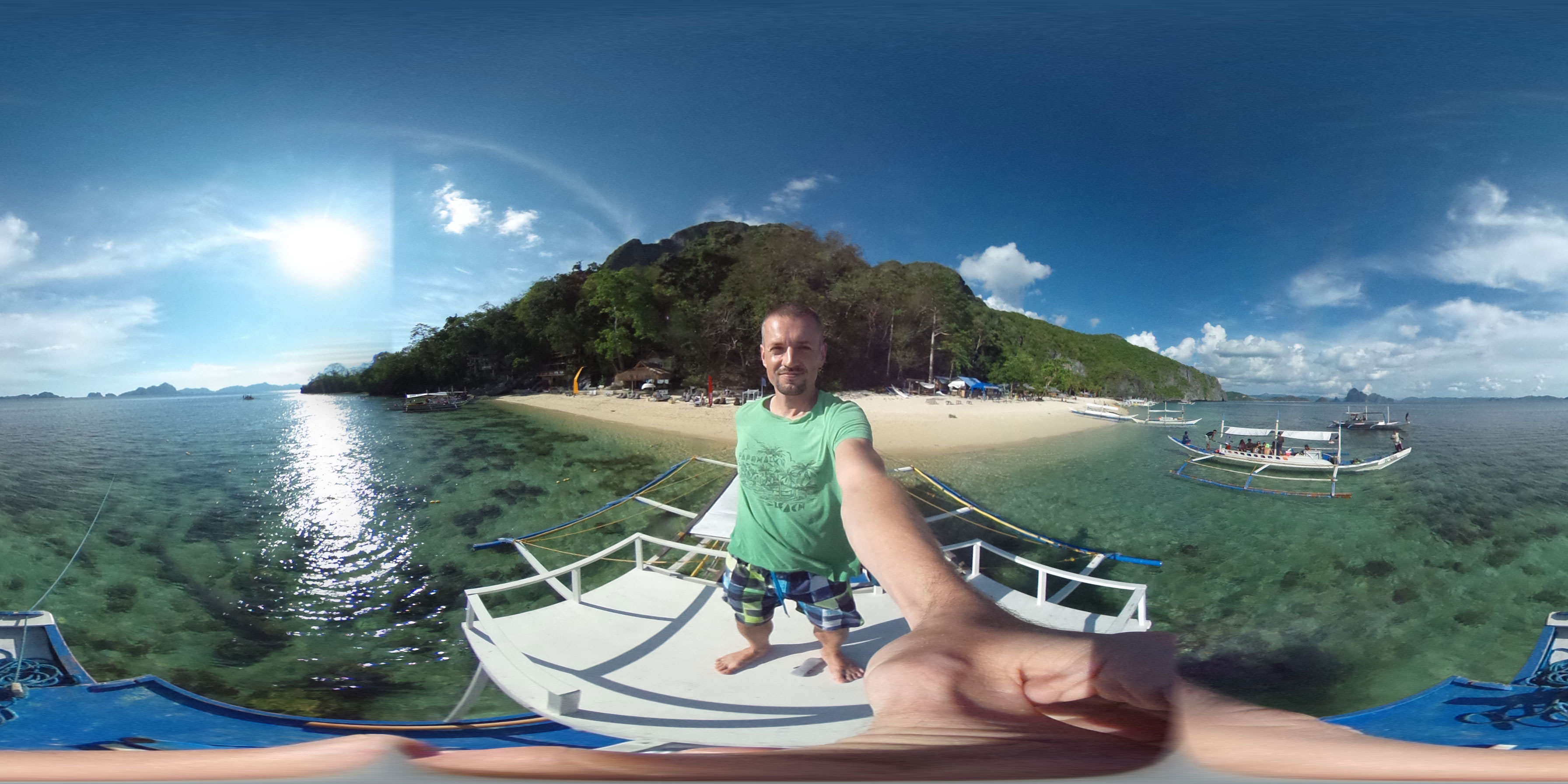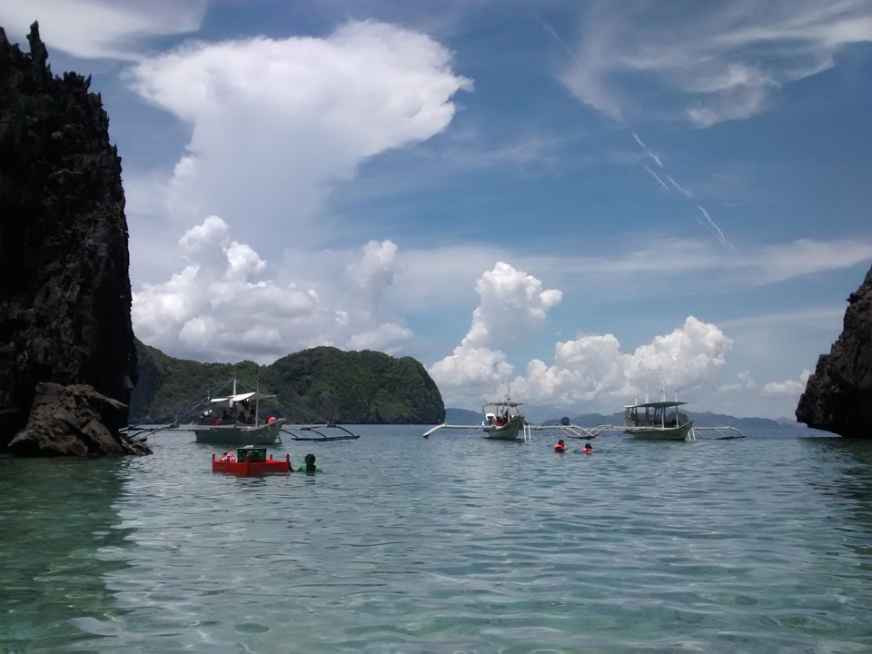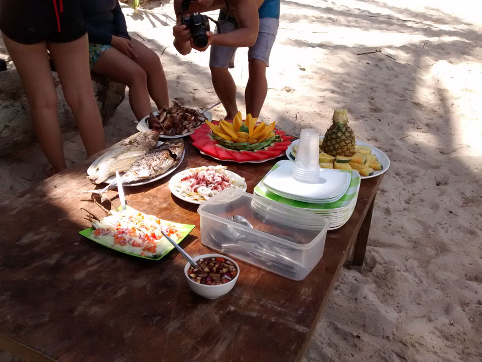Per Moped ging#s weiter zu einem anderen Strand und dort dann auf die Tour. Einige Leute da, meist Philippinos. Das Boot legte los, ein Amerikaner wollte aber unbedingt Flippers haben. Ohne die kann er nicht schnorcheln. Das nervte doch arg aber wir mussten zurück für seine Schwimmflossen. Die Sind normalerweise nicht im Preis enthalten aber er bekam sie.