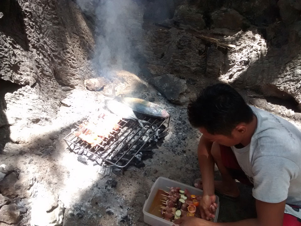 Endlich ging’s dann richtig los durch die schöne Inselgegend. Alles raumhaft, auch wenn ich mich derzeit eben an nichts so richtig erfreuen kann. Besser geht’s aber wohl kaum. Das Mittagessen mit frisch gegrilltem Fisch war auch das beste Essen, was ich bisher hier genießen konnte.