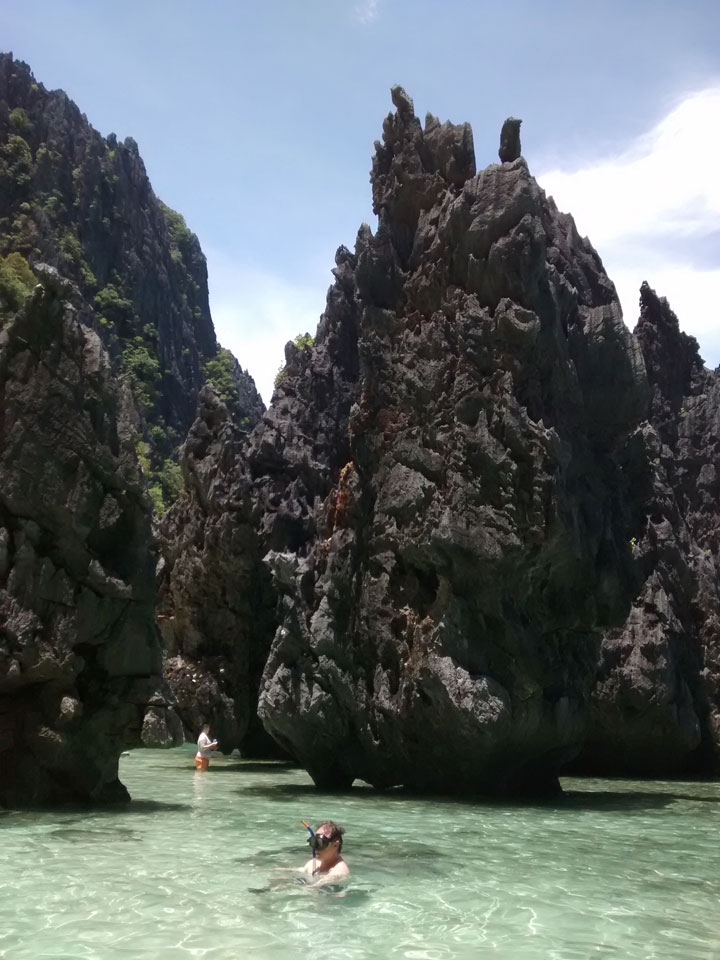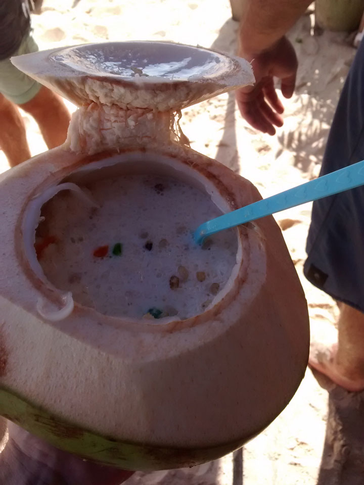 Ganz so viele Fische und Korallen gab’s zwar nicht zu sehen aber ich war voll zufrieden. Auf der letzten Insel traf ich noch eine aus dem Hostel in Boracay. Ich hatte eine Kokosnuss mit allerhand Sachen. Palawan ist einfach Klasse.
