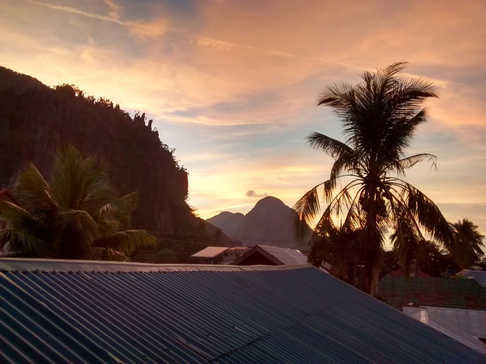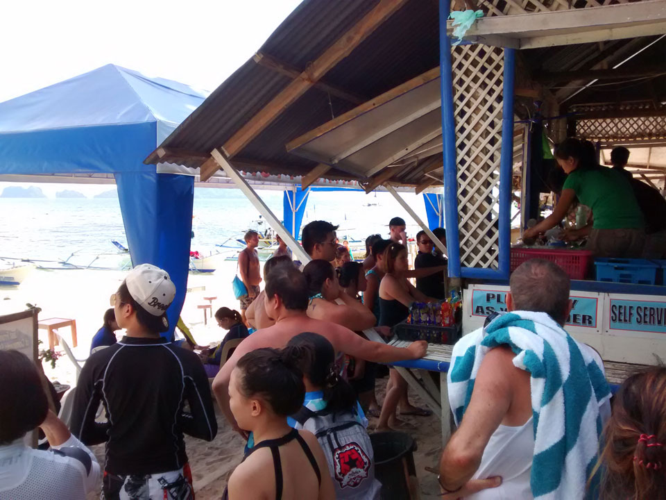 Meine erste Tour stand an. Ich kaufte etwas zum Frühstück und nahm ein kleines Tourbüro. Der Listenpreis ist 1200 PHP. Ich brauche auch noch das Umweltticket für 200. Mit etwas Handeln gab’s beides für 1000.