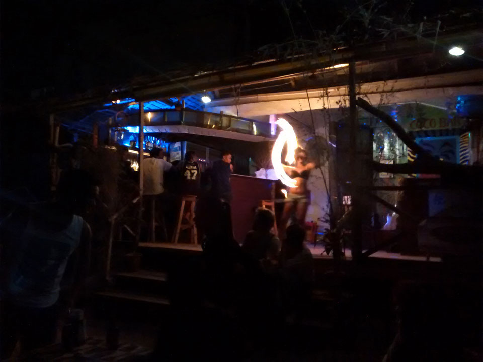 Der Abend startete zunächst alkholfrei mit einem weiteren Mango Shake. Jemand wirbelte das Feuer durch die Gegend. Danach, und weil jetzt Wochenende ist, nahm ich doch mal einen Gin Tonic. Kein Cuba Libre, denn ich wollte schlafen. Kanadier und Holländer sind hier überall. Viele nur auf Urlaubsreise doch heute kam ich mal endlich wieder mit ein paar Leuten in’s Gespräch. Vor 2 nach Hause, denn morgen will ich zur Tour. Schon etwas traurig, wie sich das Nightlife nun bei mir zum frühen Abgang geändert hat.