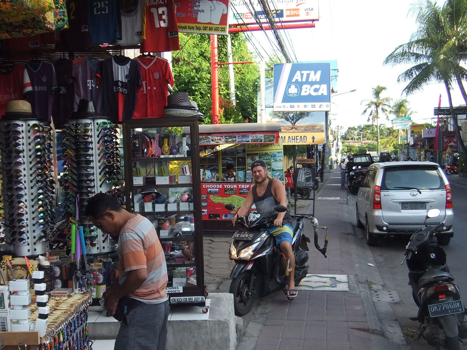 Seminyak ist ein Touristenort, von dem ich hier oben im Hotel gar nichts mitbekomme. Viele Boutiquen, Restaurants und Hotels mit allerhand Touristen halt. Ich wurde am Plaza rausgelassen – 30K. Bei GrabTaxi läuft eine Promo für kostenlose Fahrten. Da muss man nur erst mal einen Fahrer finden.