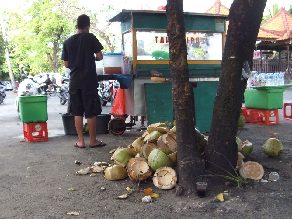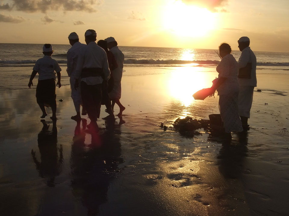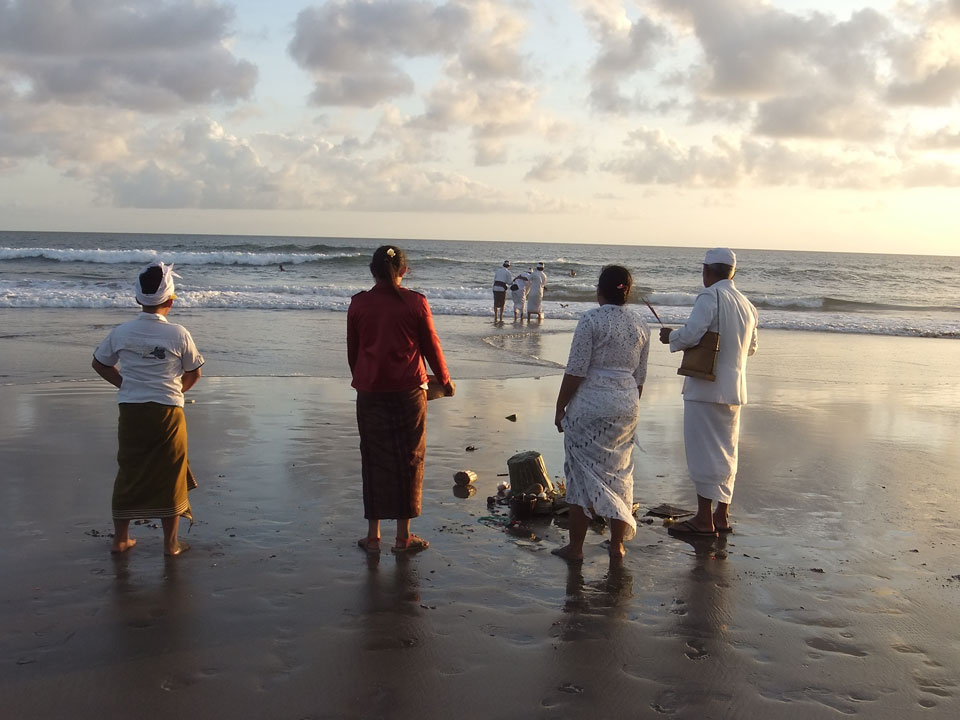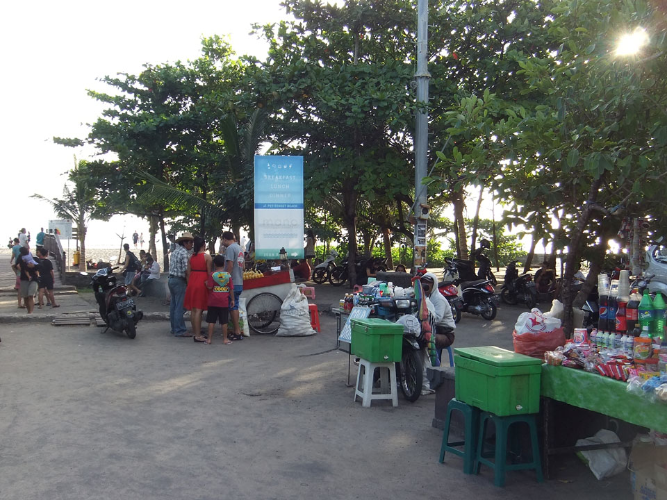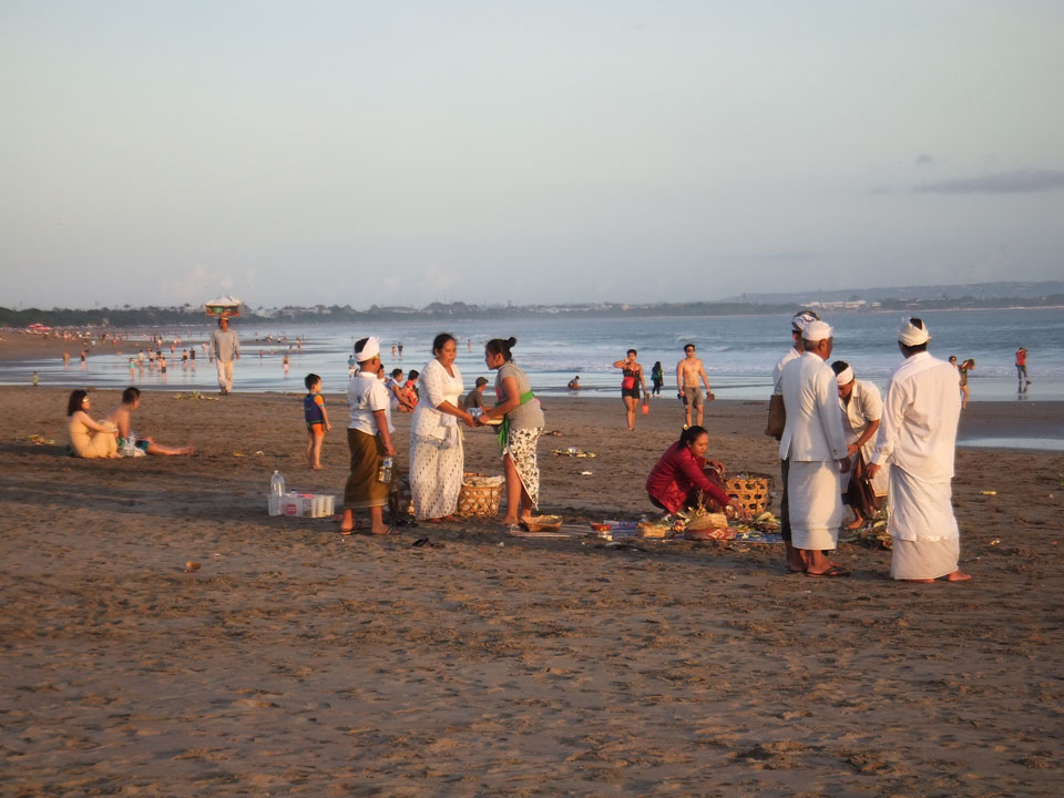 Ich spazierte Richtung Strand und probierte auf dem Partkplatz balinesisches Streefood. Echt super die Sachen und auch günstig. Am Strand dann alles auch ganz nett. Ich fühle mich lahm aber für ein paar Photos reichte die Energie. Ein paar Locals hielten gerade eine Zeremonie ab. Ramadan steht vor der Tür.
