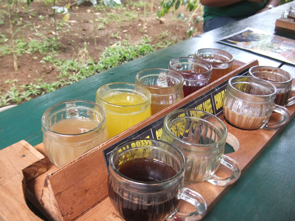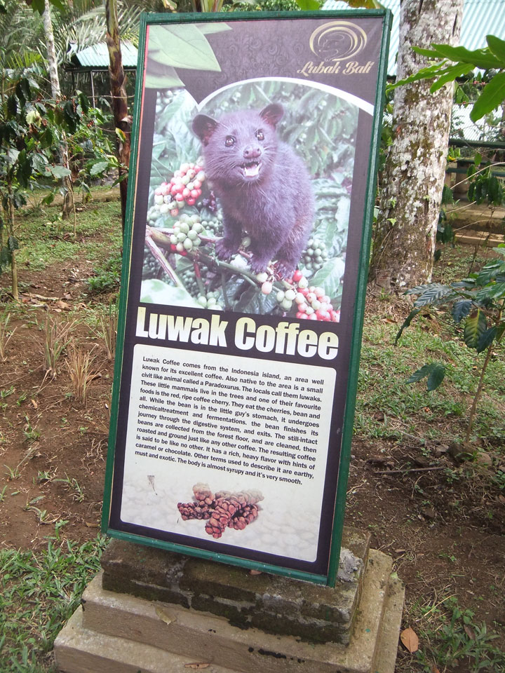 In einem Affenwald waren mehr Affen als in Ubud. Auch ganz nett war dann eine Kaffeeplantage, wo der Luwak Coffee verkauft wurde. Ich hatte etwas wenig Cash dabei. Jeder Tempel hier auf der Route wollte Eintritt. So ein Kaffee aus Kot der Tiere da wäre schon interessant. Zu Verkostung gab’s dann auch alles, außer dieses exklusive Gesöff. Das Poopoo Kaffee nur für Kohle.