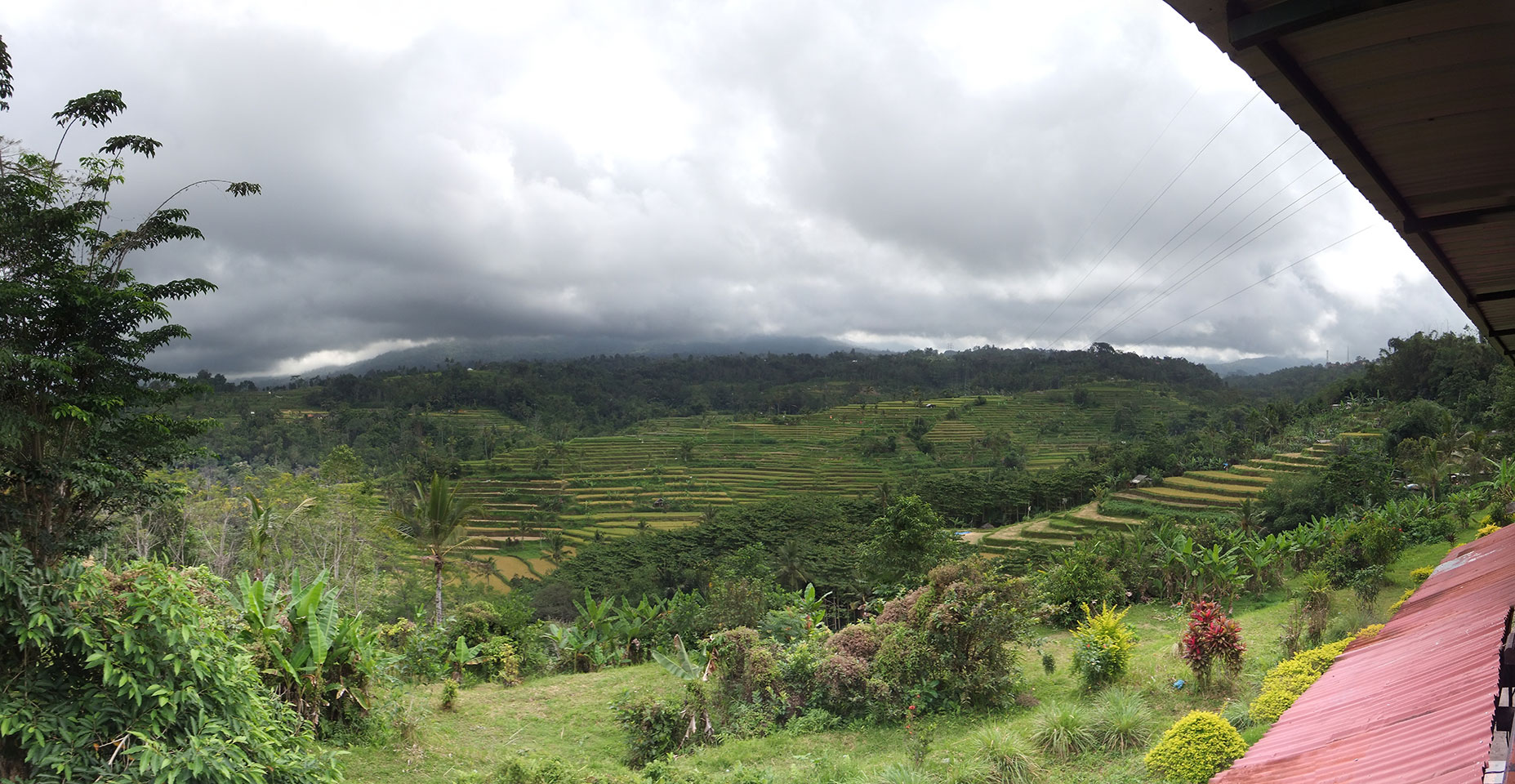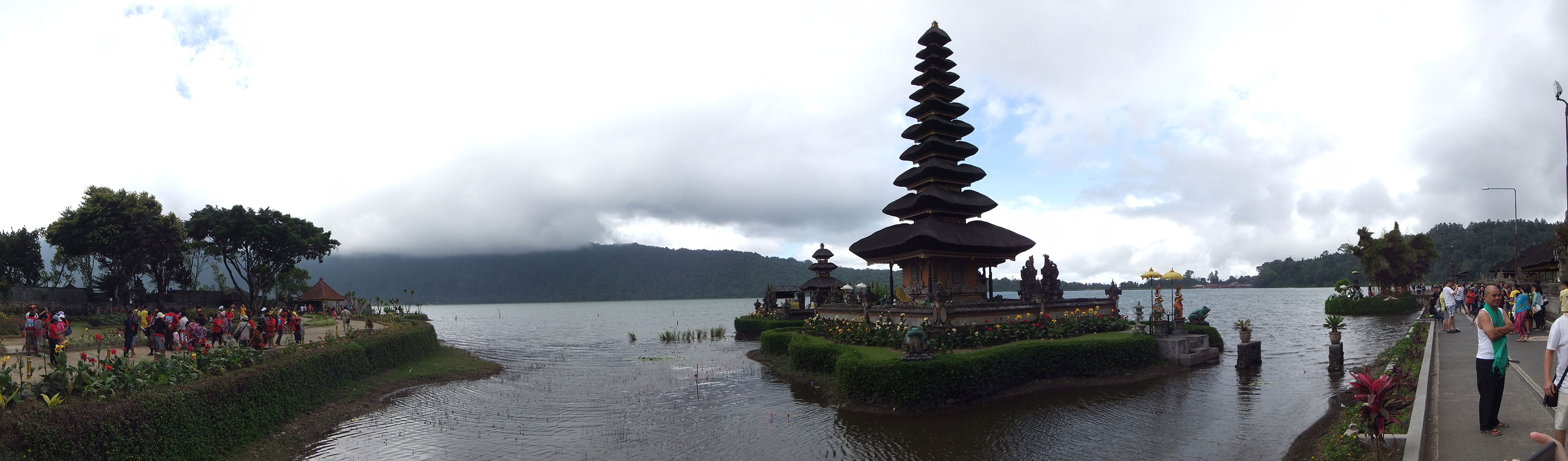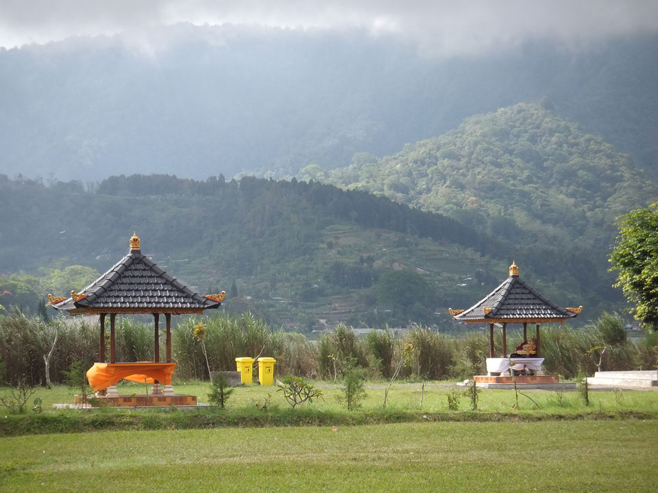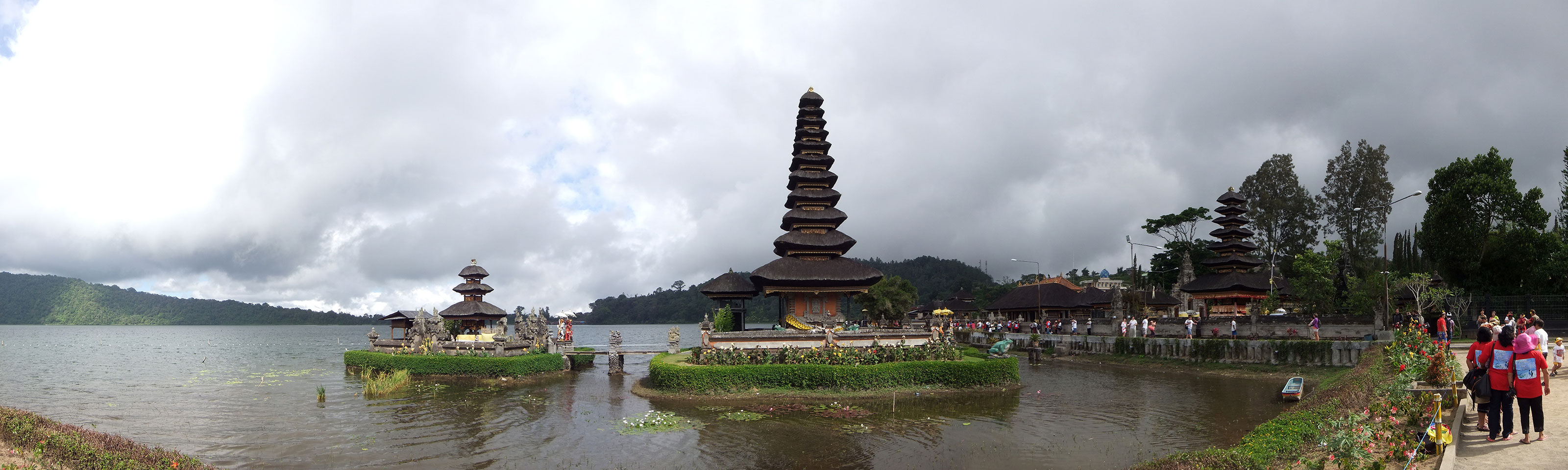 Der Temple bei Bedugul ist ein bekanntes Motiv. Meine Theta fiel im Wind mal wieder um und jetzt gab’s in der Hülle auch ’nen Riss. Ich knipste nur mit der 3D Fuji und war doch arg beschränkt. Alles ganz nett dann auch mit Panorama auf Reisplantagen.