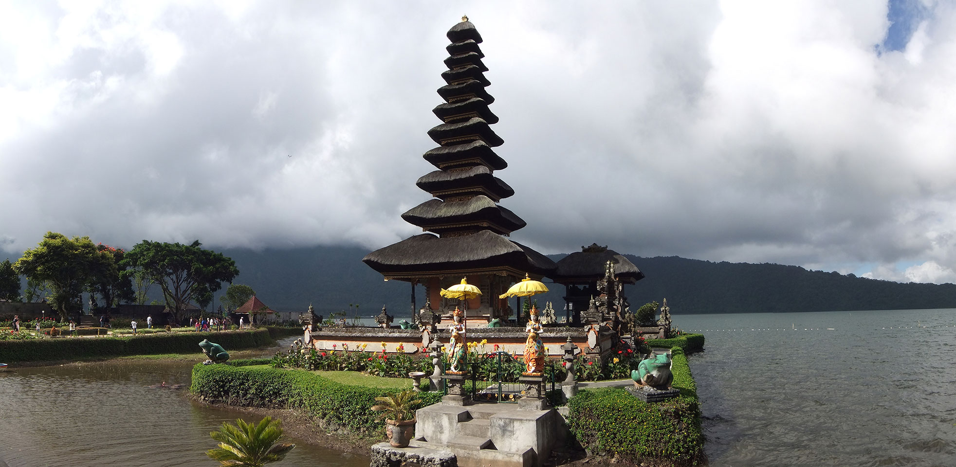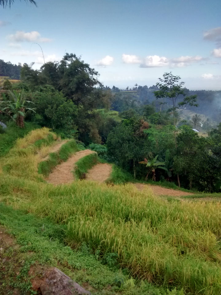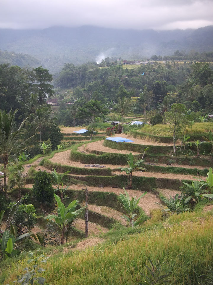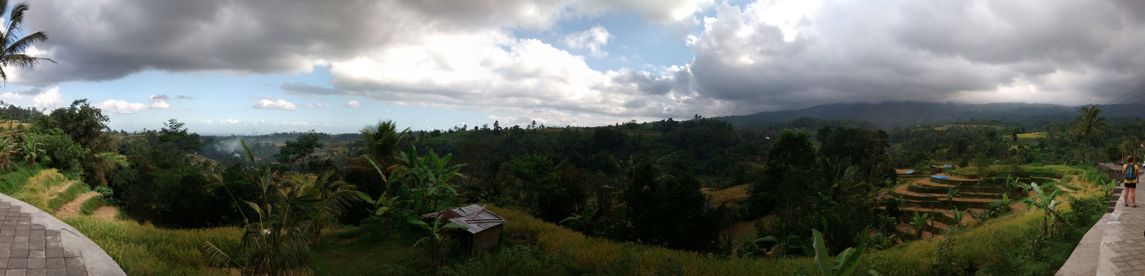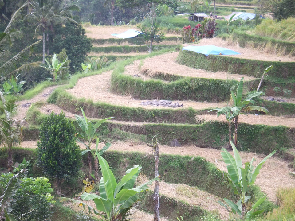 Der Temple bei Bedugul ist ein bekanntes Motiv. Meine Theta fiel im Wind mal wieder um und jetzt gab’s in der Hülle auch ’nen Riss. Ich knipste nur mit der 3D Fuji und war doch arg beschränkt. Alles ganz nett dann auch mit Panorama auf Reisplantagen.