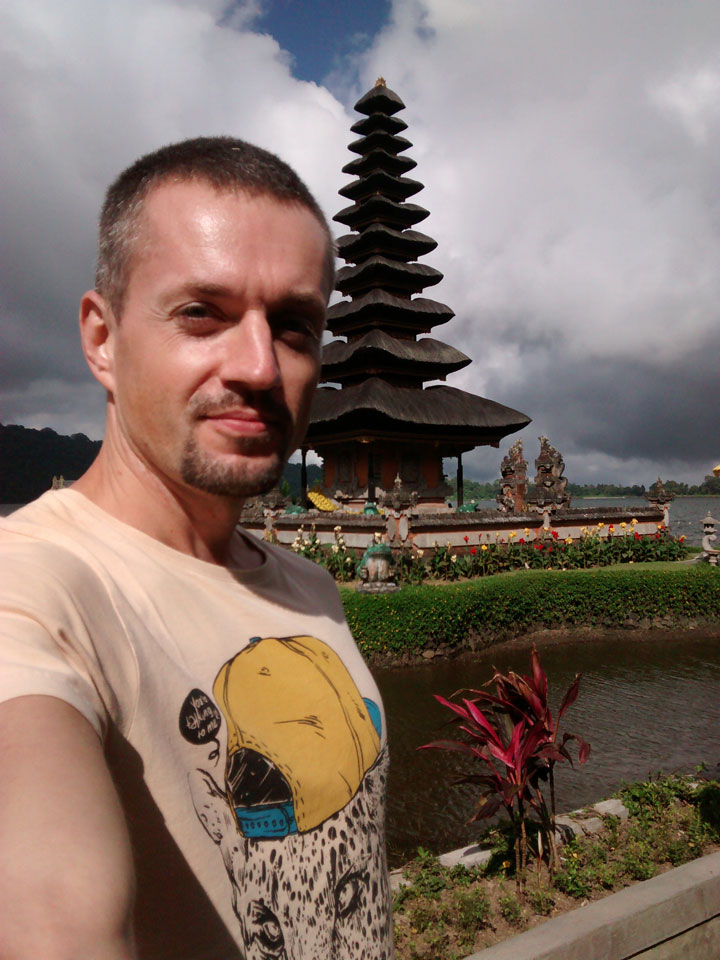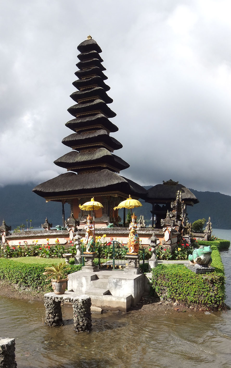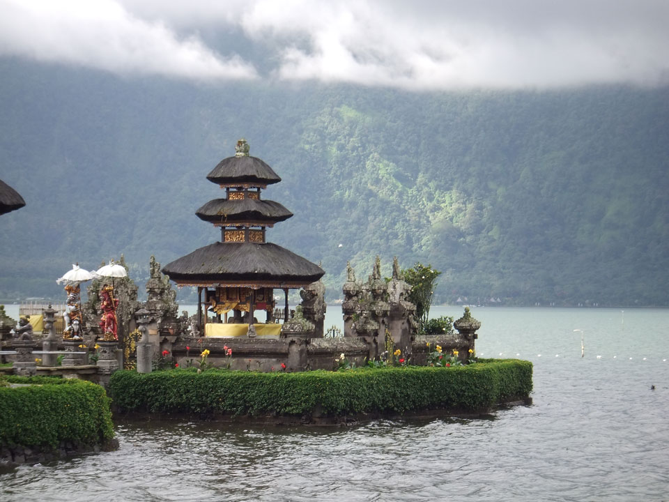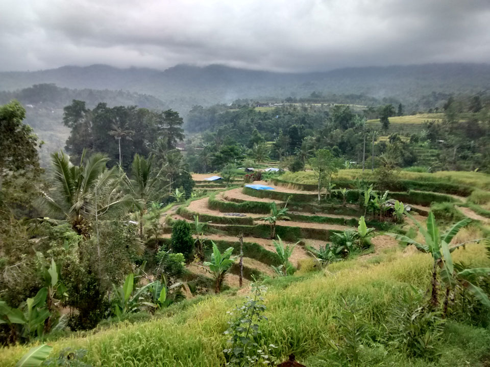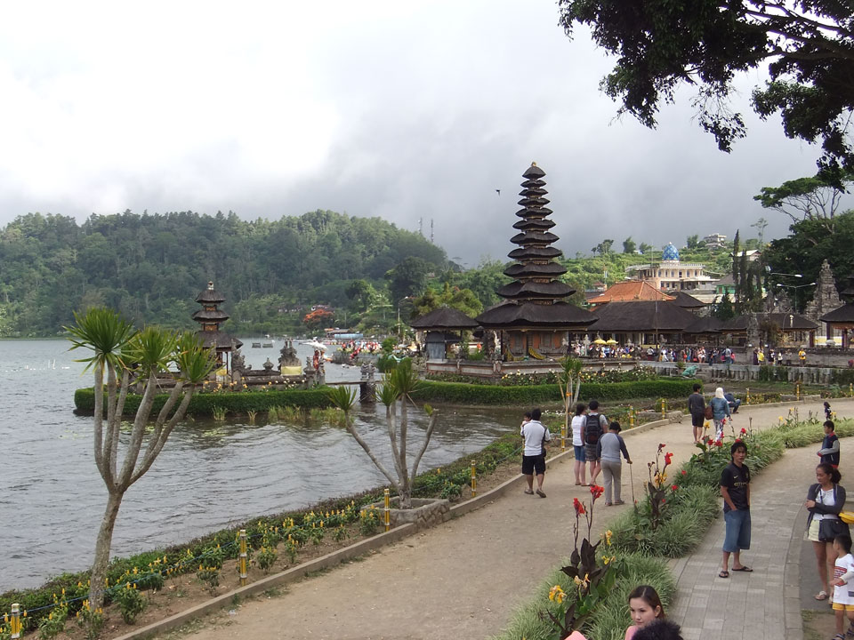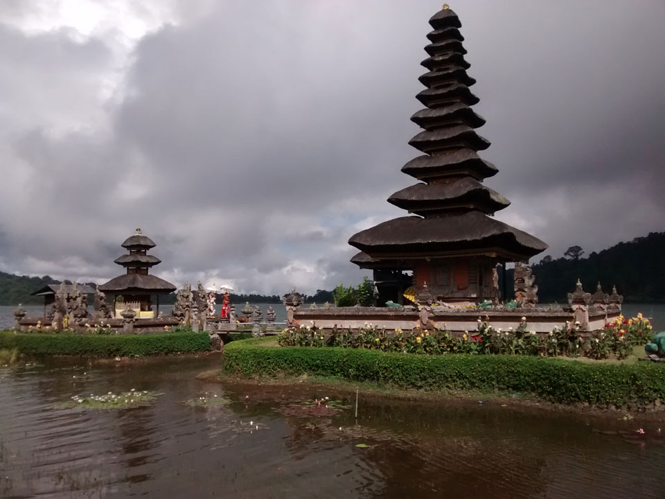 Der Temple bei Bedugul ist ein bekanntes Motiv. Meine Theta fiel im Wind mal wieder um und jetzt gab’s in der Hülle auch ’nen Riss. Ich knipste nur mit der 3D Fuji und war doch arg beschränkt. Alles ganz nett dann auch mit Panorama auf Reisplantagen.