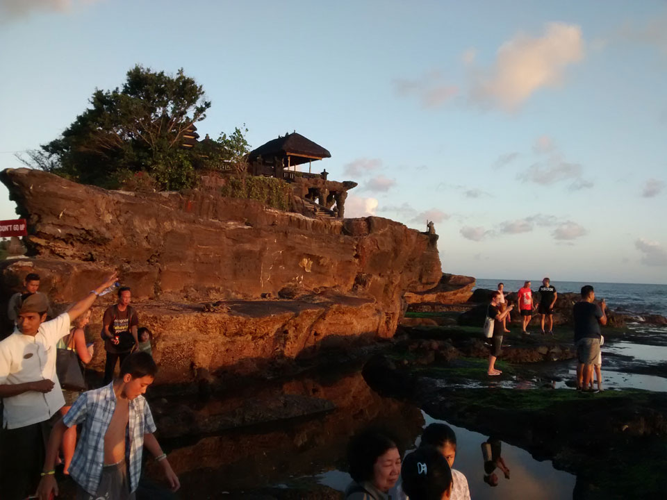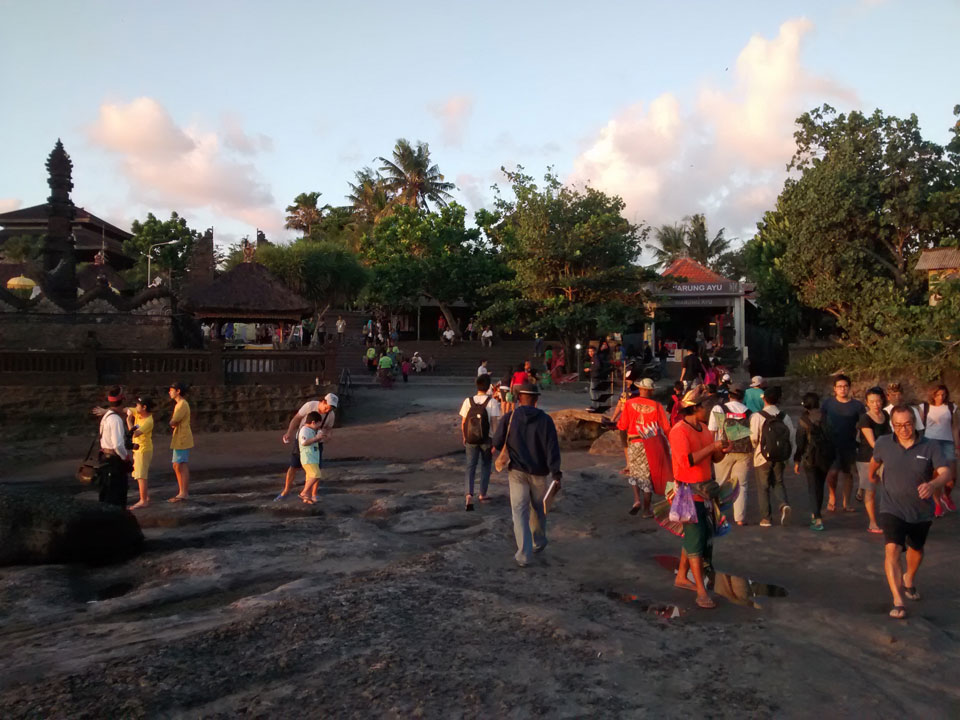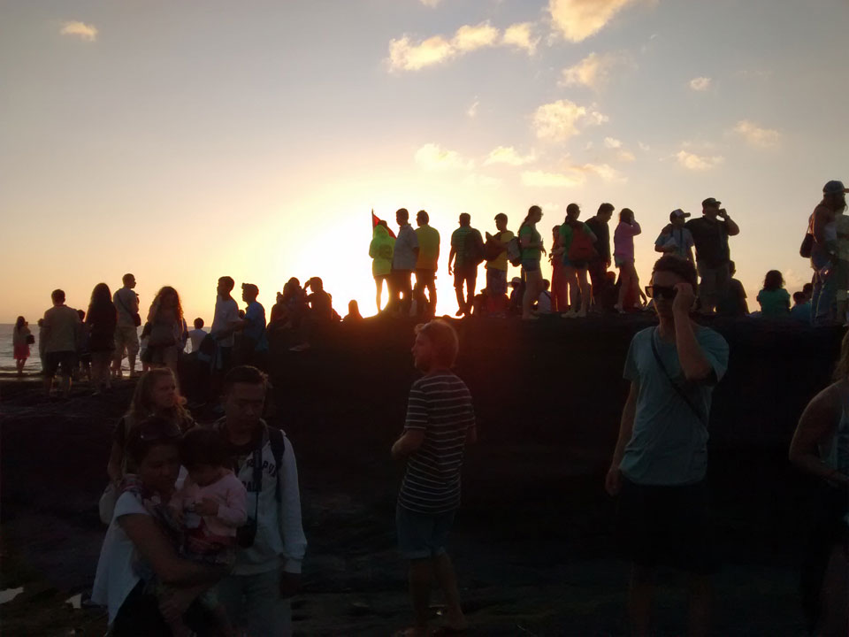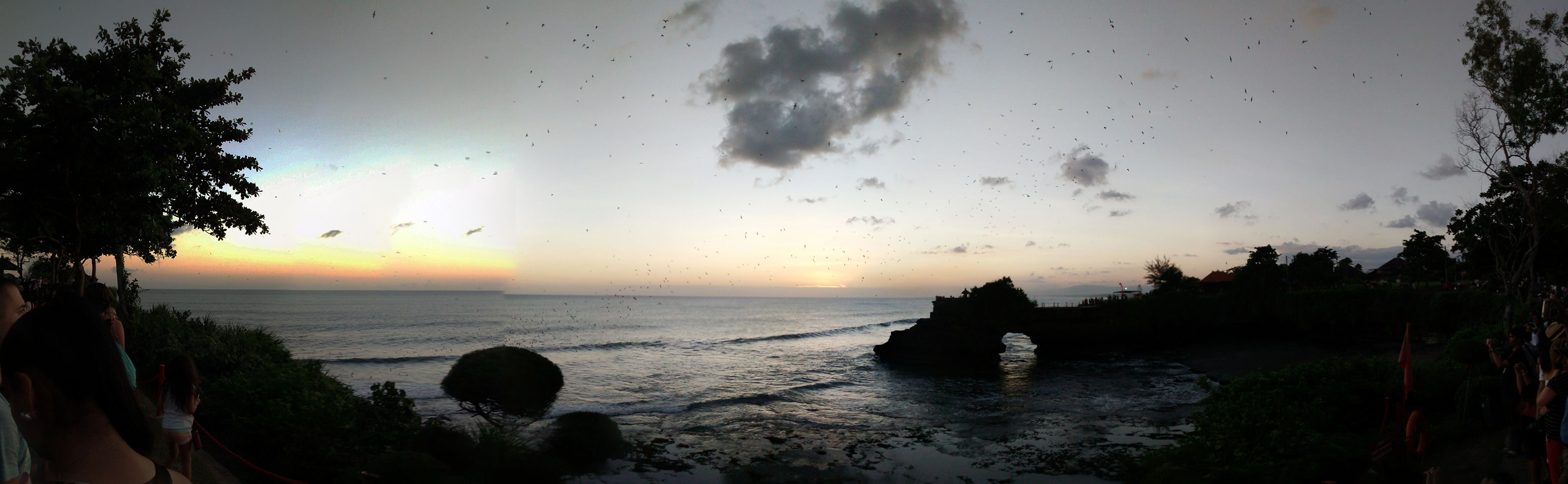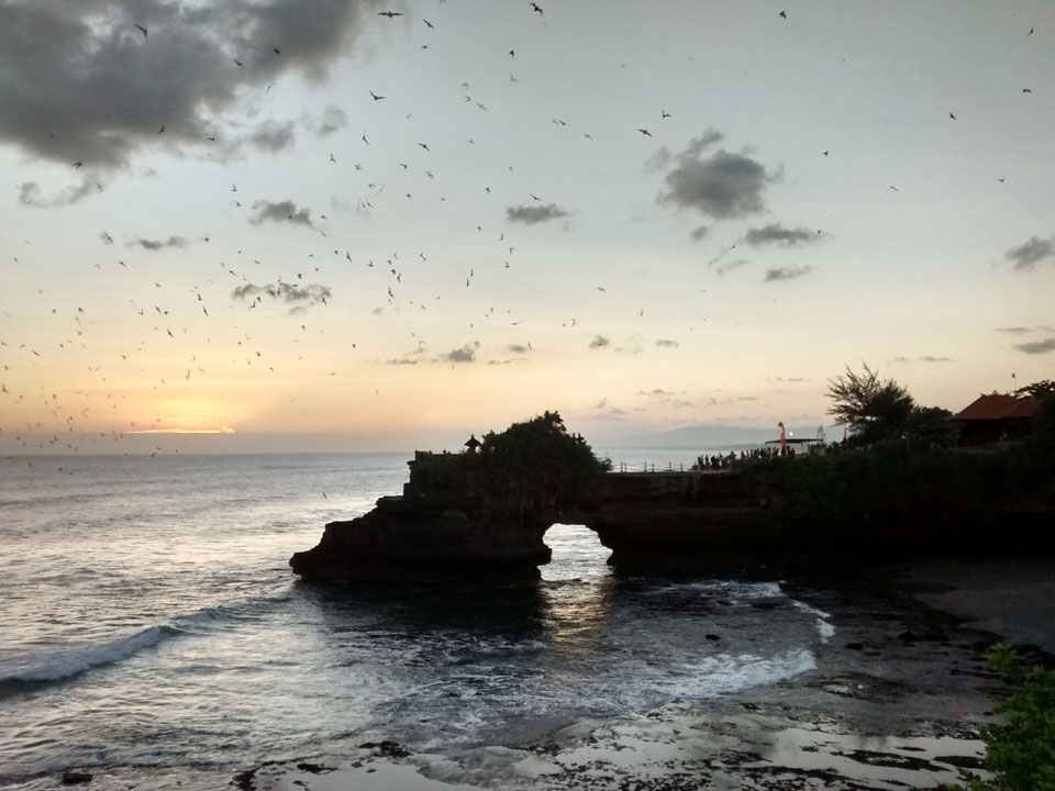 In Tanah Lot warteten wir dann auf den Sonnenuntergang. Echt schön auch dort. Dann eine Minute nach Sonnenuntergang verdunkelten Fledermäuse den Himmel. Ein riesiger Schwarm kam aus den Felsenhöhlen.