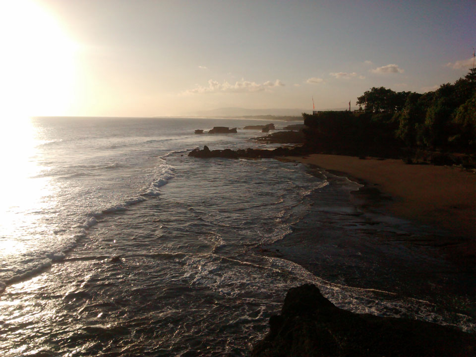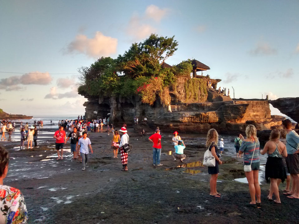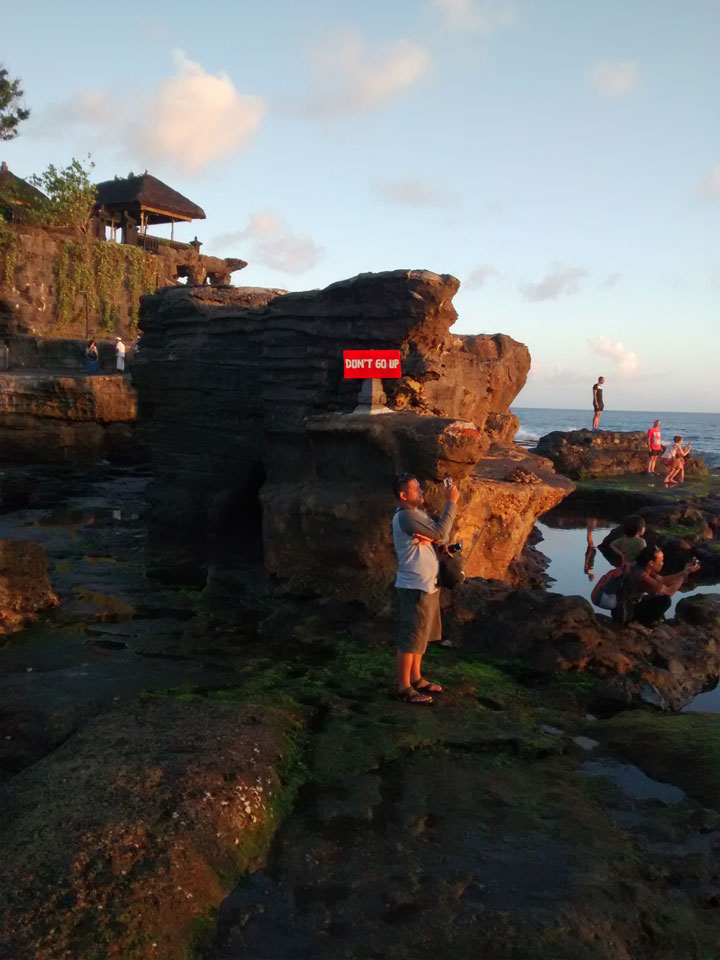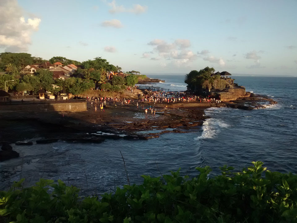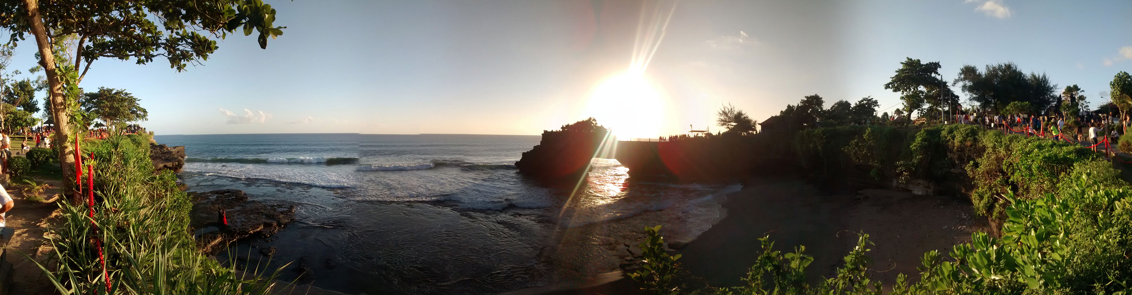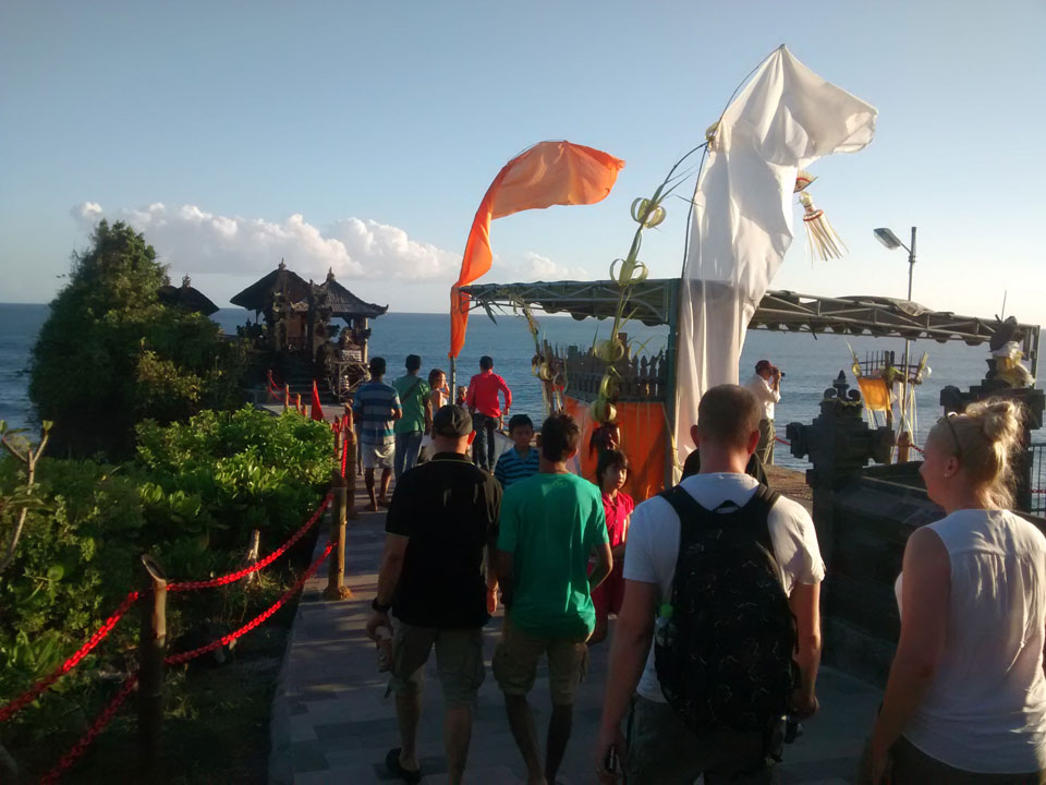 In Tanah Lot warteten wir dann auf den Sonnenuntergang. Echt schön auch dort. Dann eine Minute nach Sonnenuntergang verdunkelten Fledermäuse den Himmel. Ein riesiger Schwarm kam aus den Felsenhöhlen.
