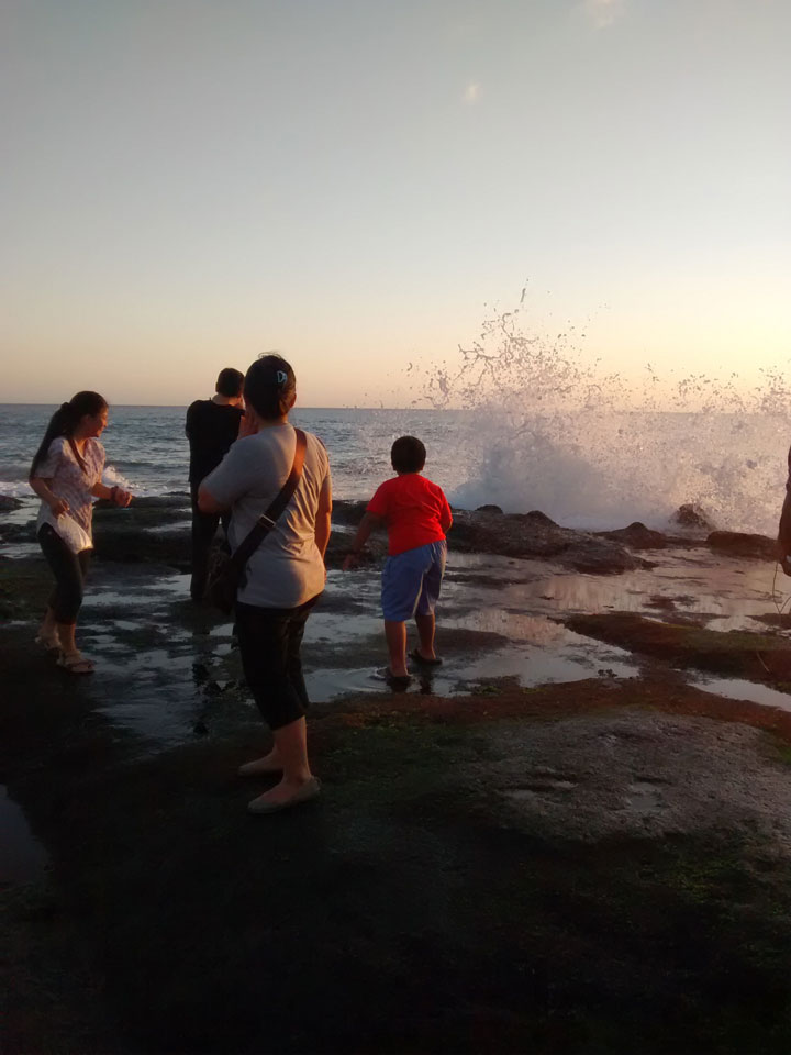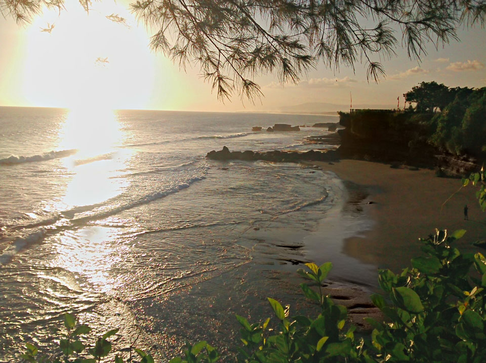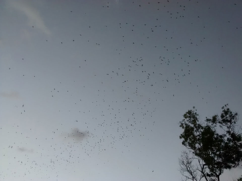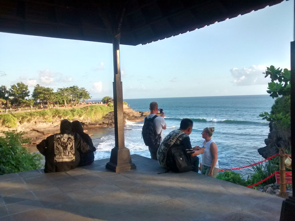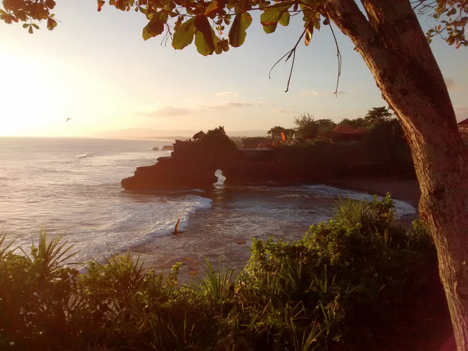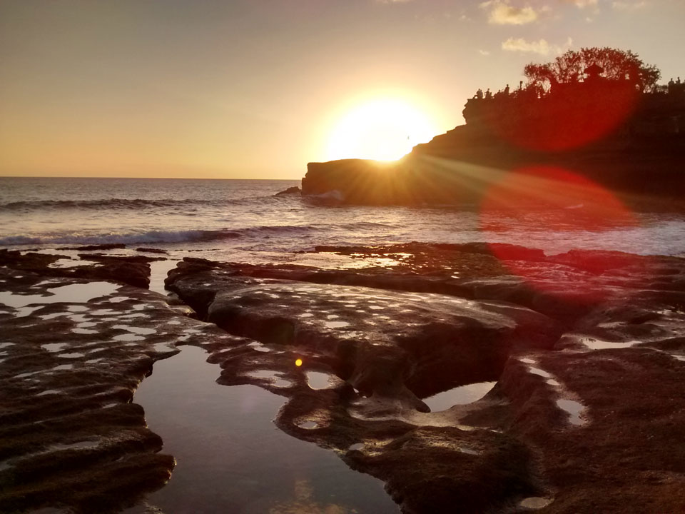 In Tanah Lot warteten wir dann auf den Sonnenuntergang. Echt schön auch dort. Dann eine Minute nach Sonnenuntergang verdunkelten Fledermäuse den Himmel. Ein riesiger Schwarm kam aus den Felsenhöhlen.