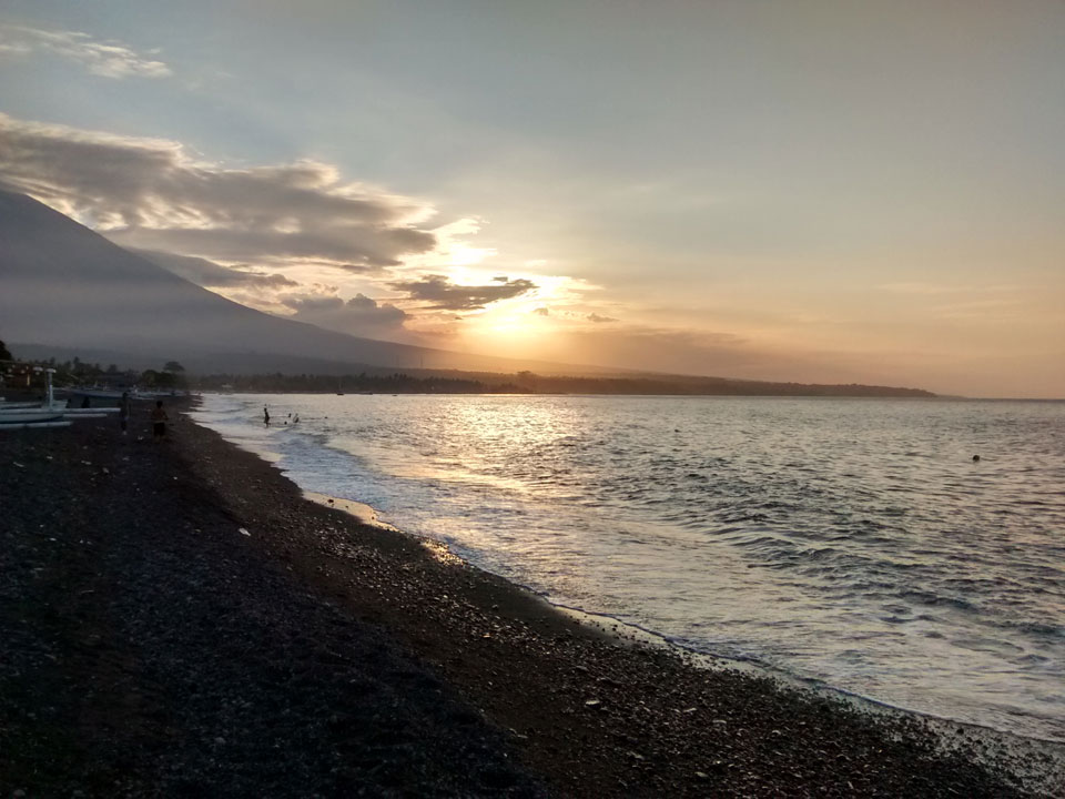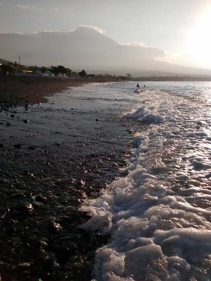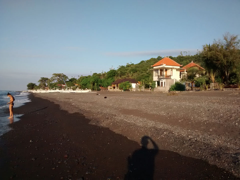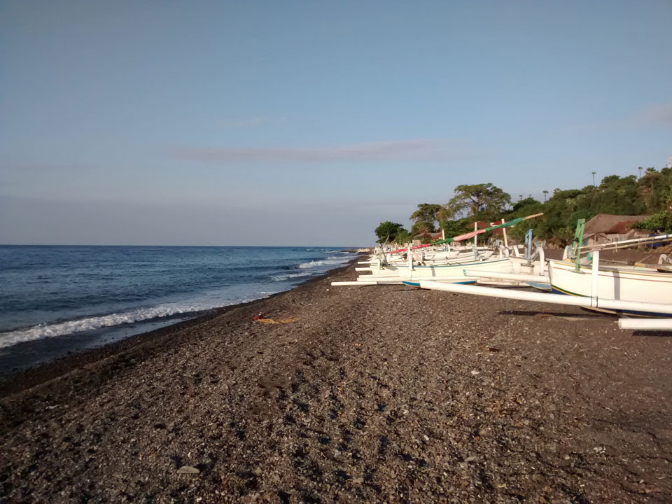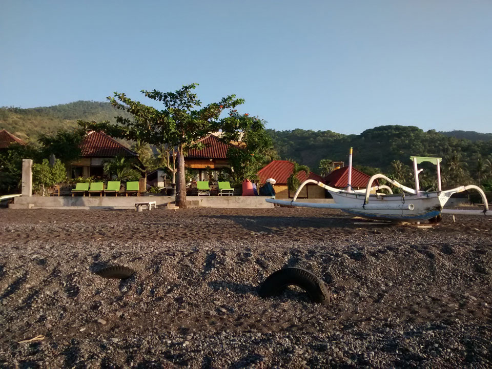 Amed soll eigentlich schöne Korallen haben. Die sind sicher weiter draußen. Ein paar Scuba Taucher gingen zum Boot. Man sieht wenig beim Schnorcheln – nur Steine und Boden, keine Fische.