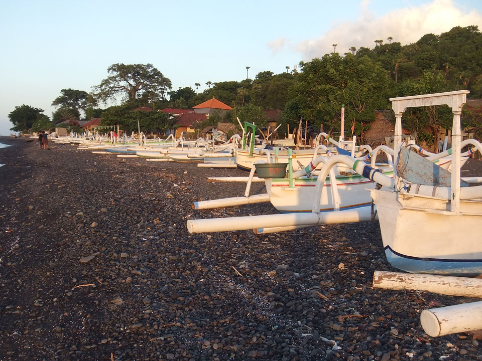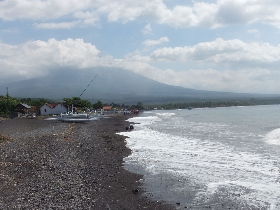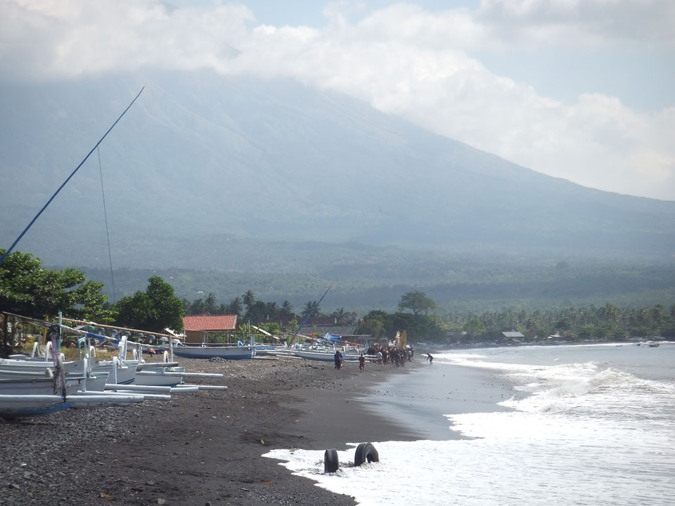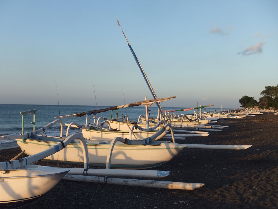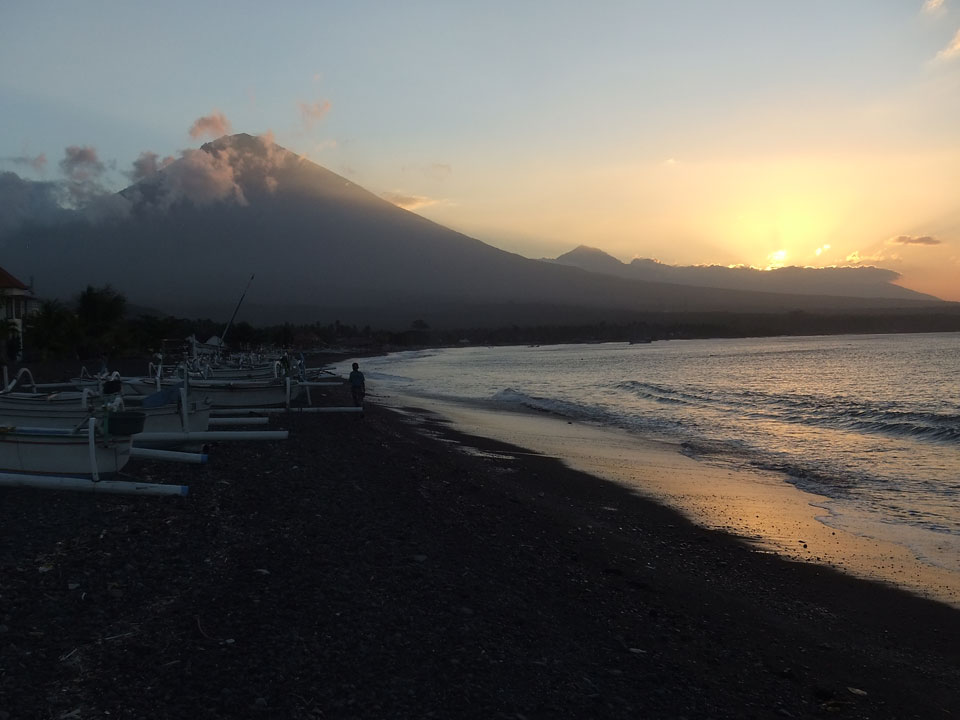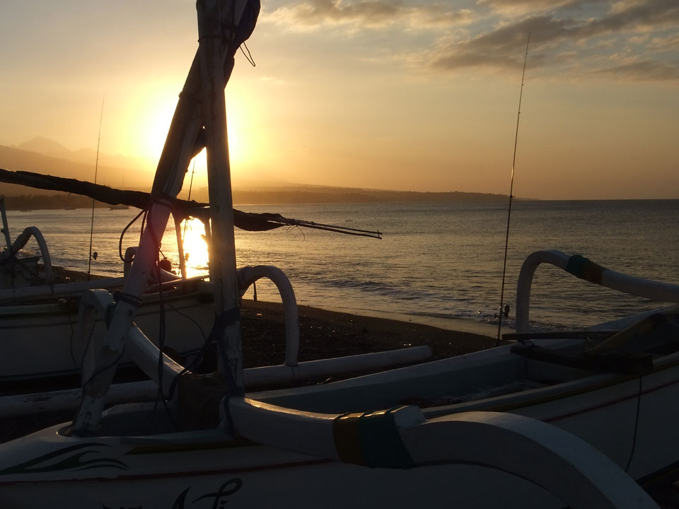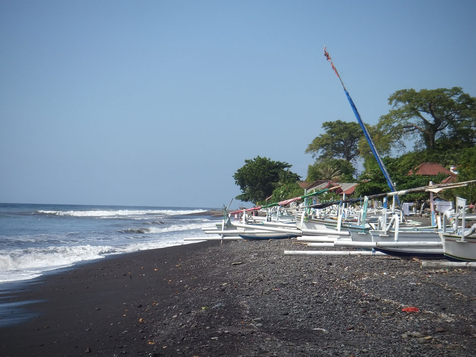 Ich ging schließlich zur Straße und hatte ein exzellentes Nasi Campur („C“) wird wie „Tsch“ ausgesprochen. Das Essen war aber echt eines der besten, die ich hier hatte. Danach organisierte ich meine Weiterfahrt nach Candidasa. Padang Bay wäre auch gegangen aber Cadidasa solle größer sein. Hier in Amed ist’s mir doch zu klein und still – Cadidasa war in der Vorbeifahrt kaum größer. Das Ticket 100K – 135 mit dem Essen also. Morgen 11:30 soll es los gehen.