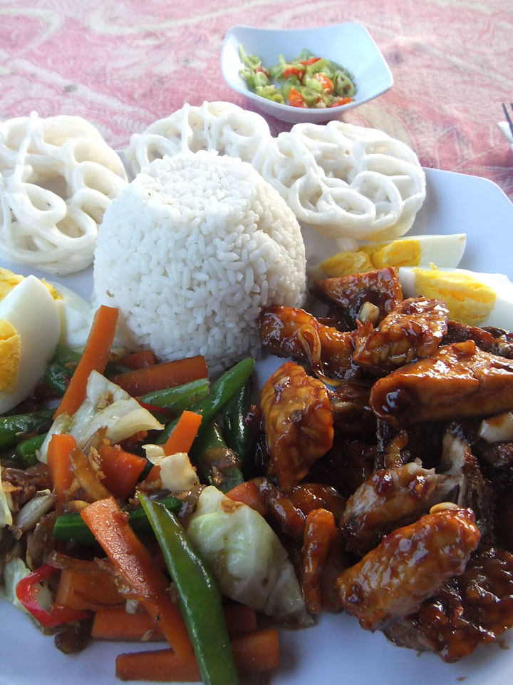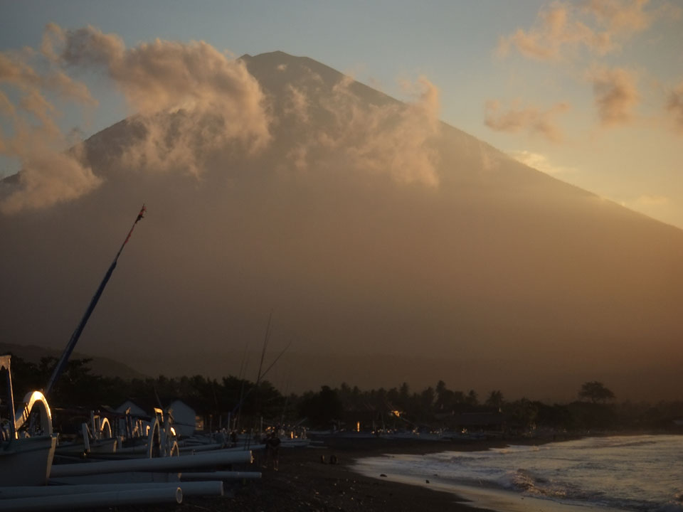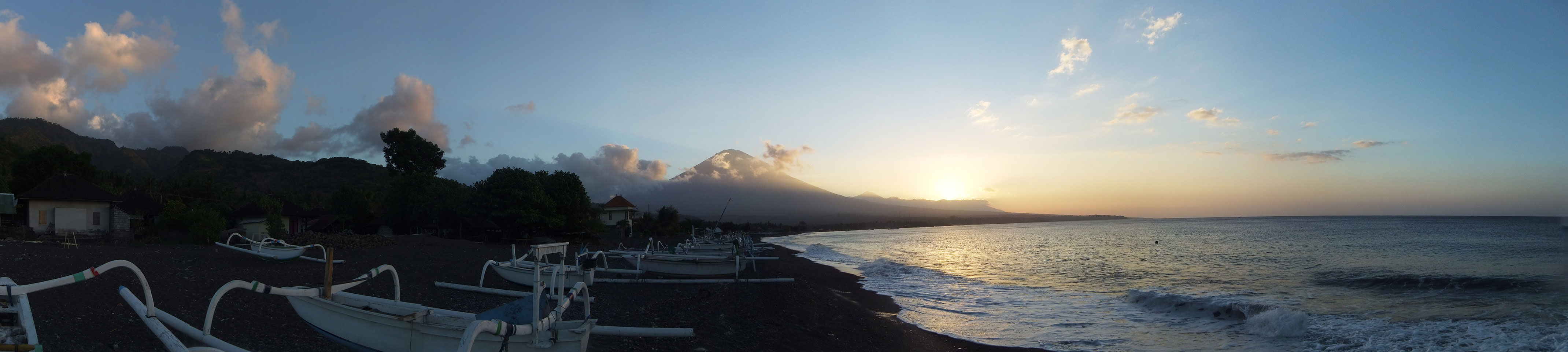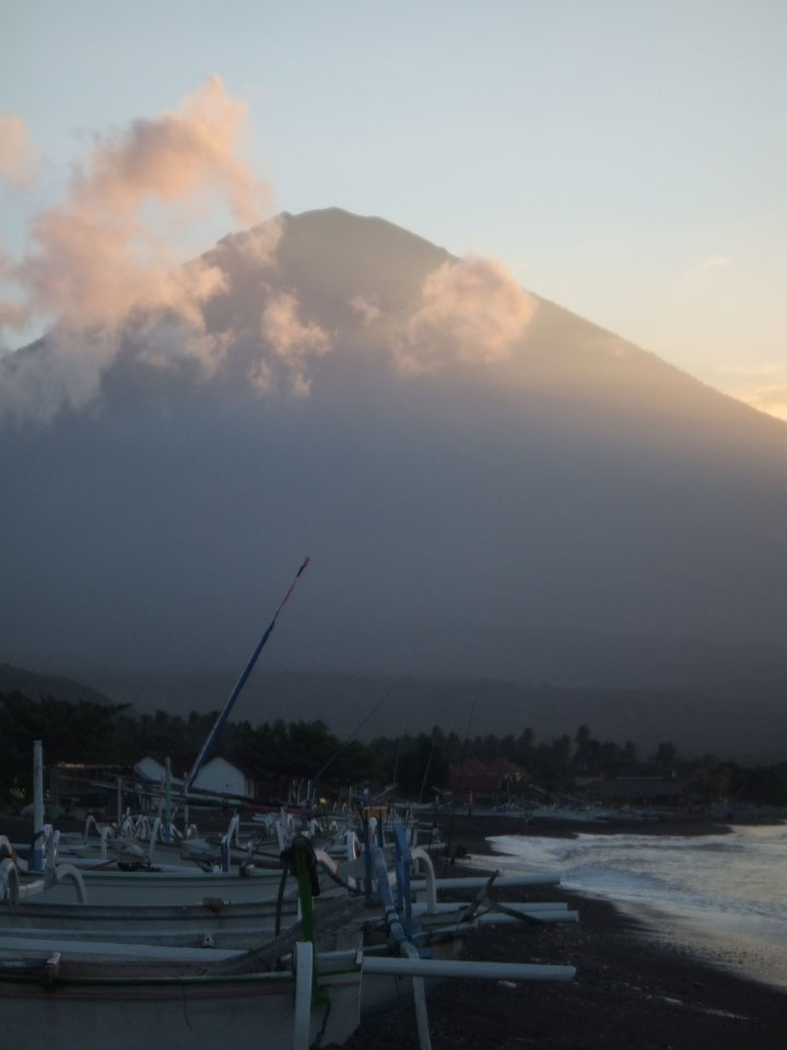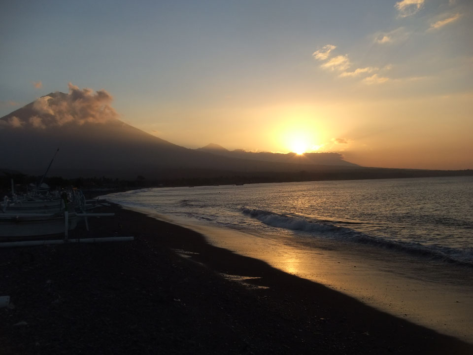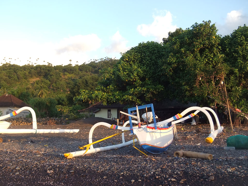 Ich ging schließlich zur Straße und hatte ein exzellentes Nasi Campur („C“) wird wie „Tsch“ ausgesprochen. Das Essen war aber echt eines der besten, die ich hier hatte. Danach organisierte ich meine Weiterfahrt nach Candidasa. Padang Bay wäre auch gegangen aber Cadidasa solle größer sein. Hier in Amed ist’s mir doch zu klein und still – Cadidasa war in der Vorbeifahrt kaum größer. Das Ticket 100K – 135 mit dem Essen also. Morgen 11:30 soll es los gehen.