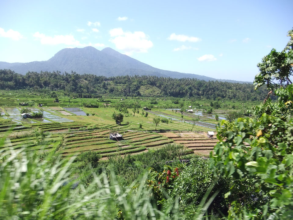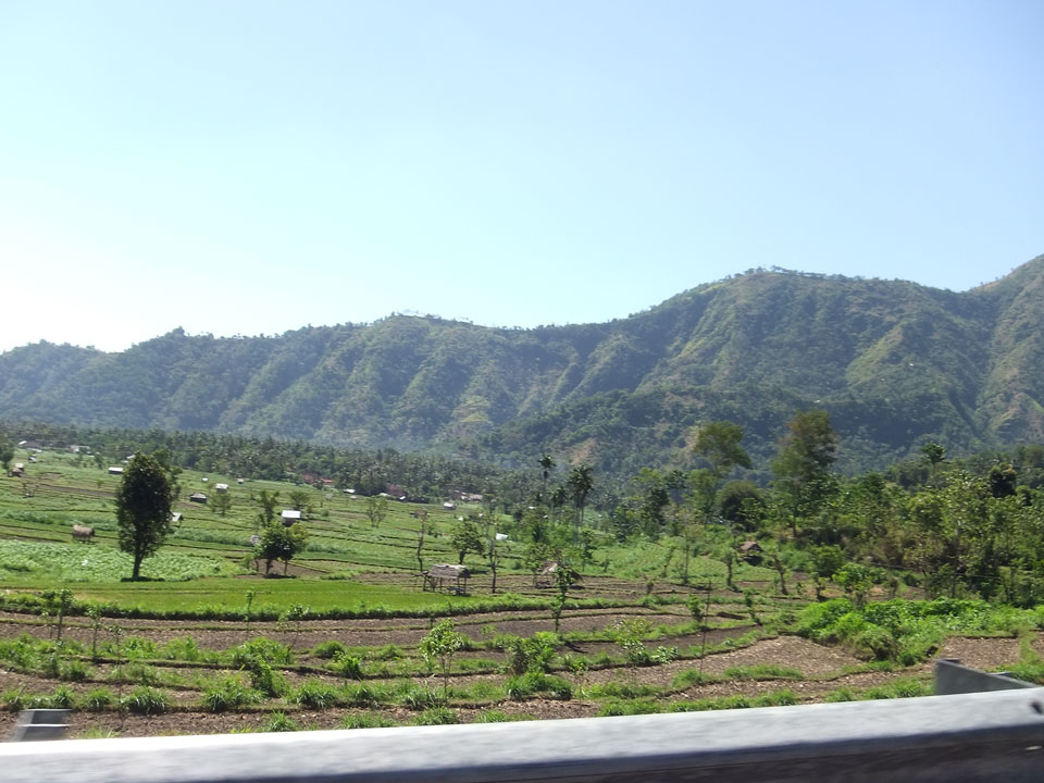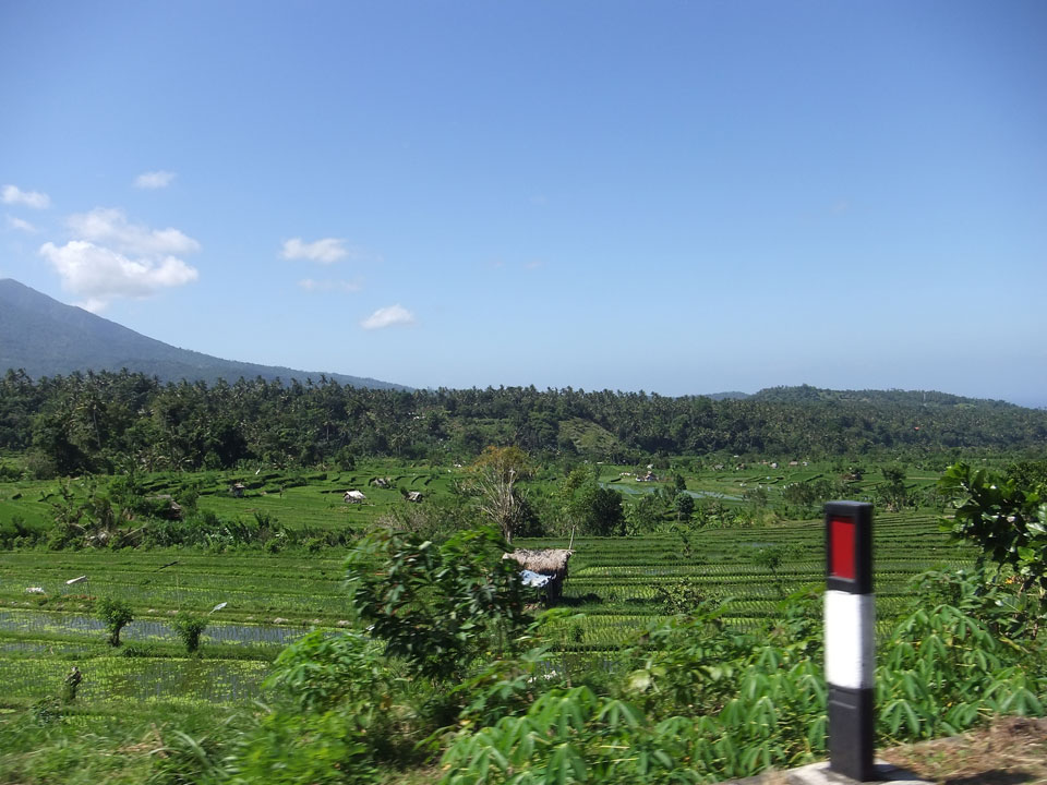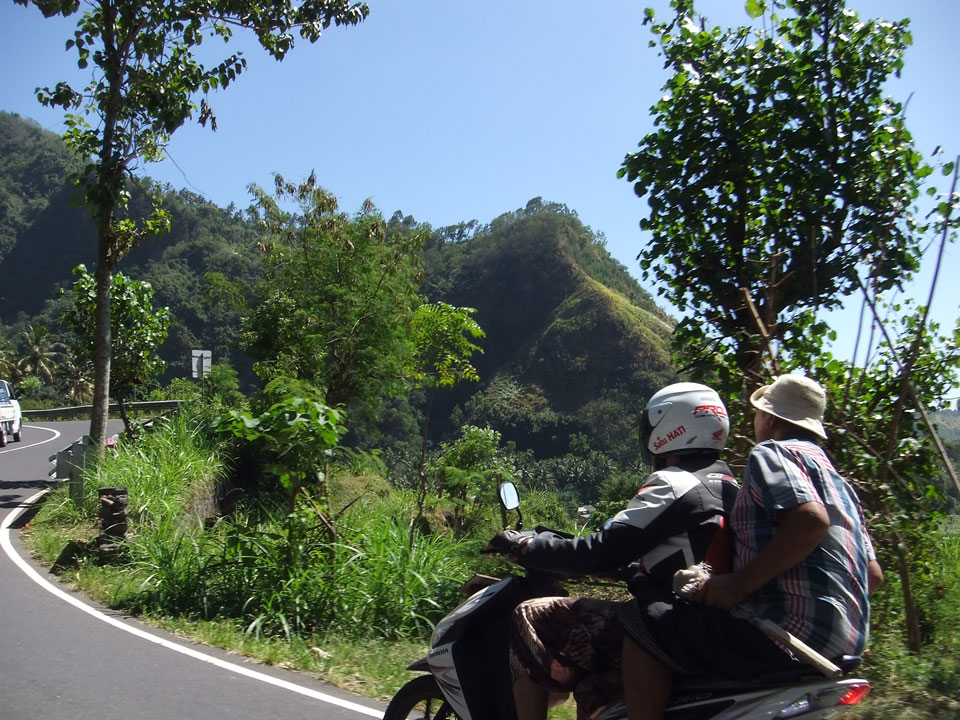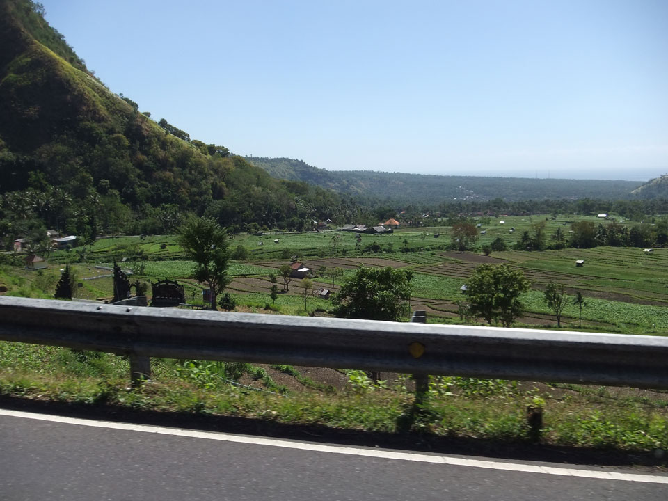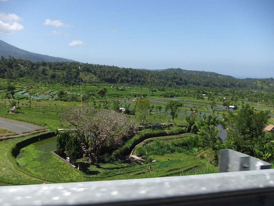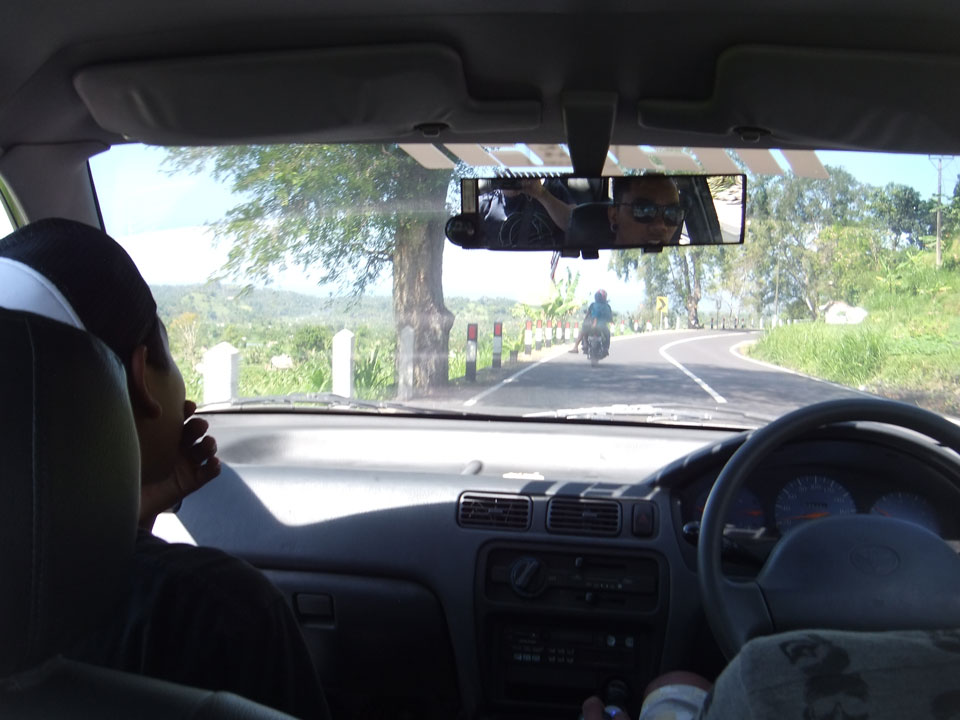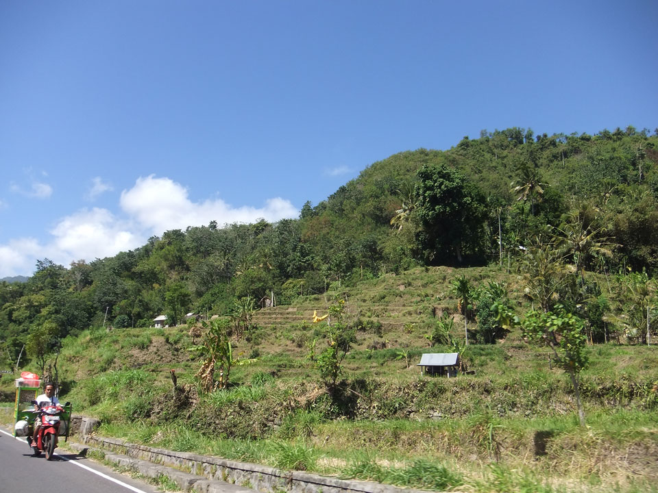 An der Straße wartete man dann schon. Ich kaufte ein Wasser und es ging in einem normalen PKW dann los. Ein tätowierter lustiger Balinese, ein kleiner Junge und Reggae-Musik. Coole Fahrt durch schöne Landschaft, alles easy.