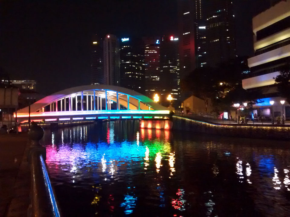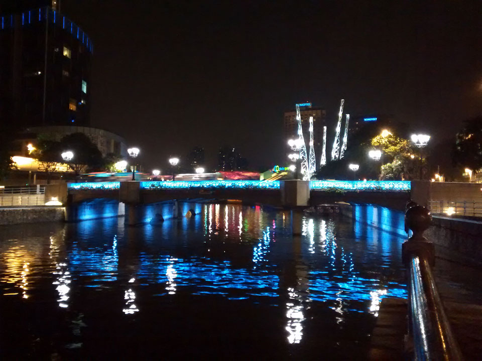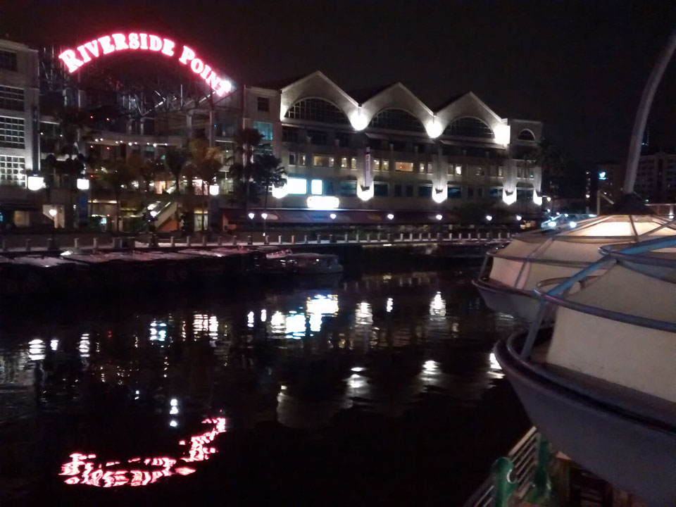 Abends dann wollte ich doch mal weiter weg in’s Nachtleben. Für Attica sei ich zu alt. Der Bus 33 fuhr jedoch in der Nähe und Richtung CLarke’s Quay ab. Für $2.20 war ich da recht schnell im Zentrum. Singapur ist schön kompakt und dort unten am Wasser war zum Mittwoch einiges los.