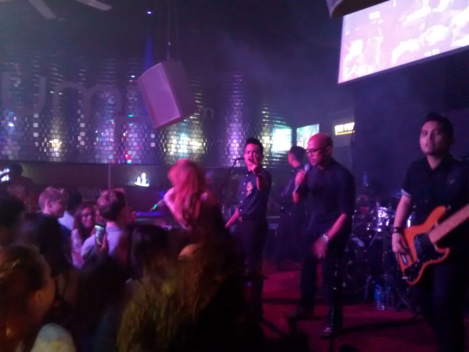 Das schmeckte somit auch besonders gut und lange. Die Leute nett, Live Musik und viele Hostessen wohl. Die Ausländer hatten manchmal Flaschen von Whisky oder sonstwas – in Singapur weit außerhalb meines Budgets. Phillipinos gibt’s auch hier einige, die besonders auf Ausländer scharf scheinen. Auf dem Weg zur Toilette fand ich die Verbindung zu einem weiteren Club. Da lief mehr Dance Mukke, später auch Live Musik.